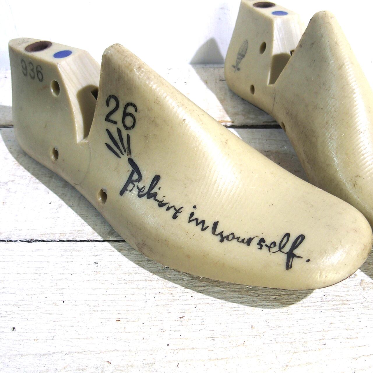 古いシューモールド(靴型)に少し文字を足してアレンジ♪