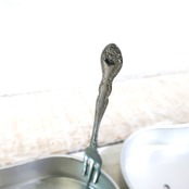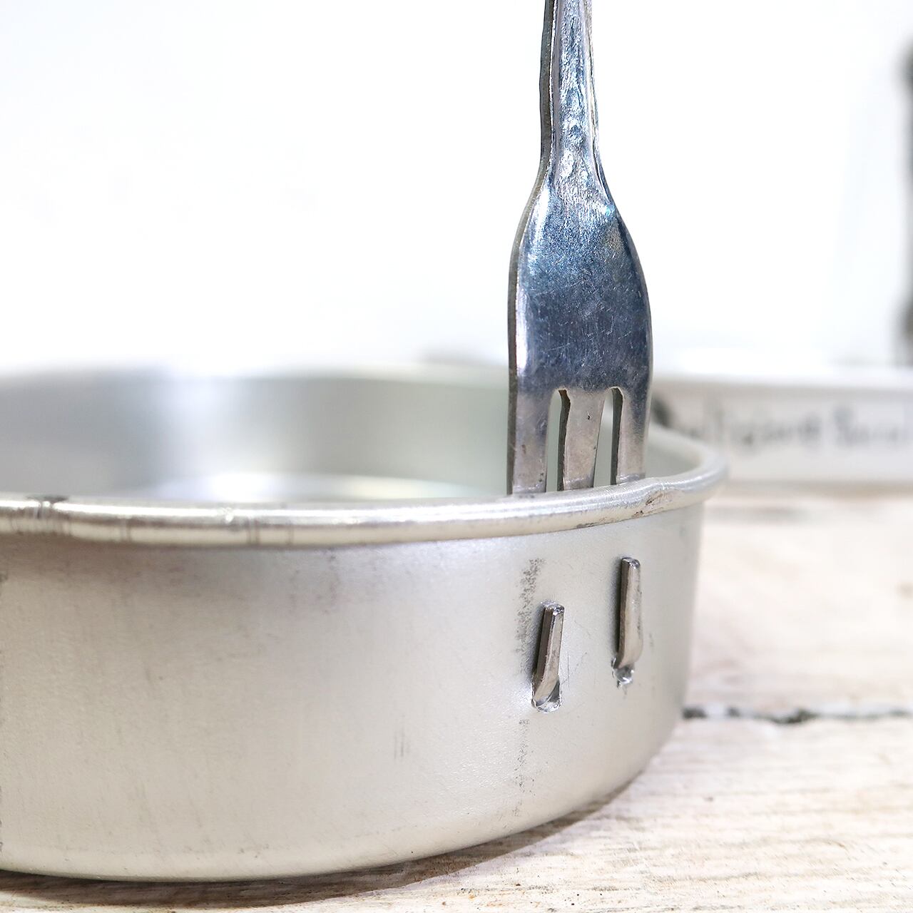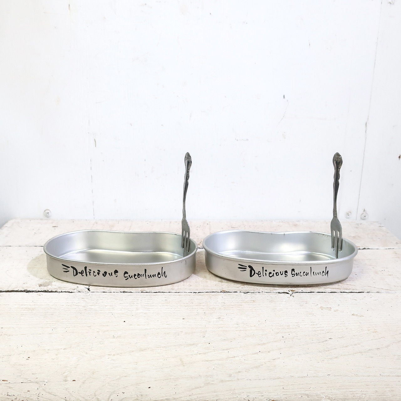 ハンゴウの中蓋にフォークを突き刺したプランターです♪