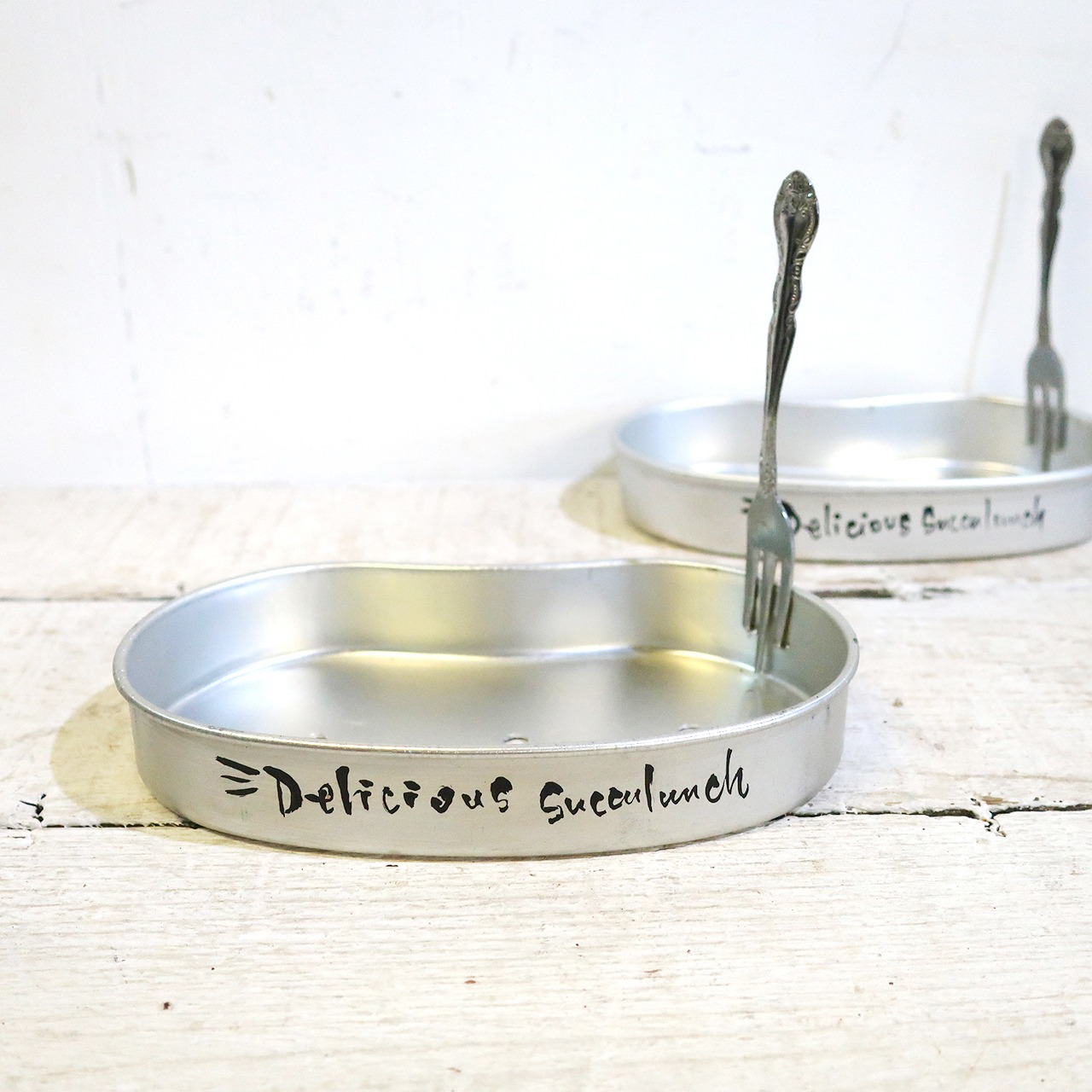 【リメイク古道具】ハンゴウ中蓋のプランター フォーク付き