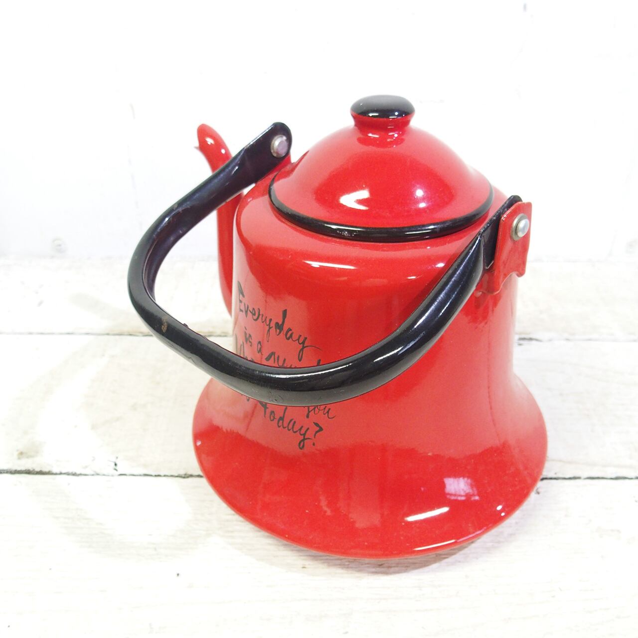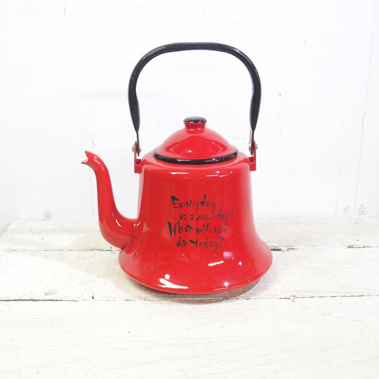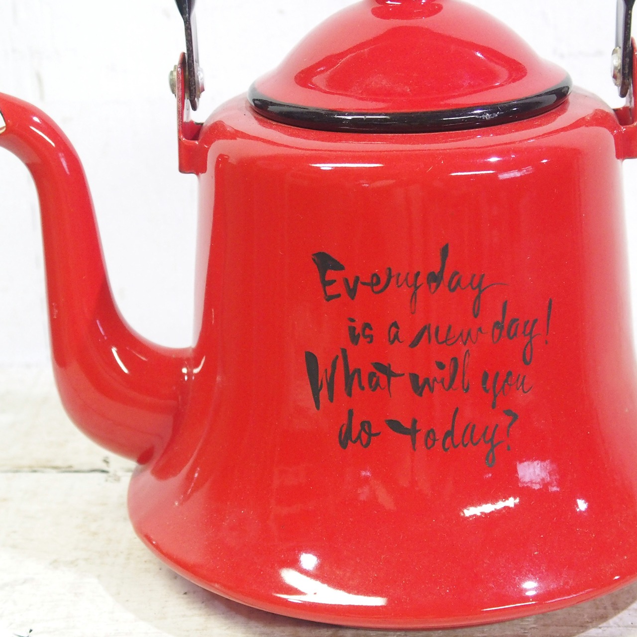 レトロなホーローのケトルに文字を入れたアレンジ品です♪