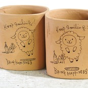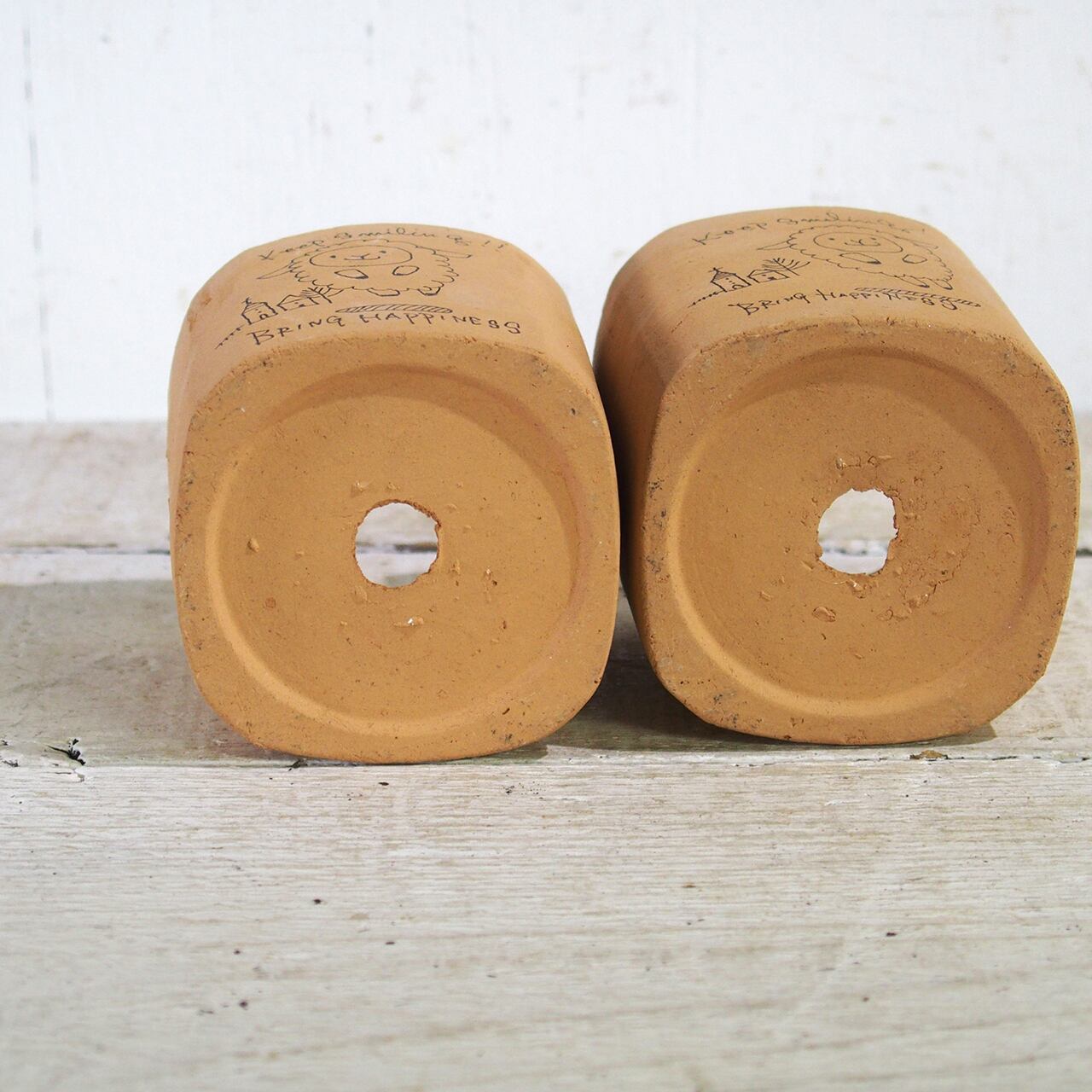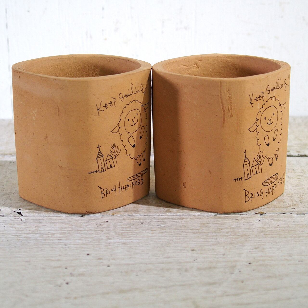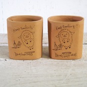 【リメイク鉢】四角2.5号アレンジ鉢 素焼きKeepSmiling羊 細書き