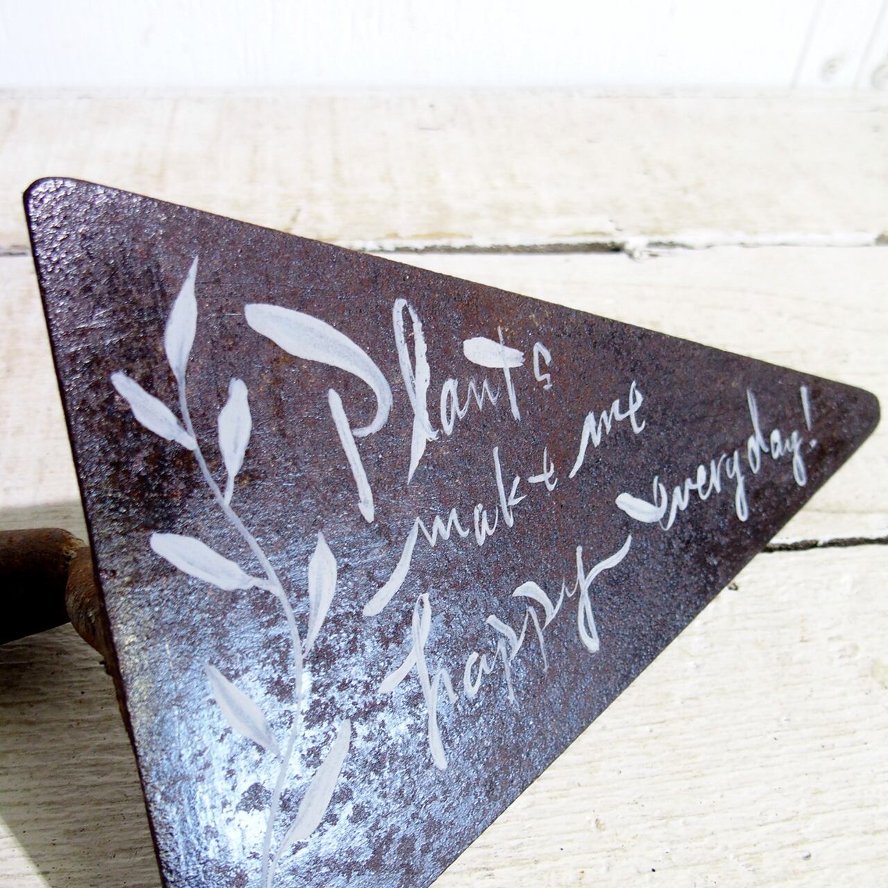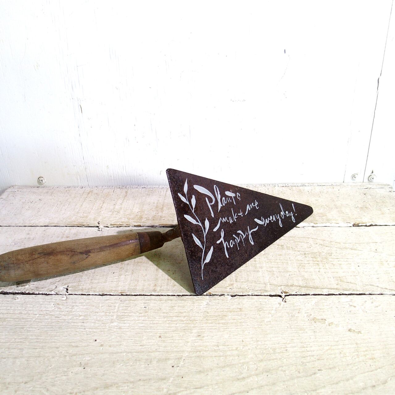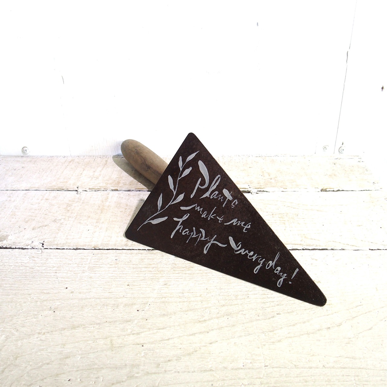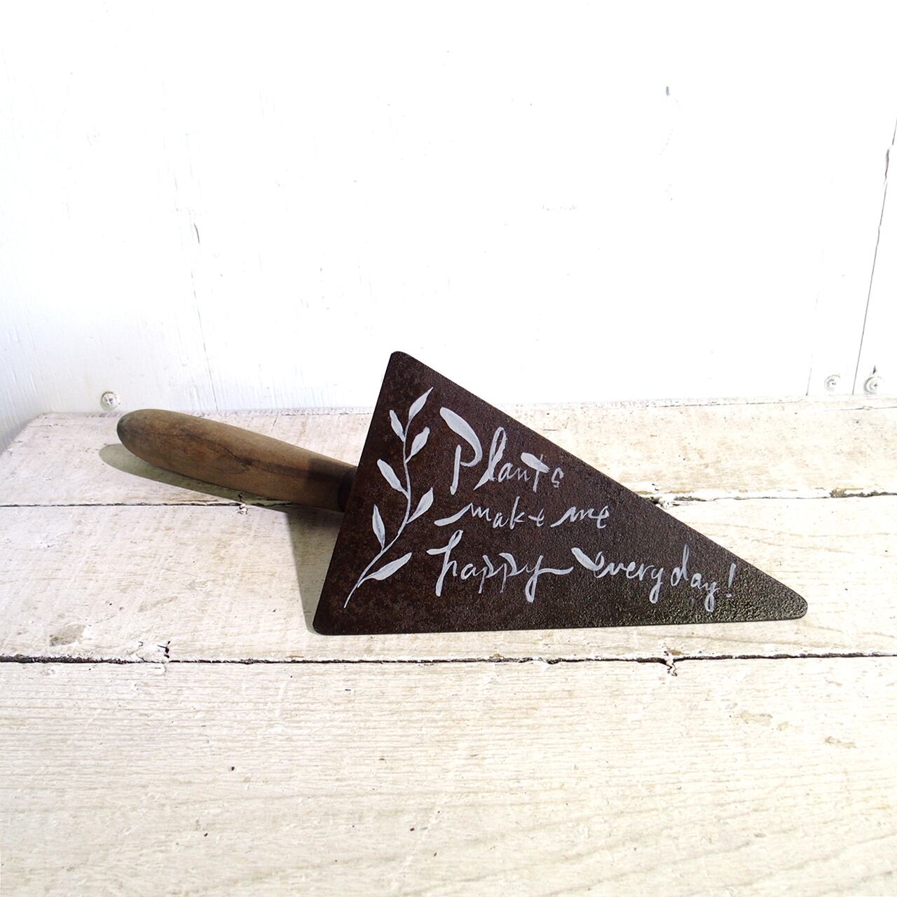 左官職人の使うコテにイラストと文字を入れたサインです。