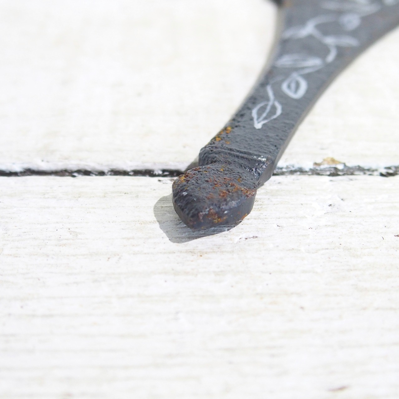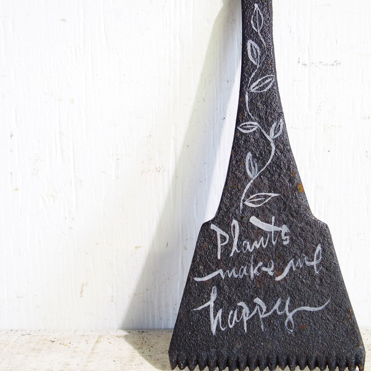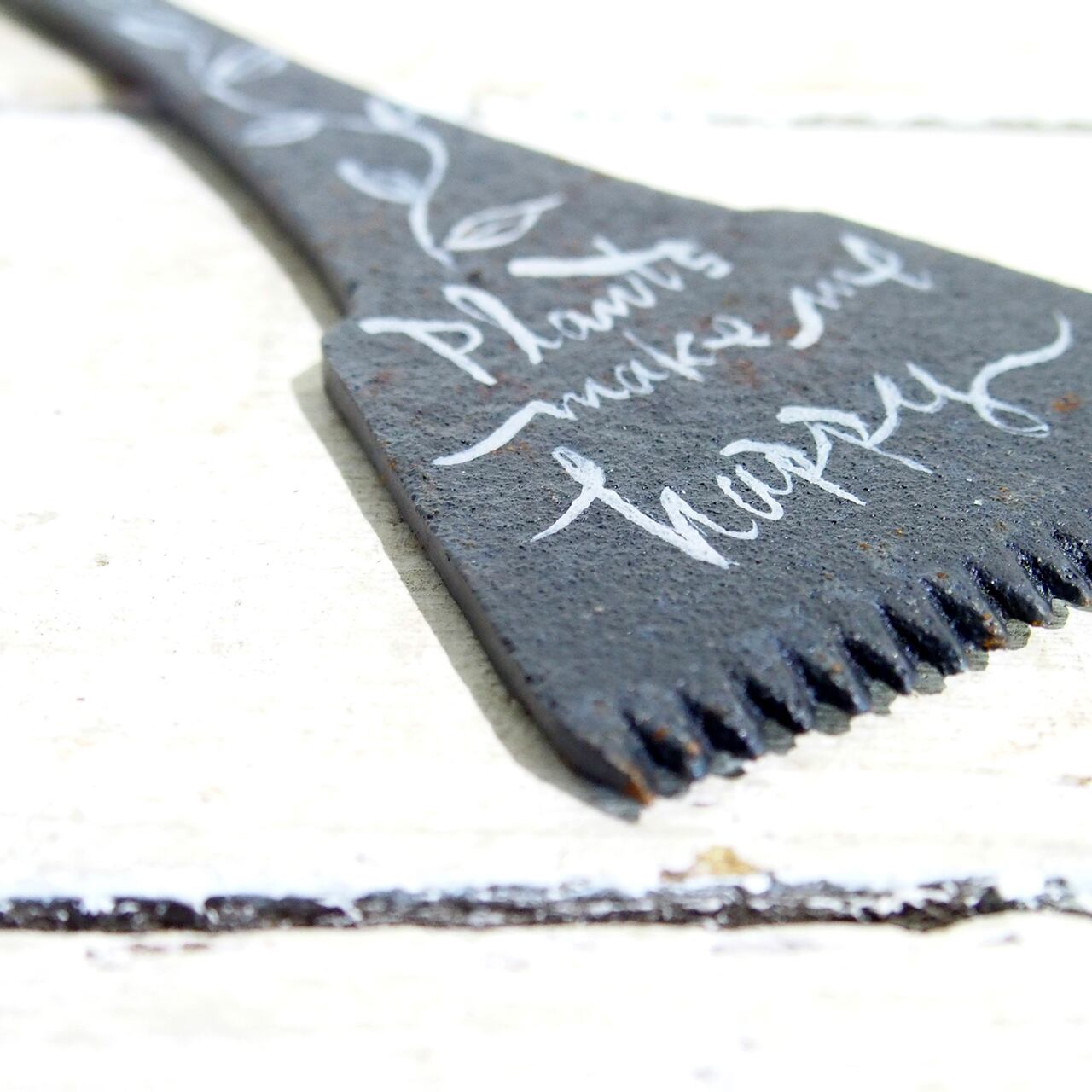 鋳物の櫛のような雑貨に文字を入れたサインです♪