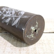 古いお茶缶(茶筒)にイラストと文字入れたアレンジ商品です♪