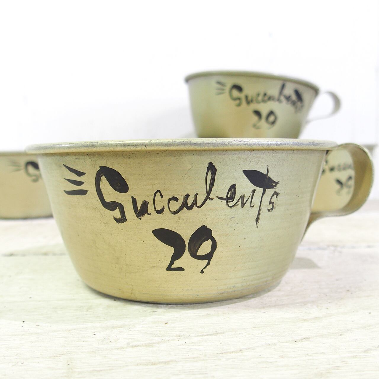 レトロなアルマイトのカップをアレンジしたプランターです♪