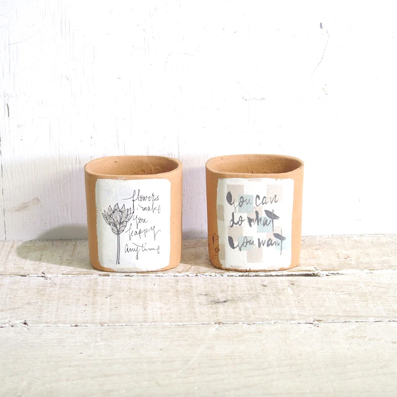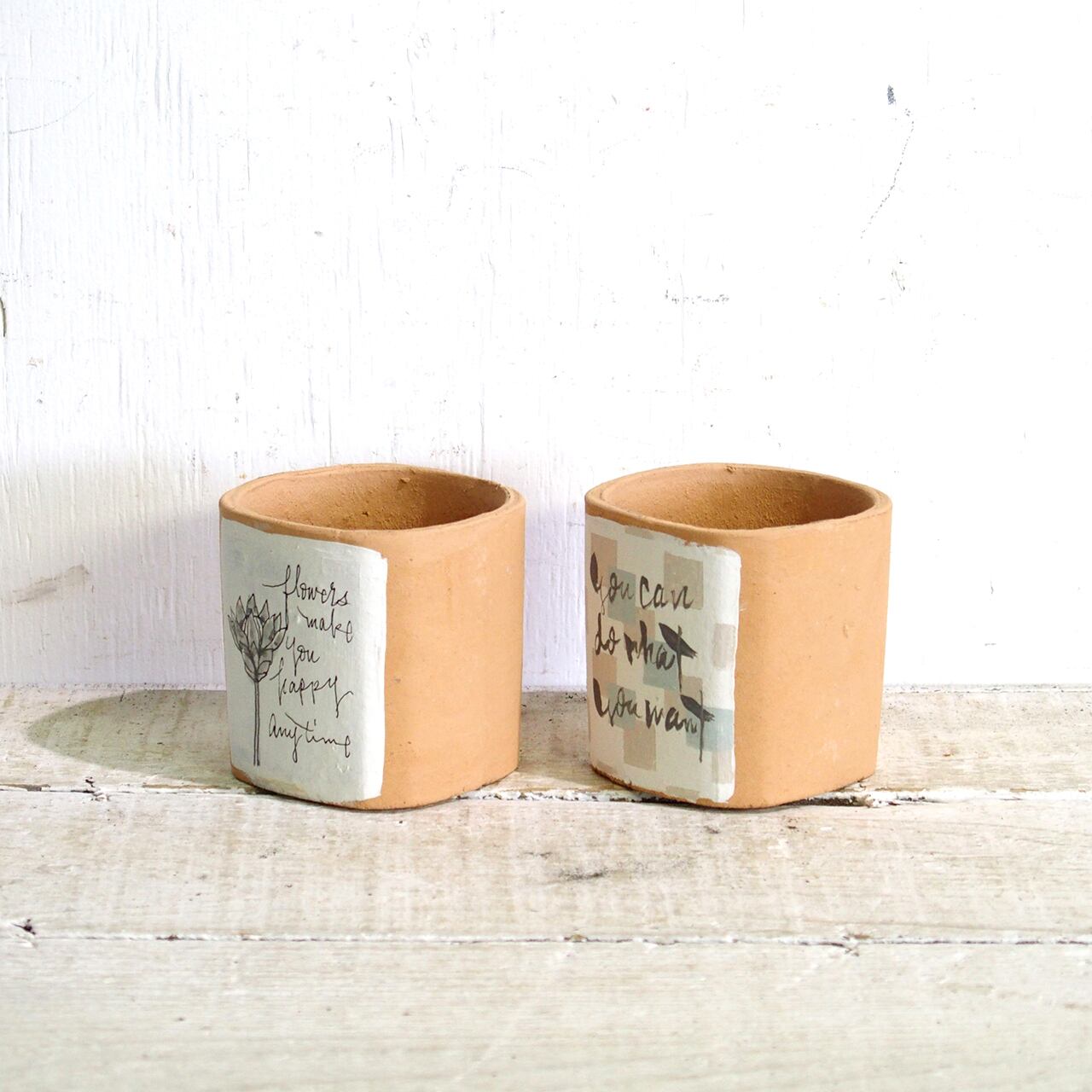 デッドストックの四角鉢にペイントしたアレンジ鉢です♪