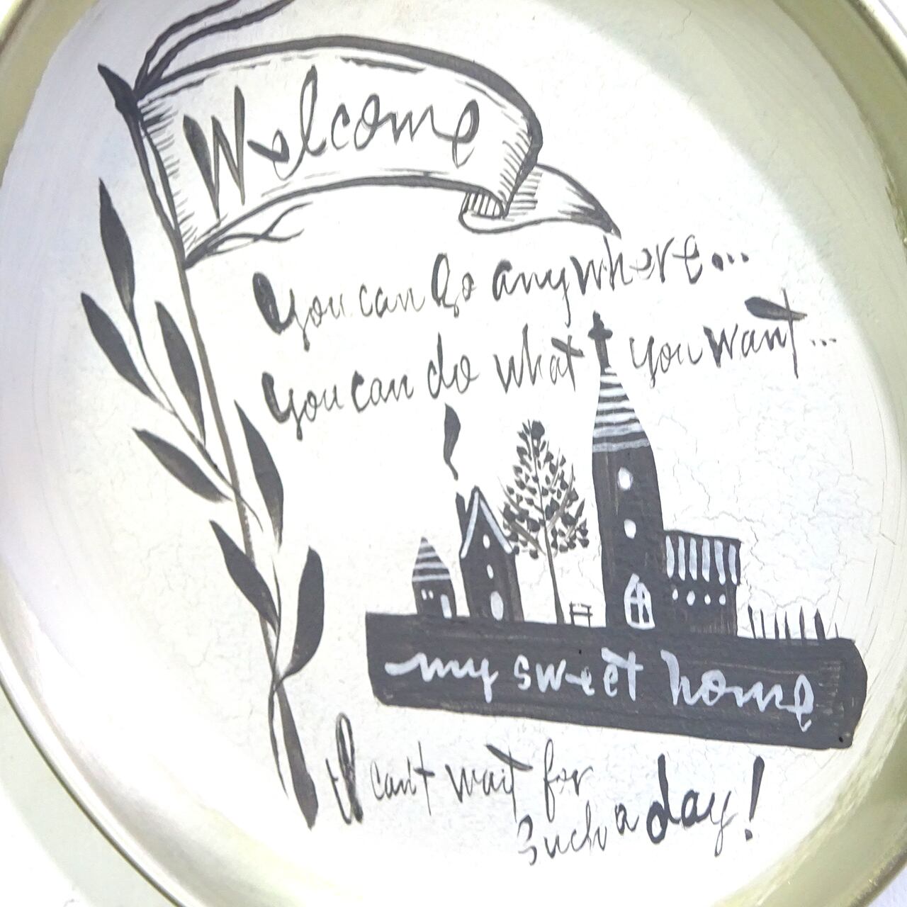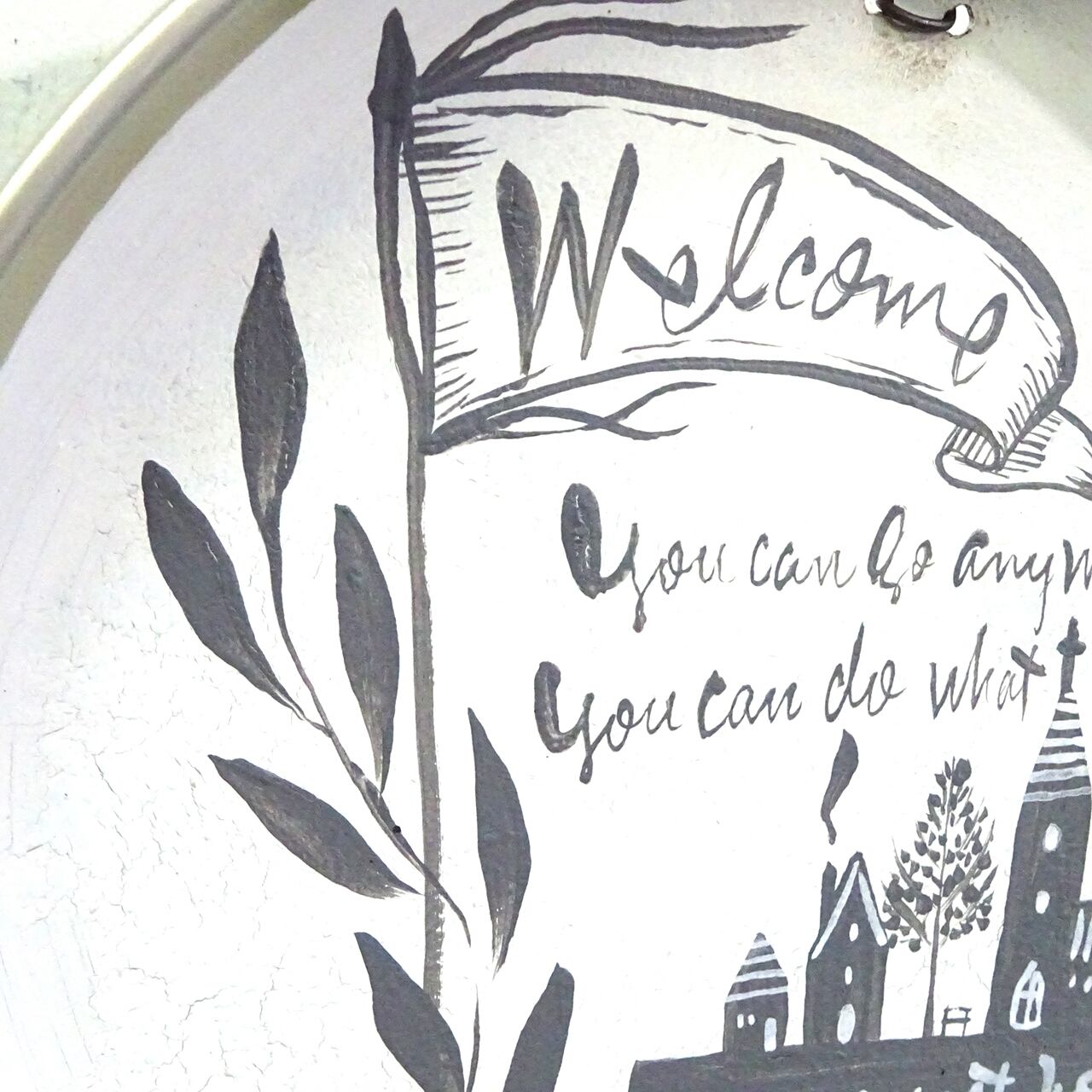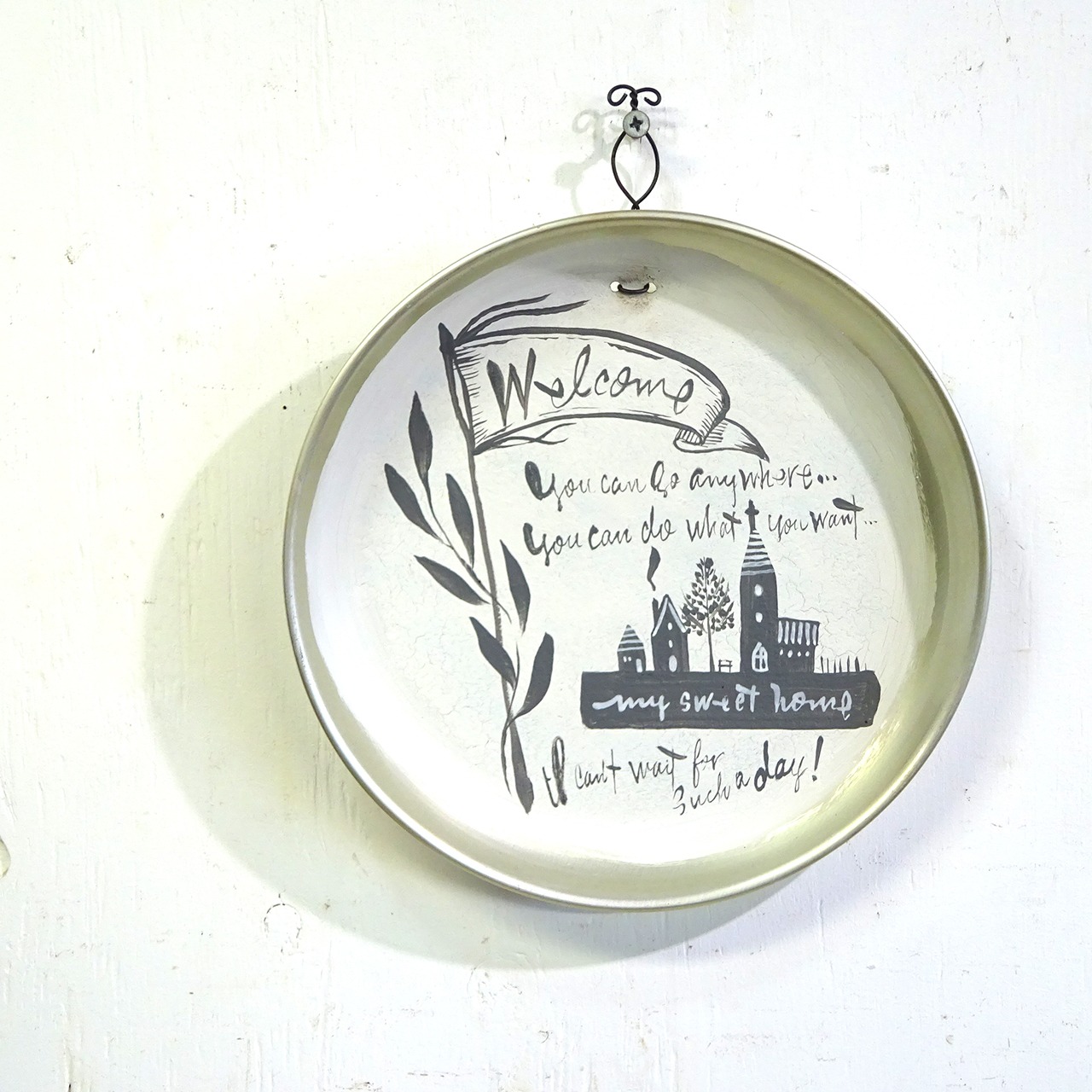 アルミの丸皿にペイントしたアレンジ作品です♪