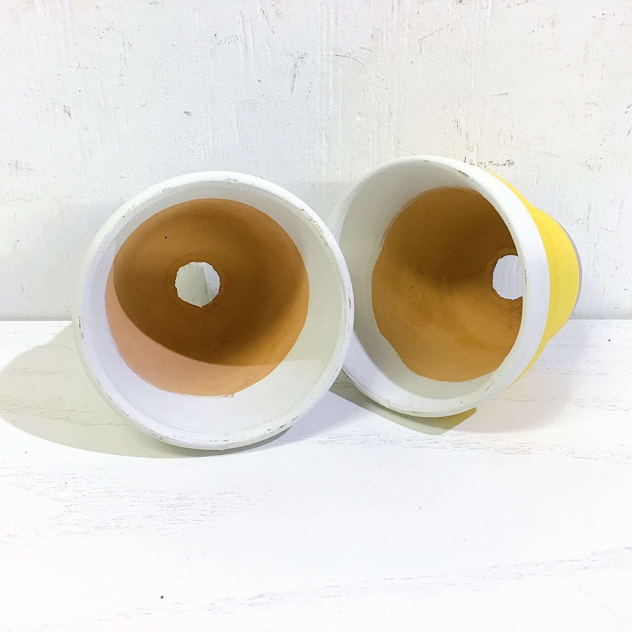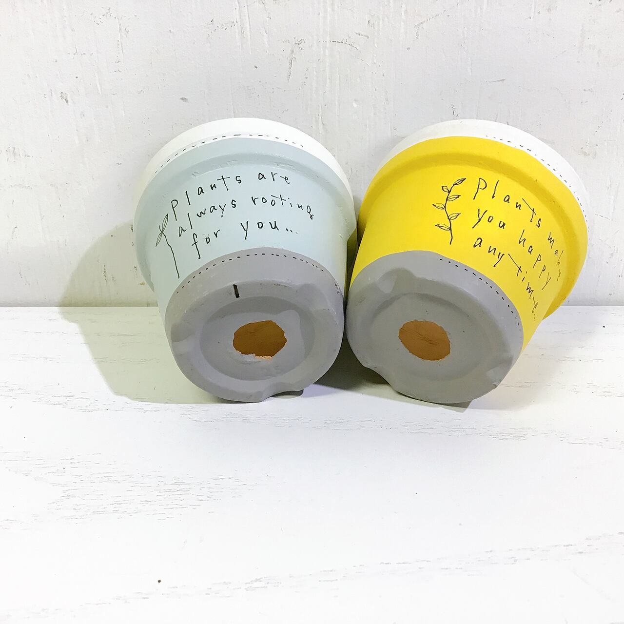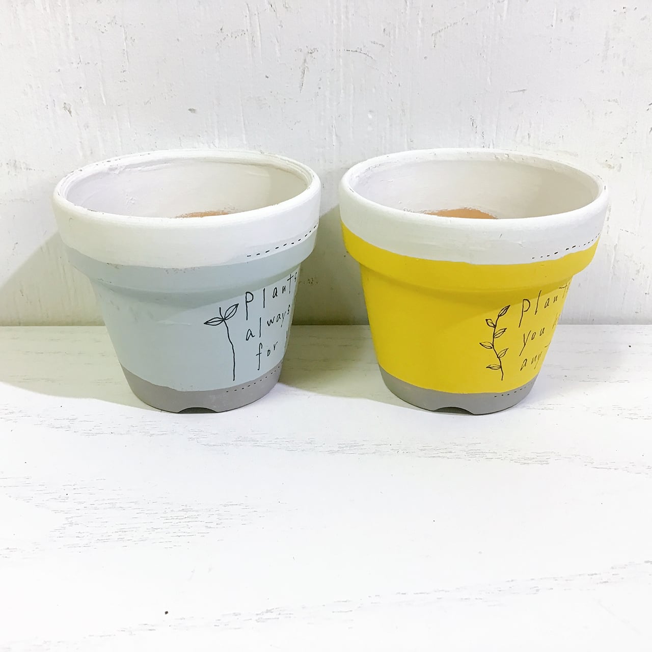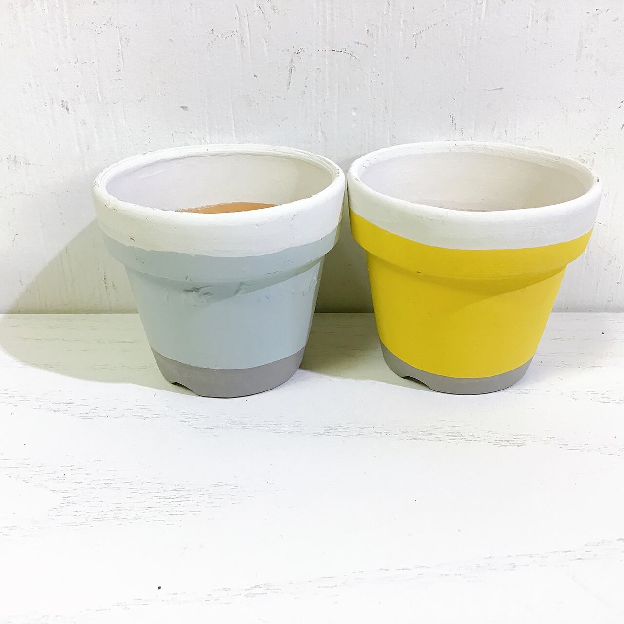 2.5号の丸鉢を3色に塗り分けた可愛いリメ鉢です♪