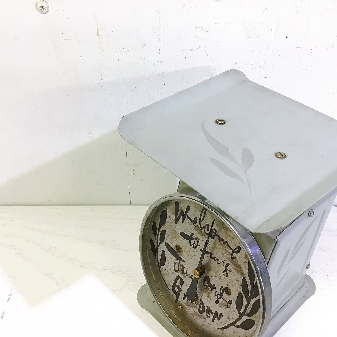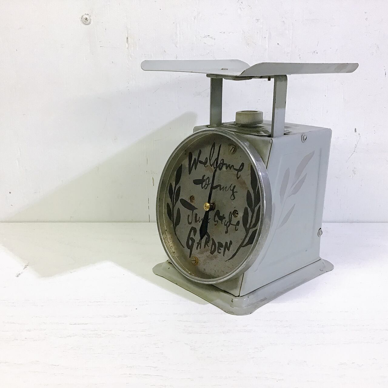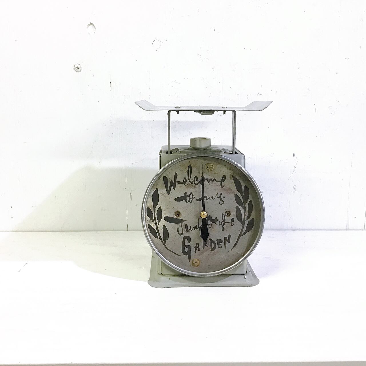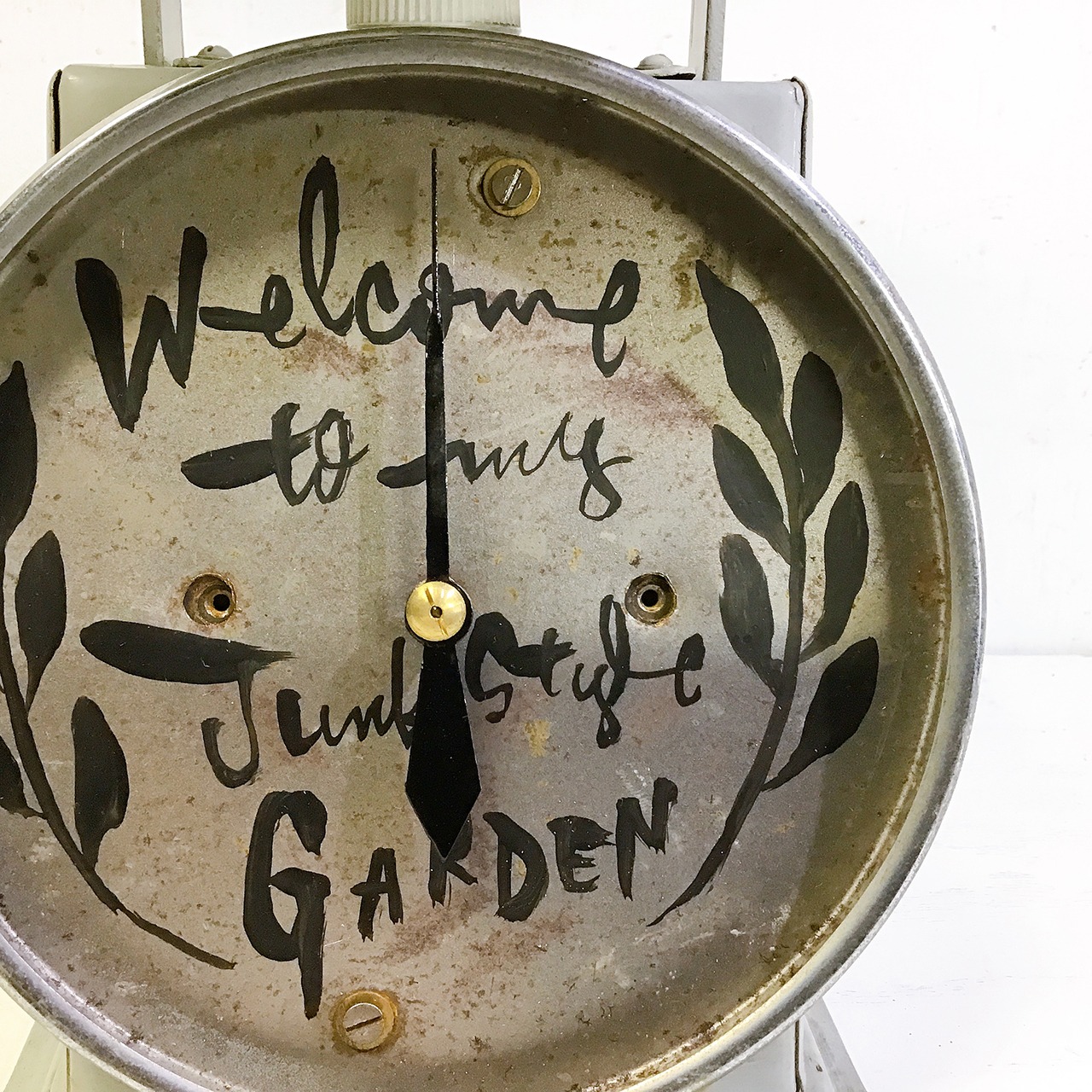ジャンクな上皿ハカリに文字を入れたガーデンオブジェです♪