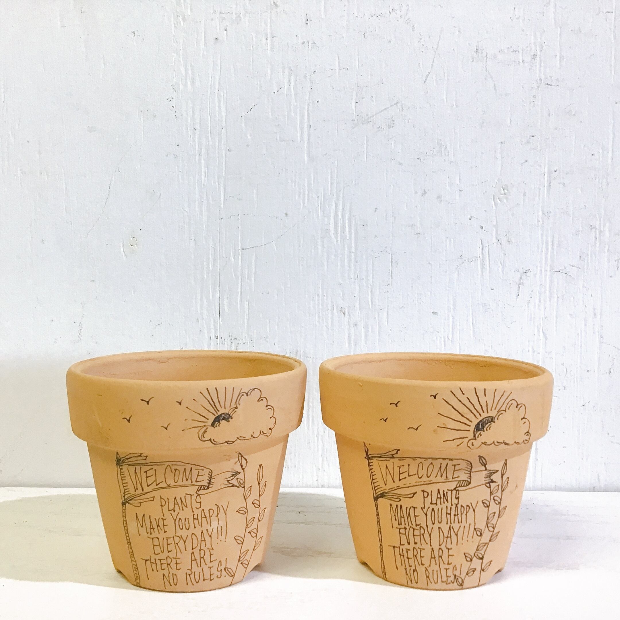 2.5号の丸鉢にドローイングしたリメ鉢です♪