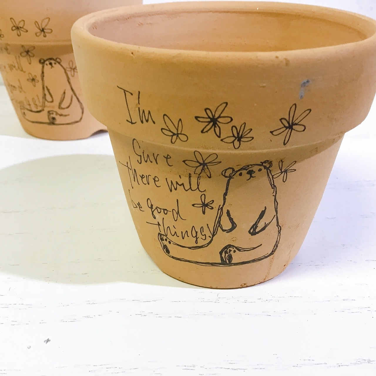 2.5号の丸鉢にドローイングしたリメ鉢です♪
