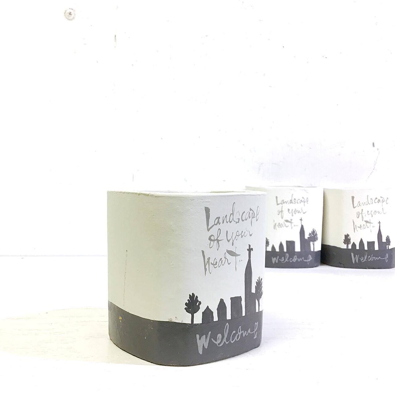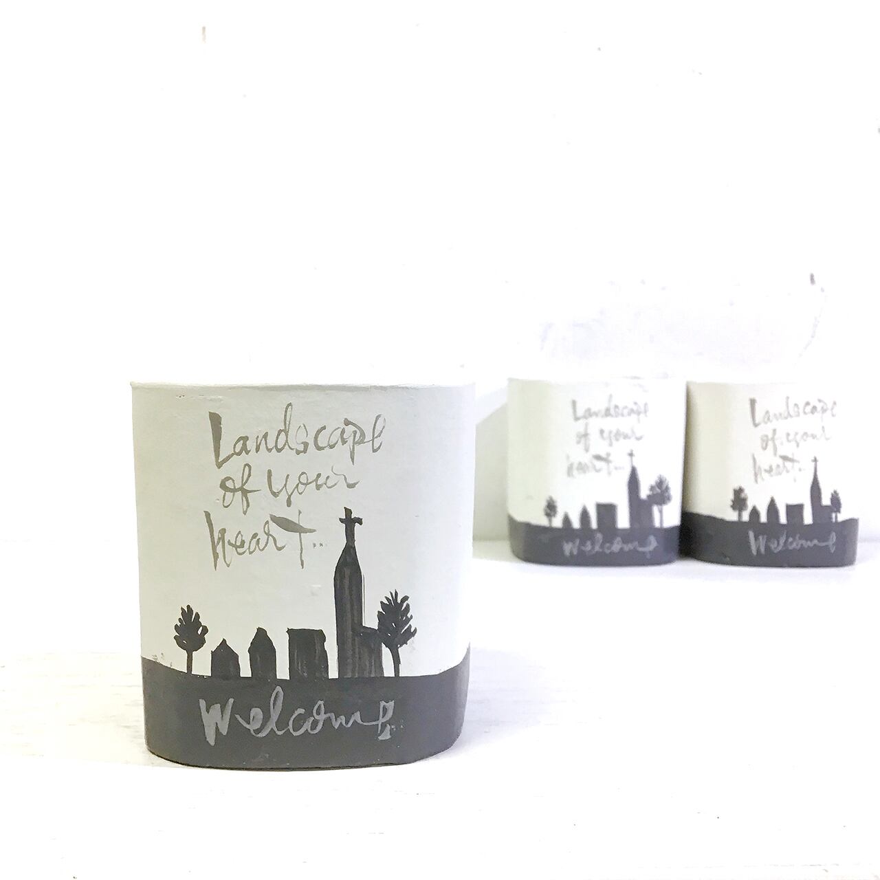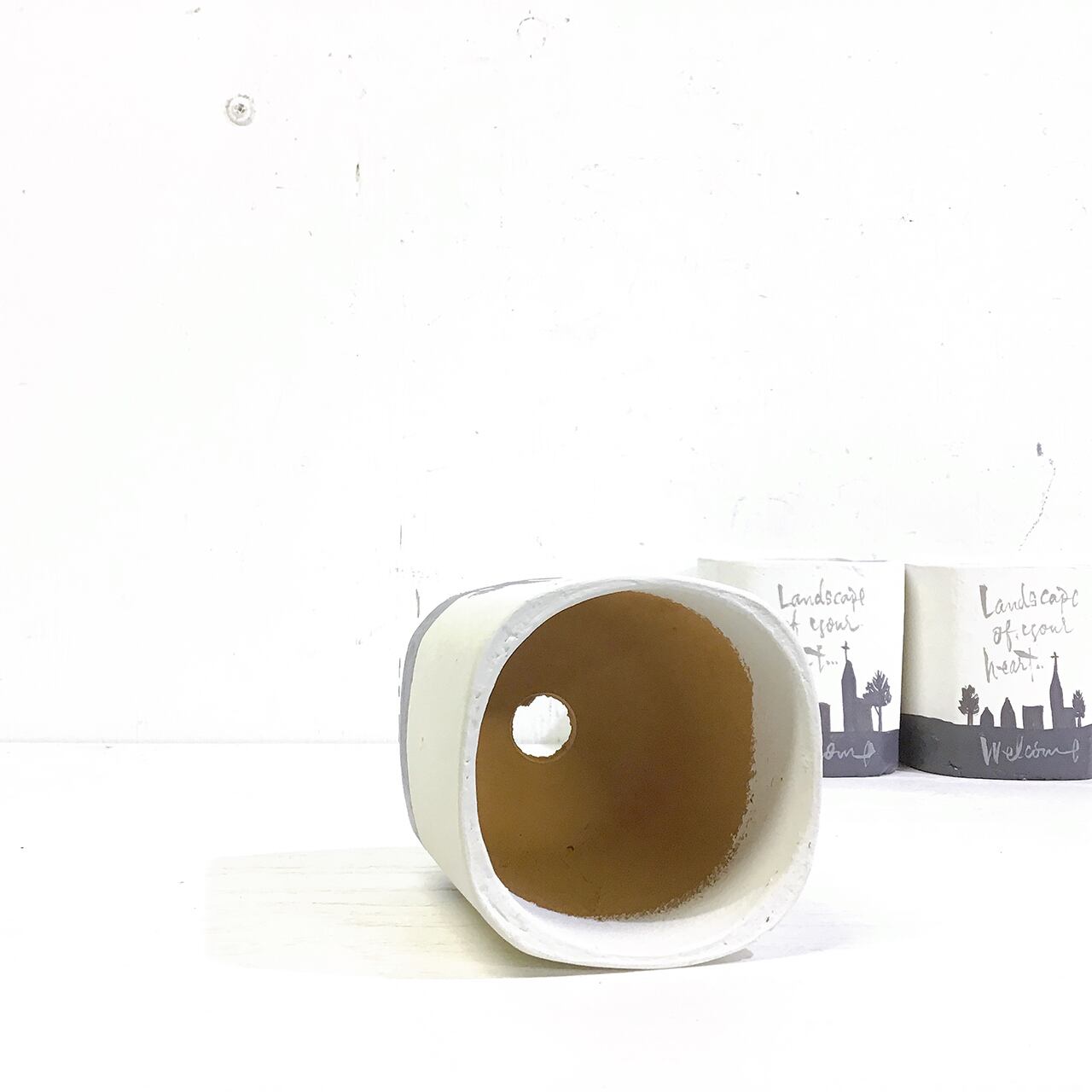 【リメイク鉢】四角2.5号アレンジ鉢 町並み 白グレー