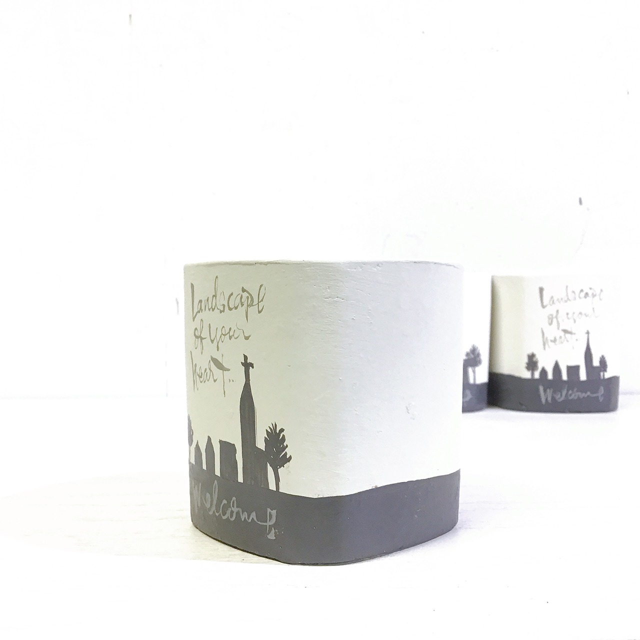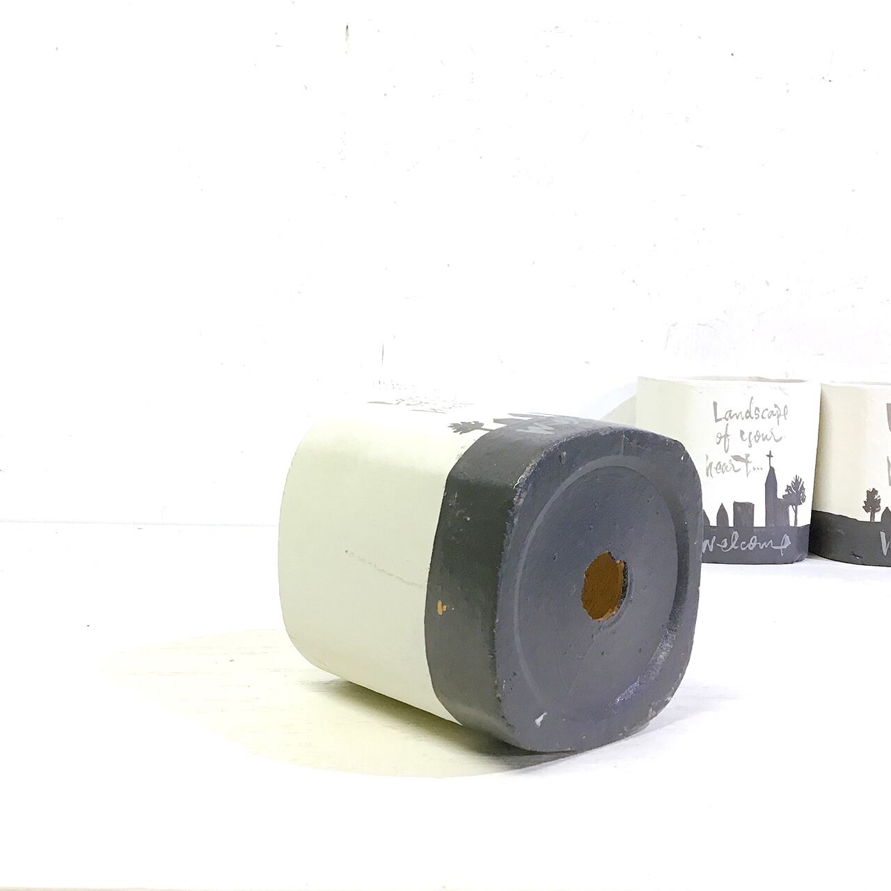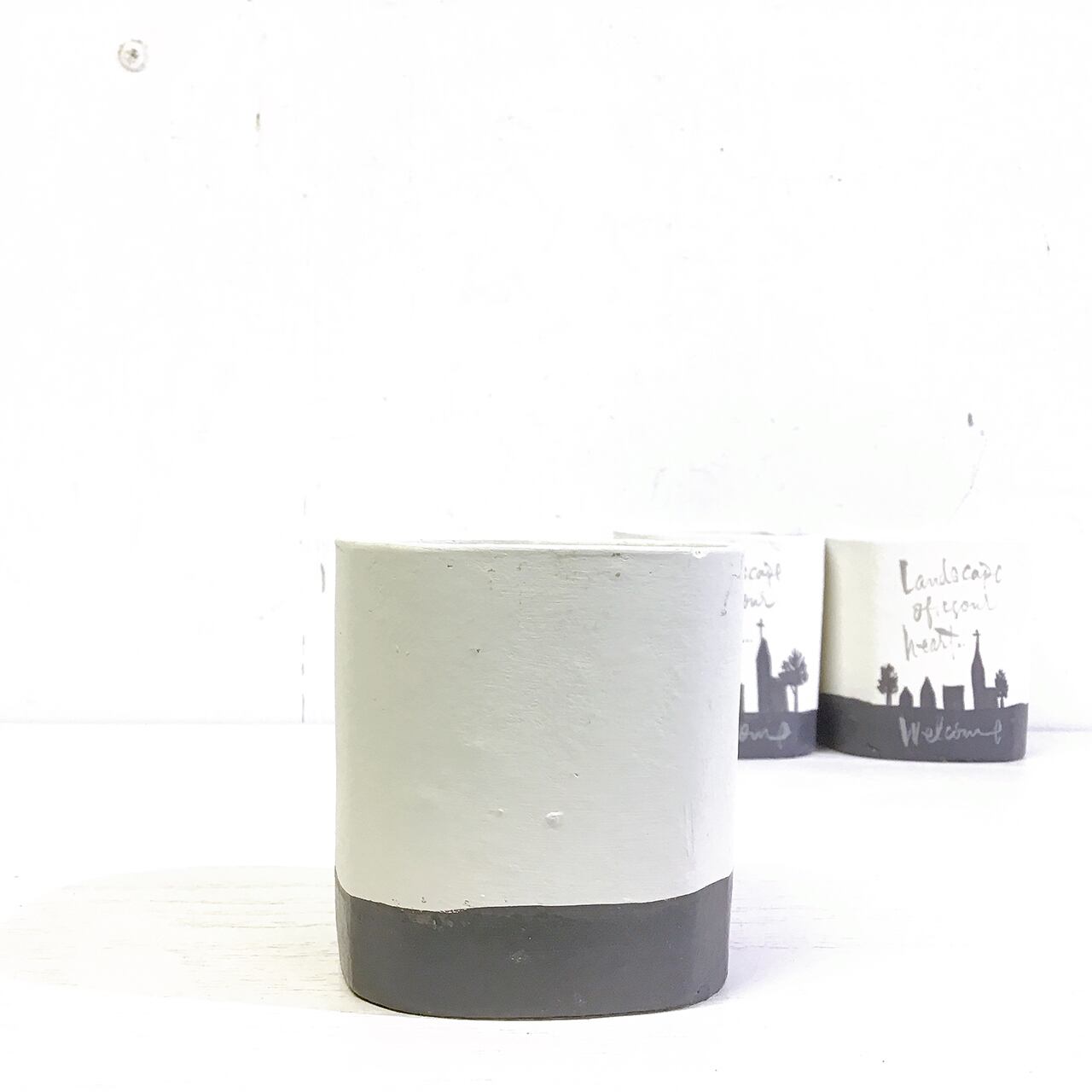 【リメイク鉢】四角2.5号アレンジ鉢 町並み 白グレー