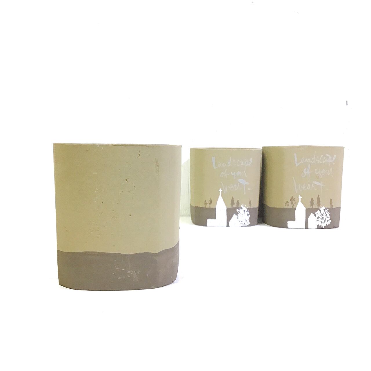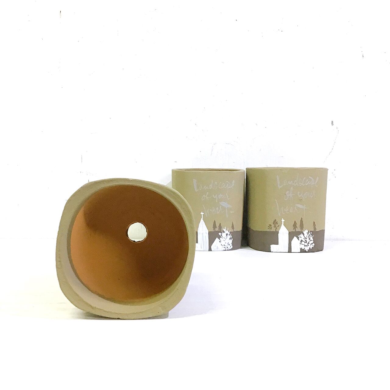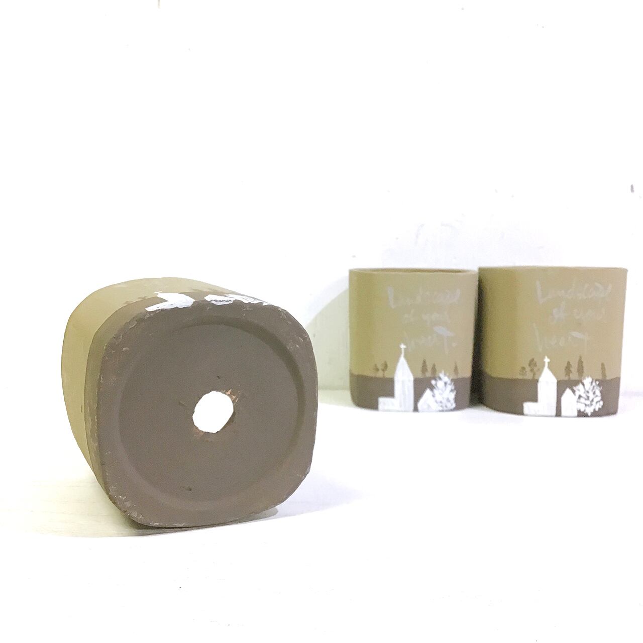 【リメイク鉢】四角2.5号アレンジ鉢 町並み オーカー/ココア
