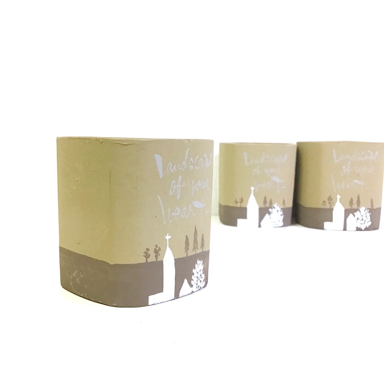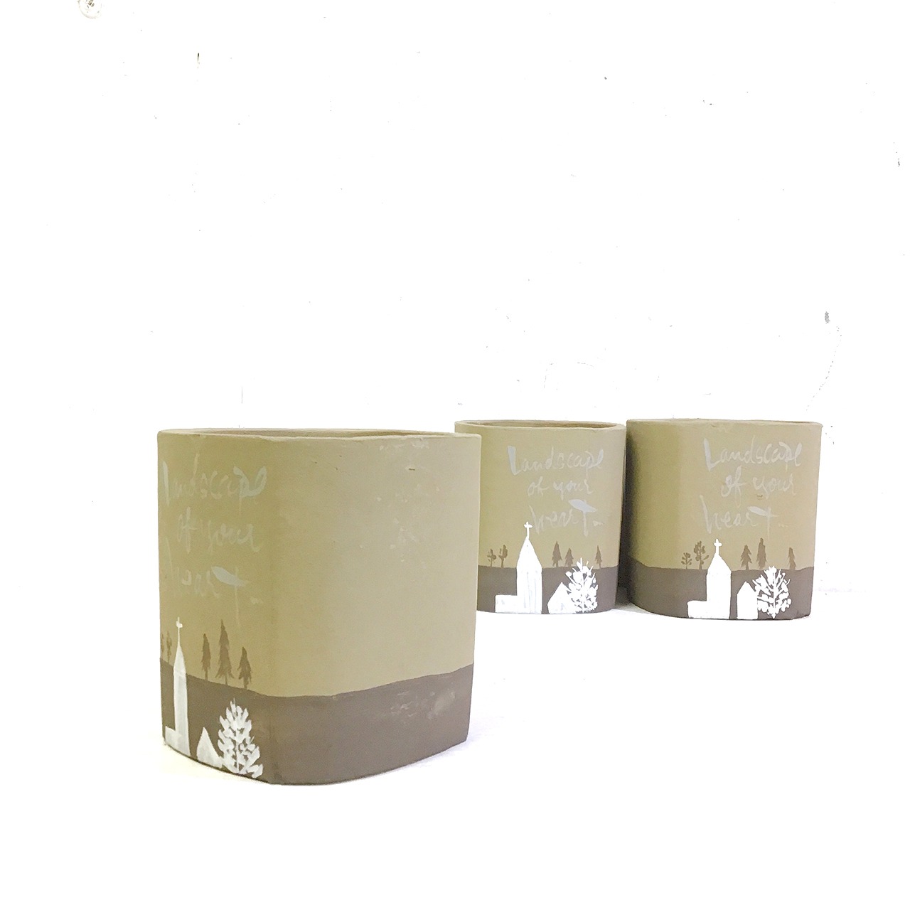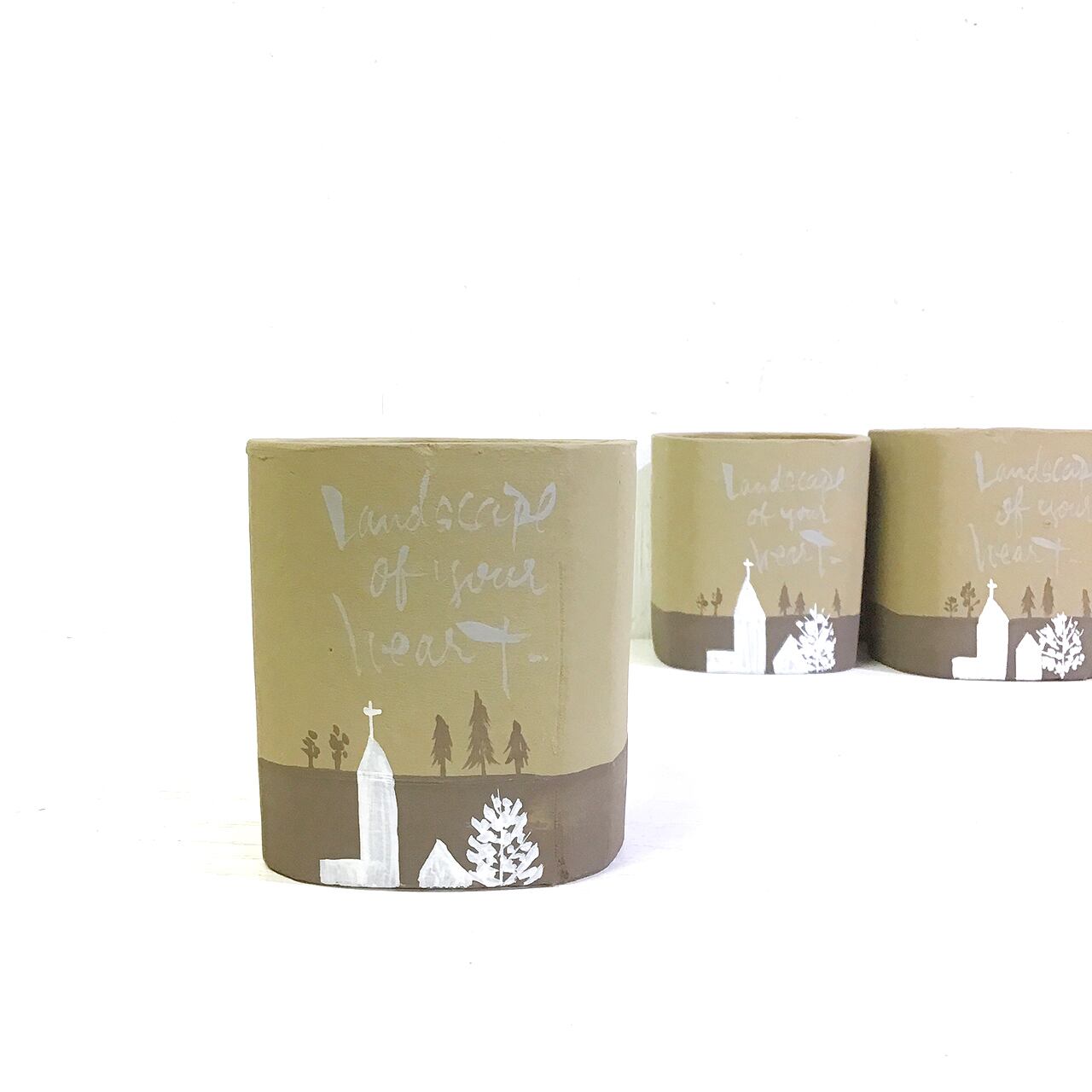 【リメイク鉢】四角2.5号アレンジ鉢 町並み オーカー/ココア