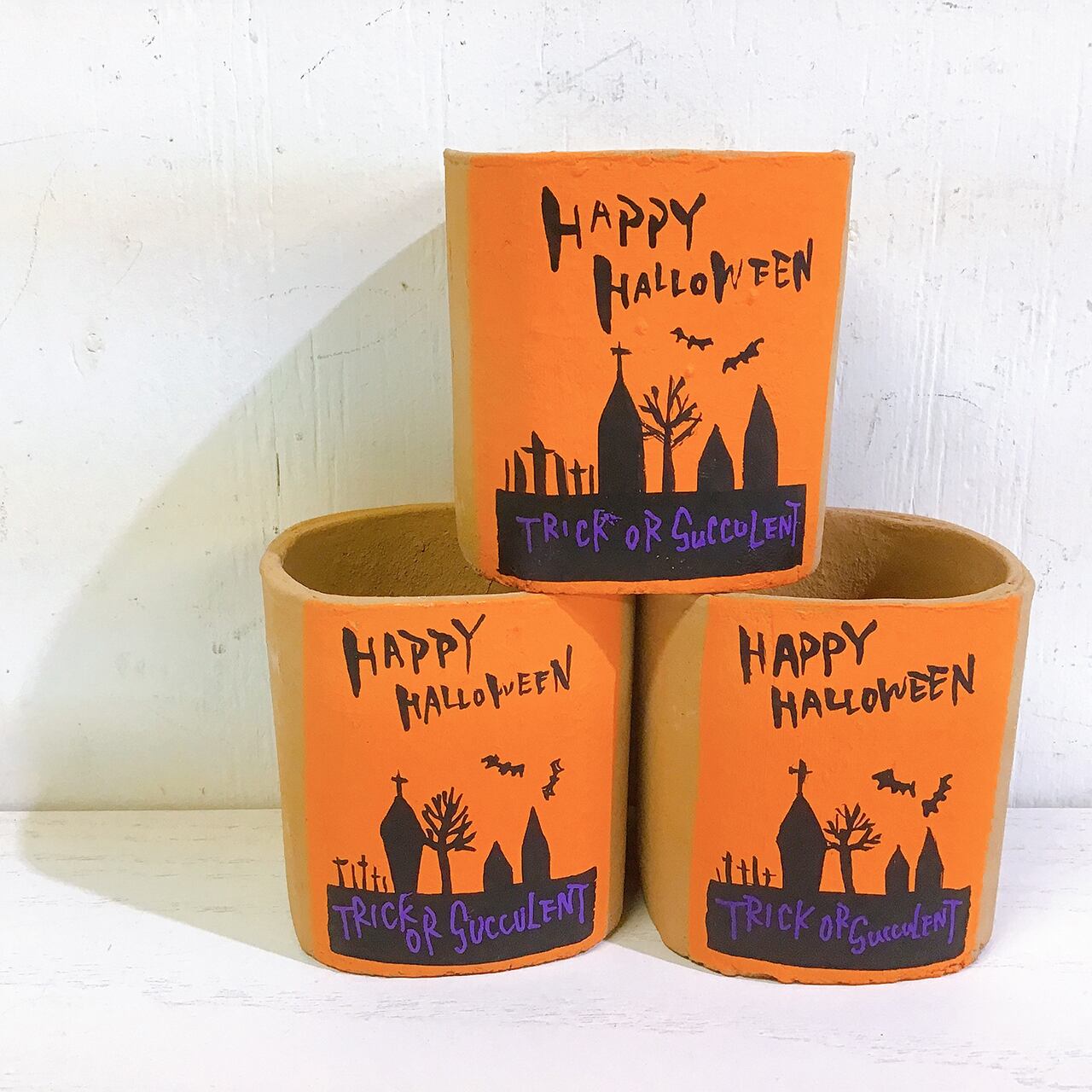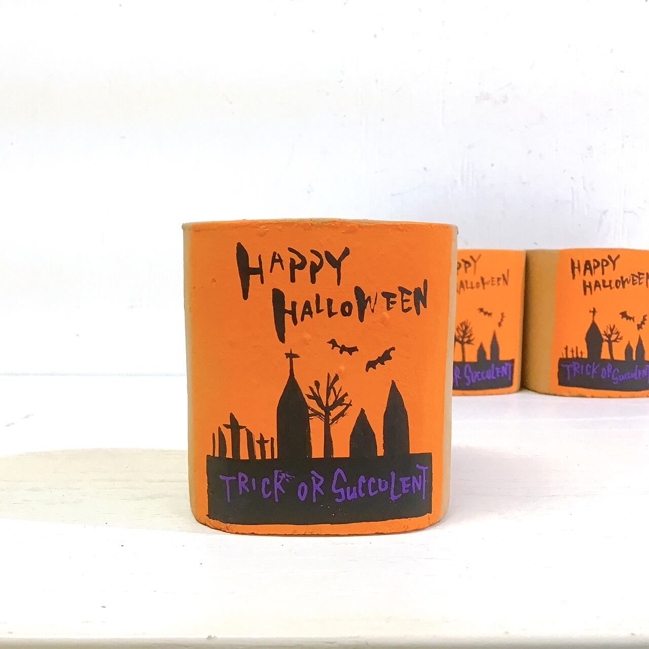 【リメイク鉢】四角2.5号アレンジ鉢 HALLOWEEN