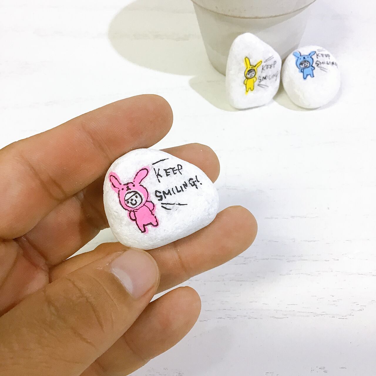 様々な形の「小石」にイラストを描いたミニオブジェです♪