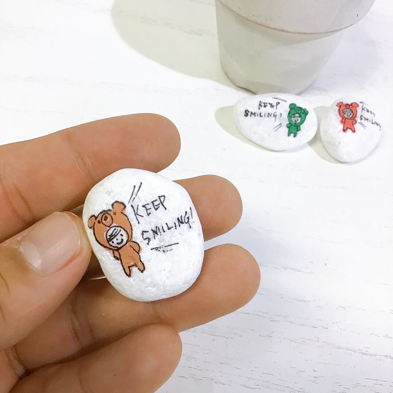 様々な形の「小石」にイラストを描いたミニオブジェです♪