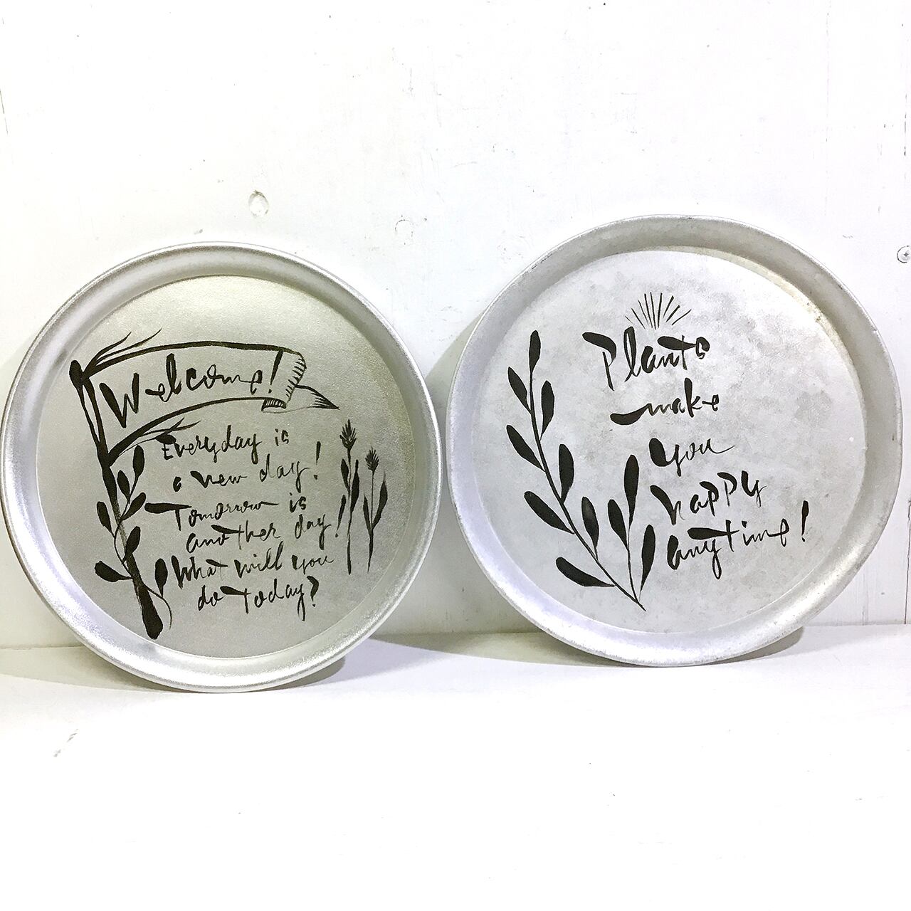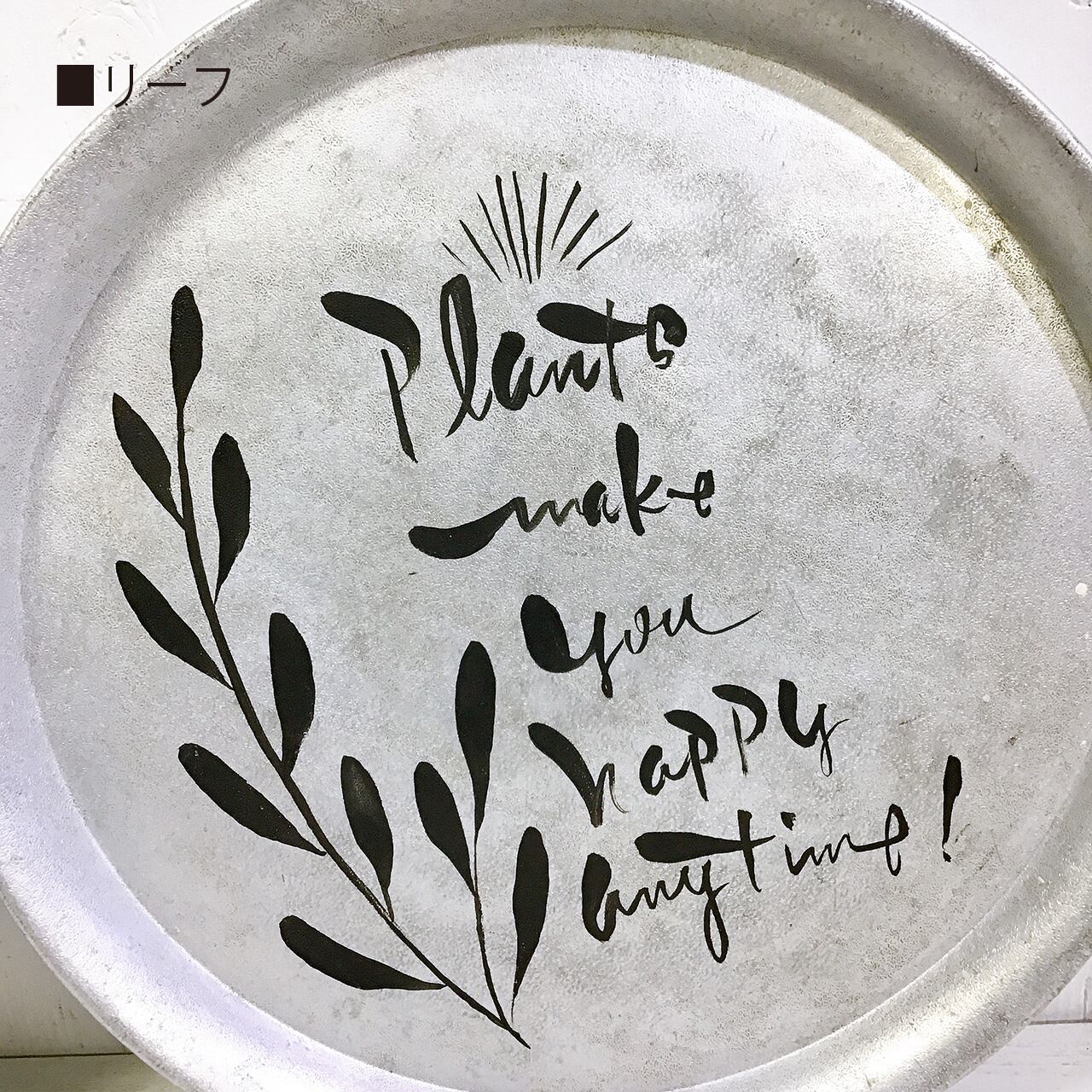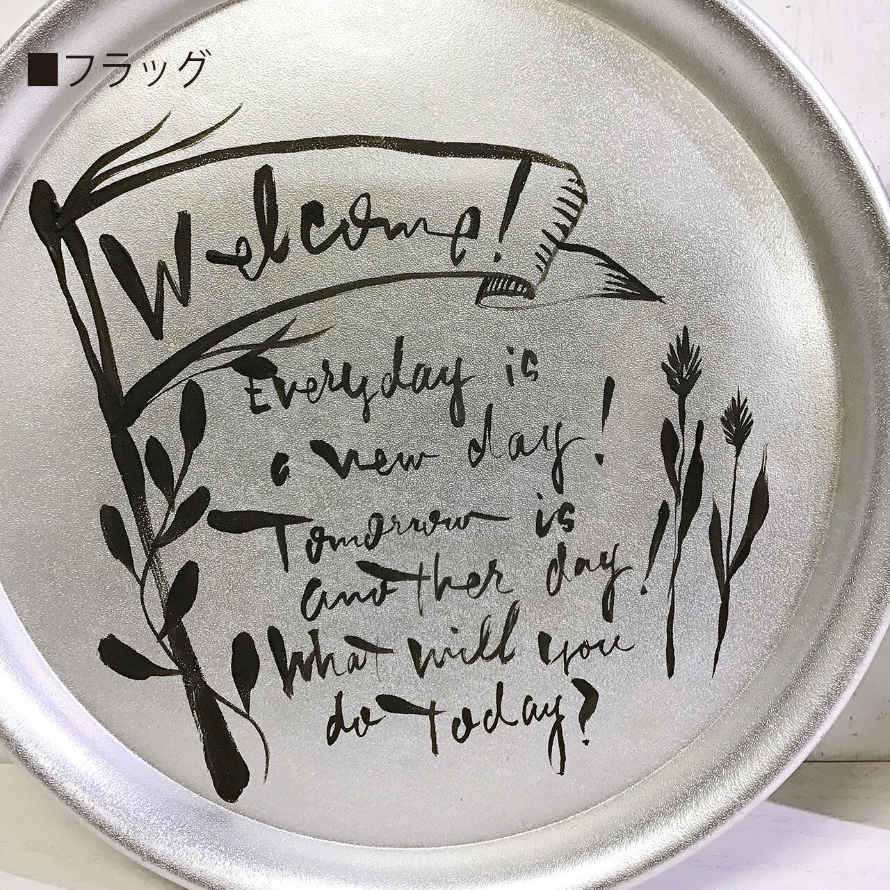 アルミの丸トレーにペイントしたアレンジ作品です♪