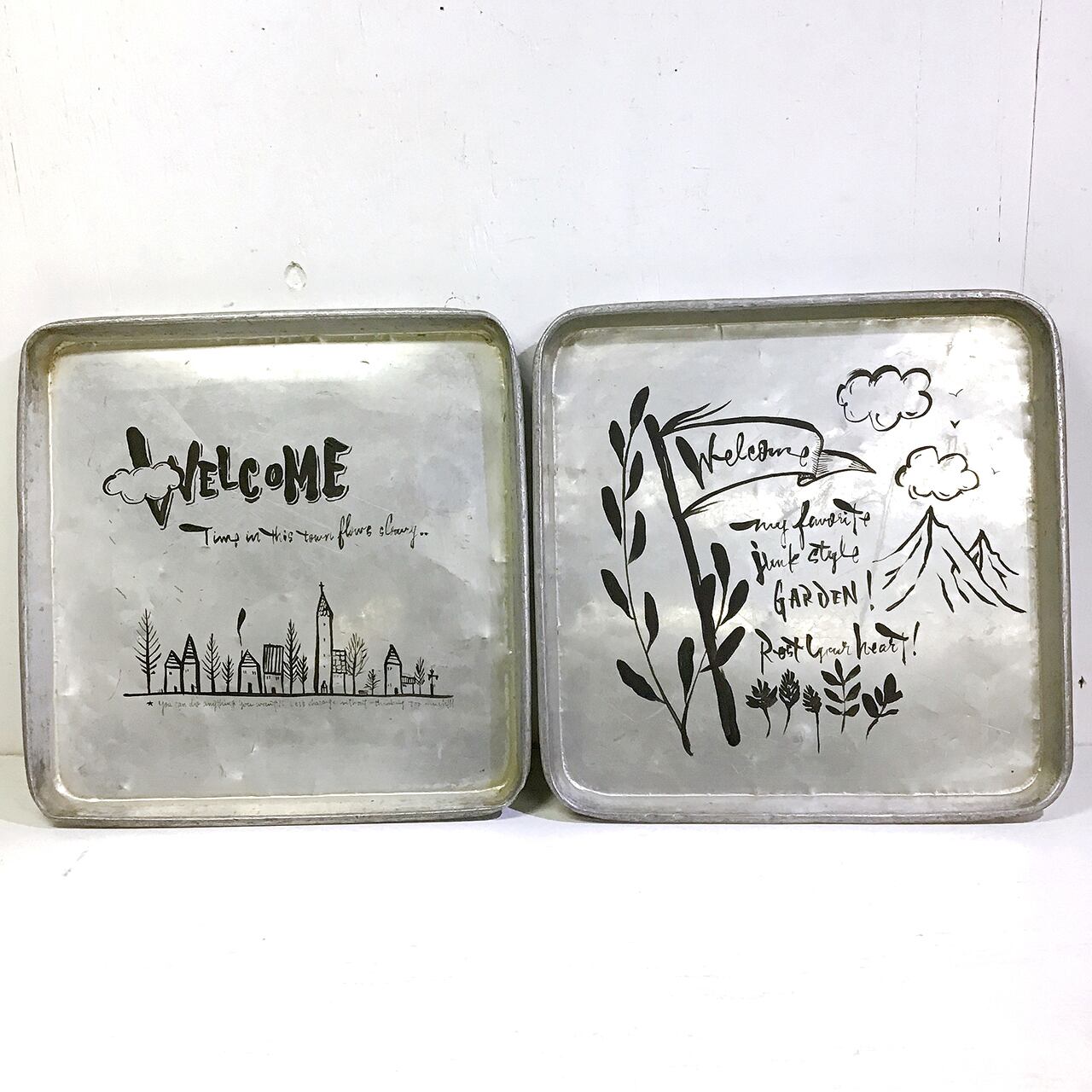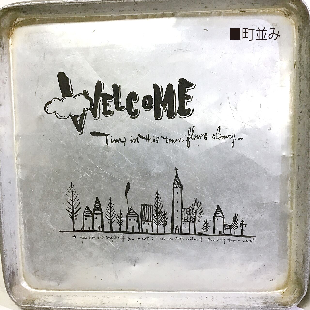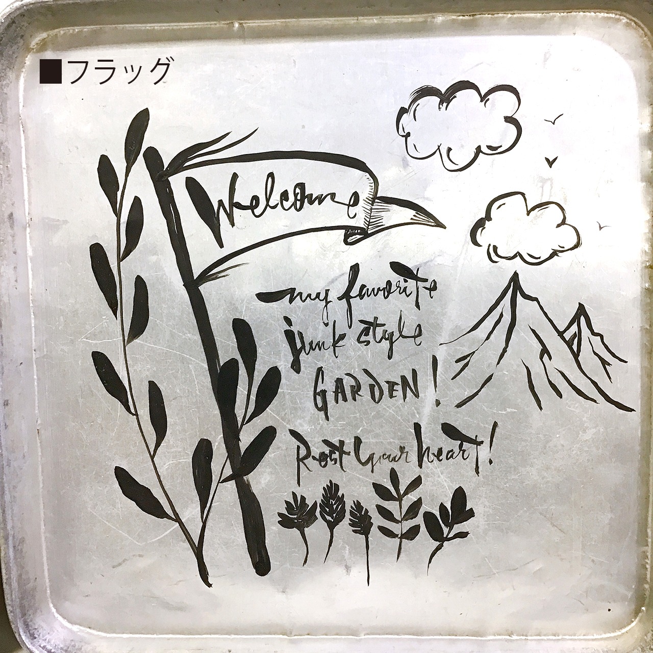 アルミのトレーにイラストと文字を入れたアレンジ作品です♪