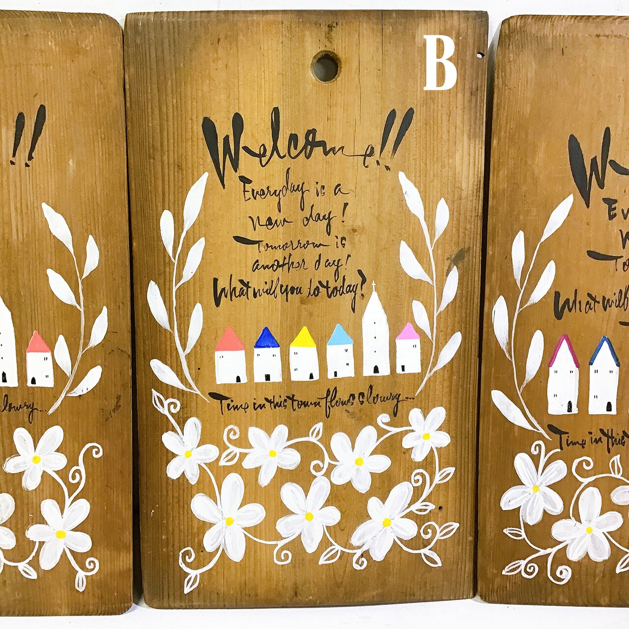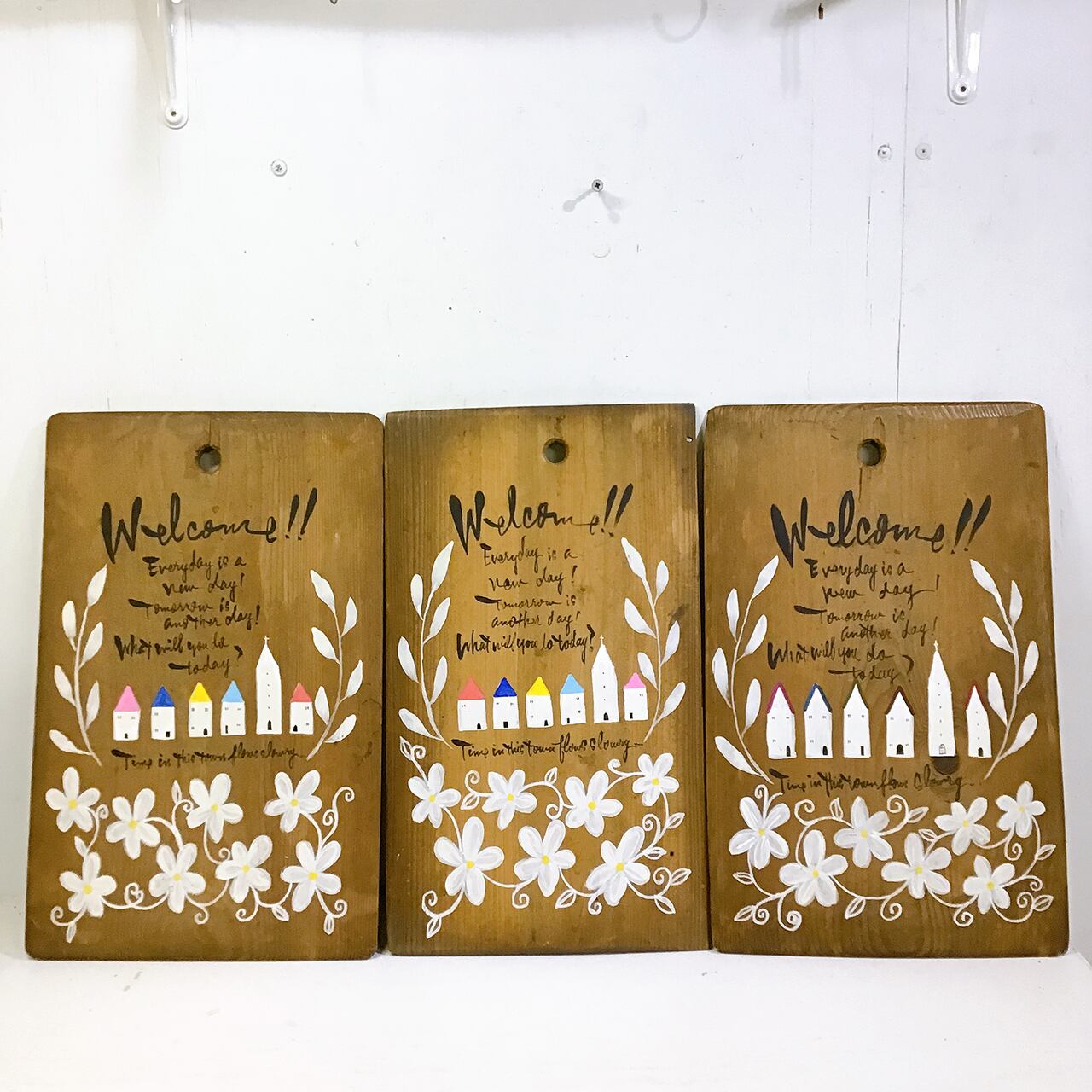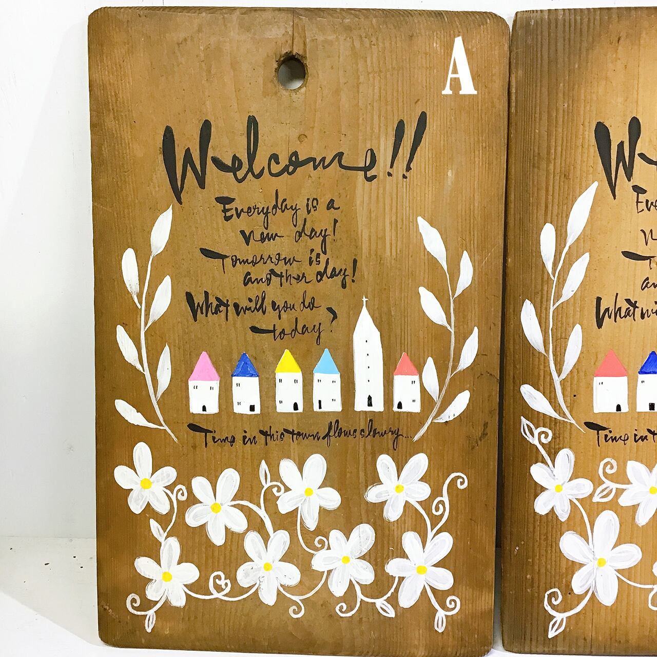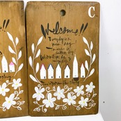 反物などの巻き取りに使われた板にペイントしたイラストパネルです♪