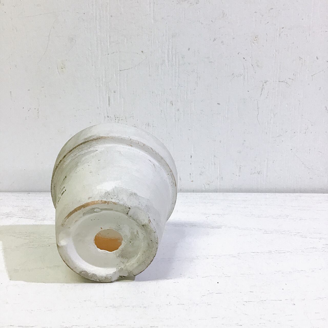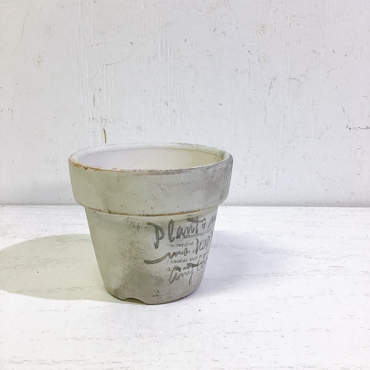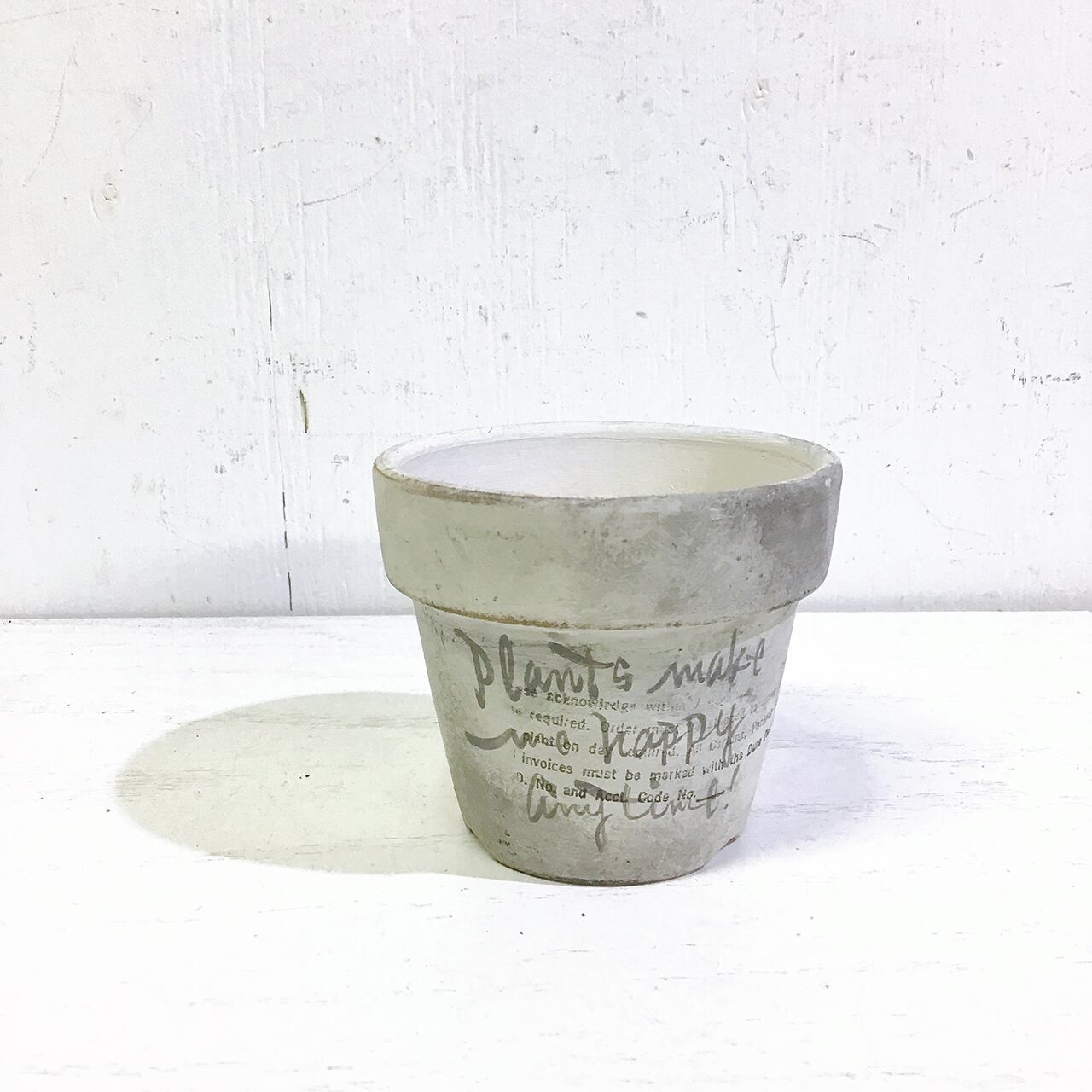 【リメイク鉢】2.5号丸鉢 路地裏風ペイント WH