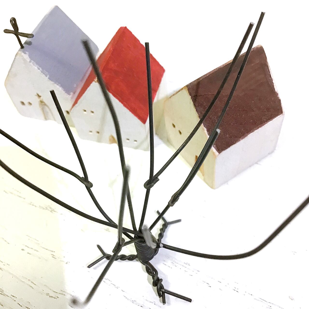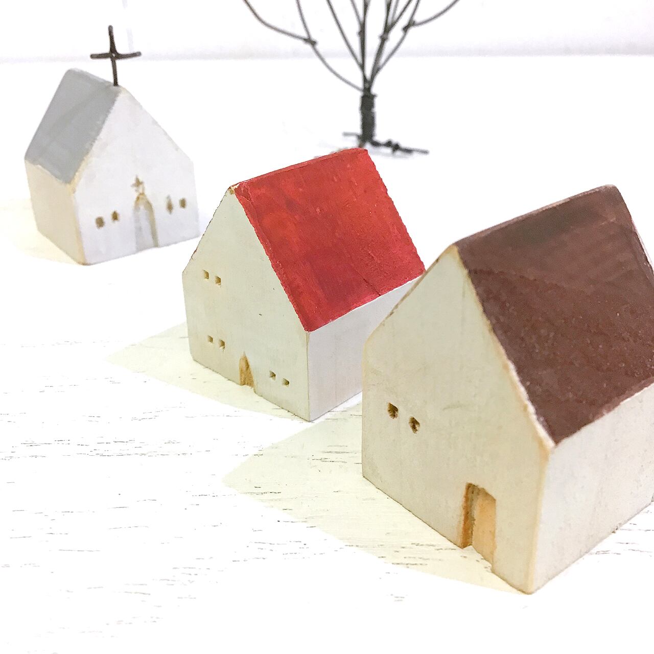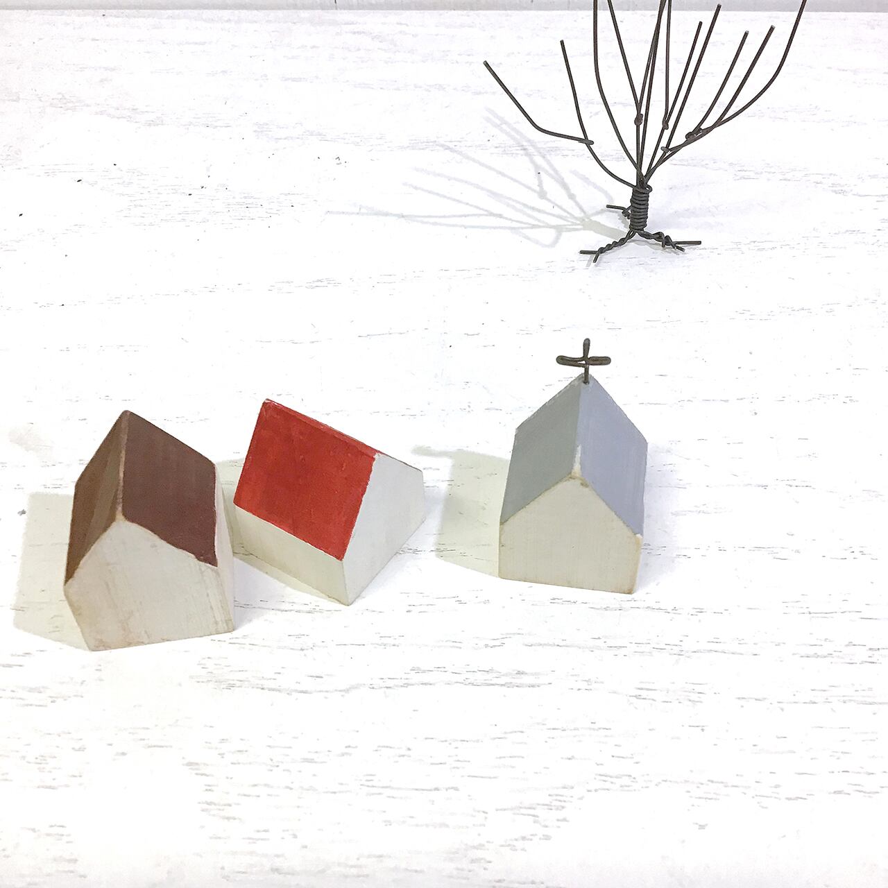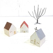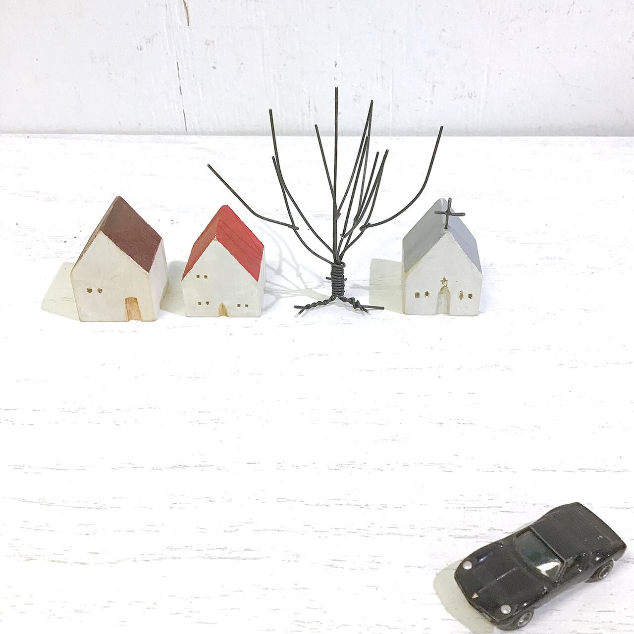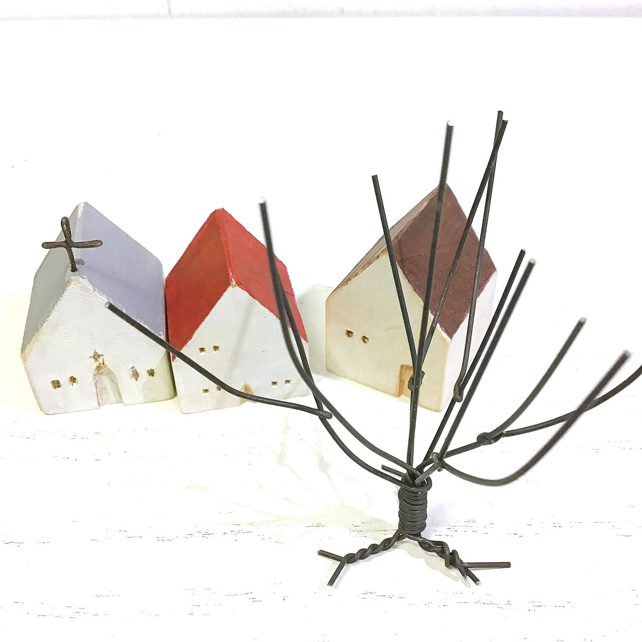 木のお家が2軒と教会、ワイヤーワークで作った木が全てセットです。