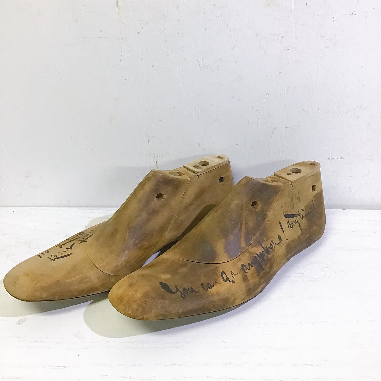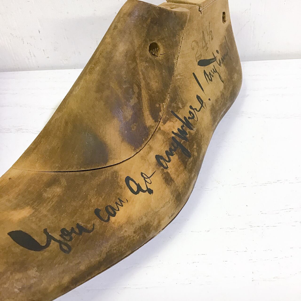 古い木製のシューモールド(靴型)に少し文字を足してアレンジ♪