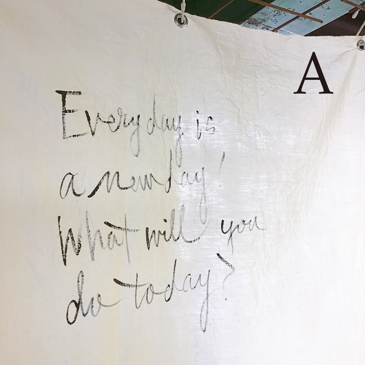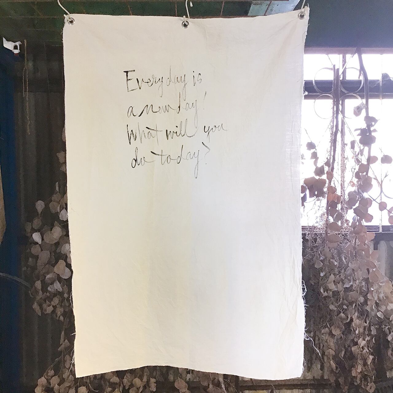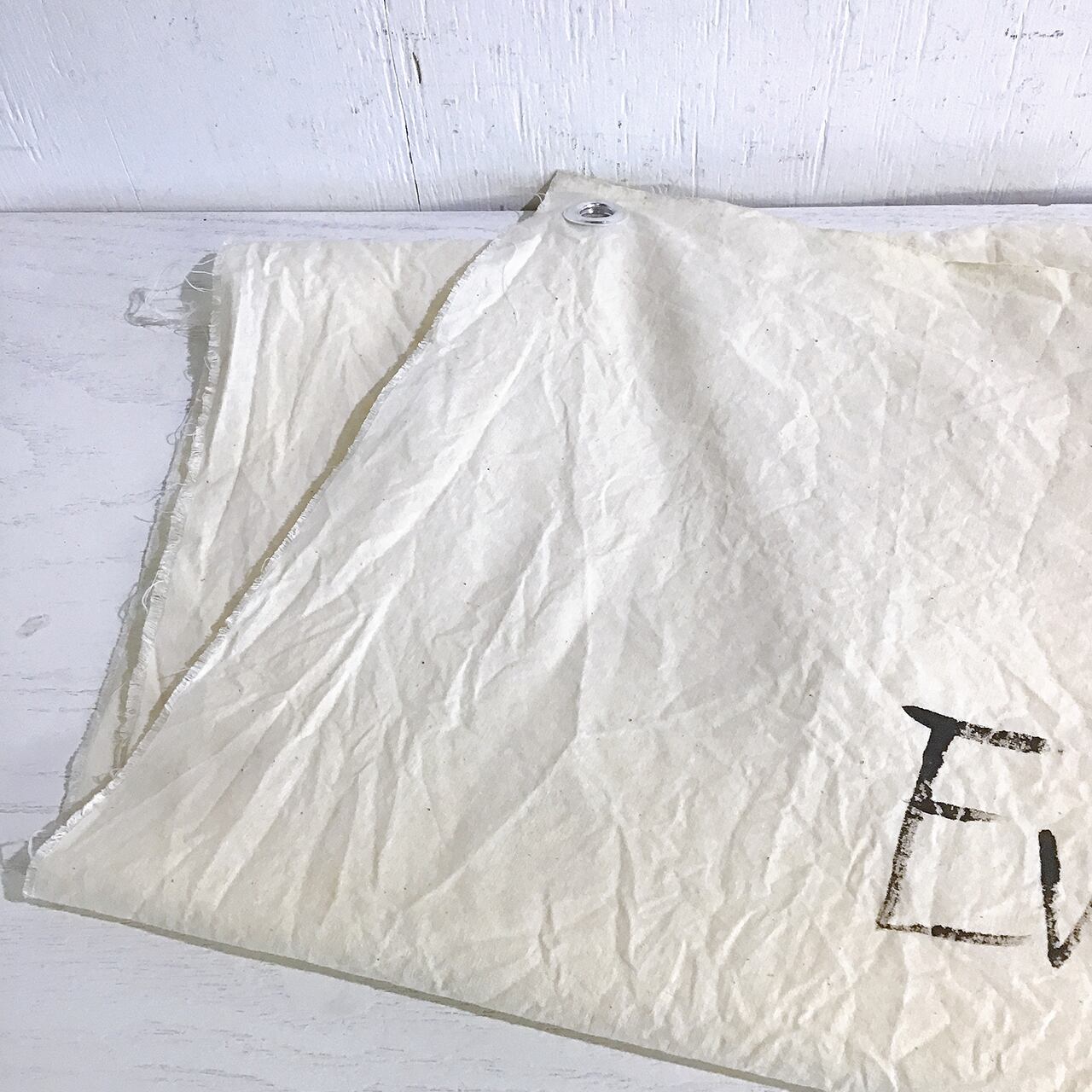 古い晒に手書きで文字を入れたペストリーです♪