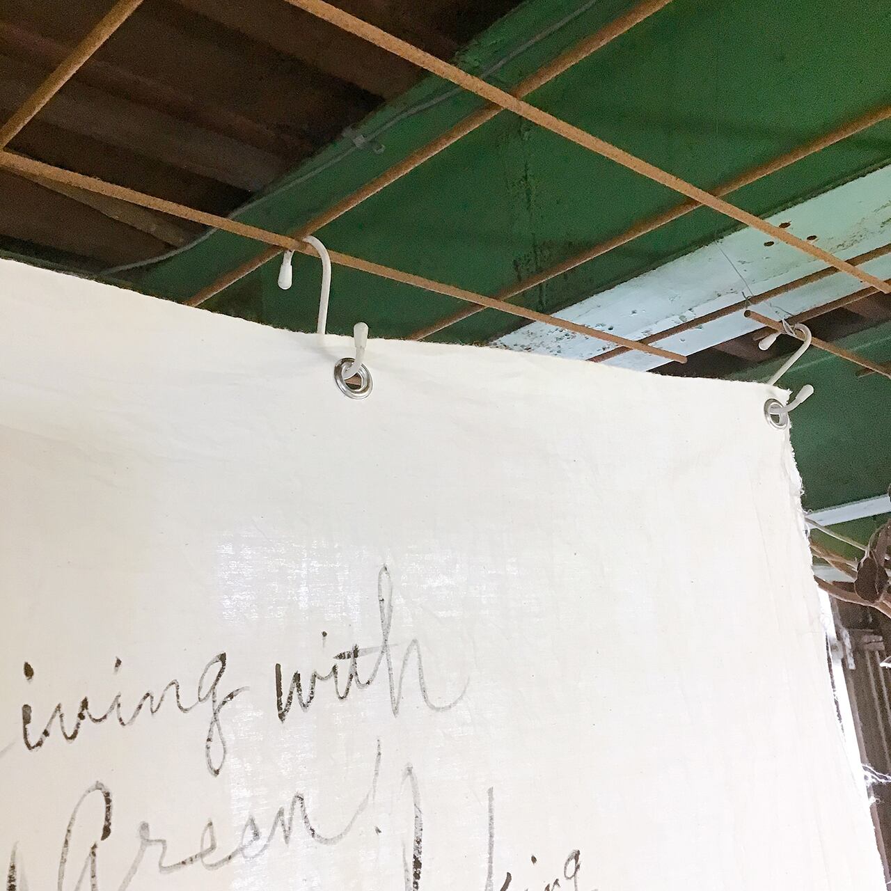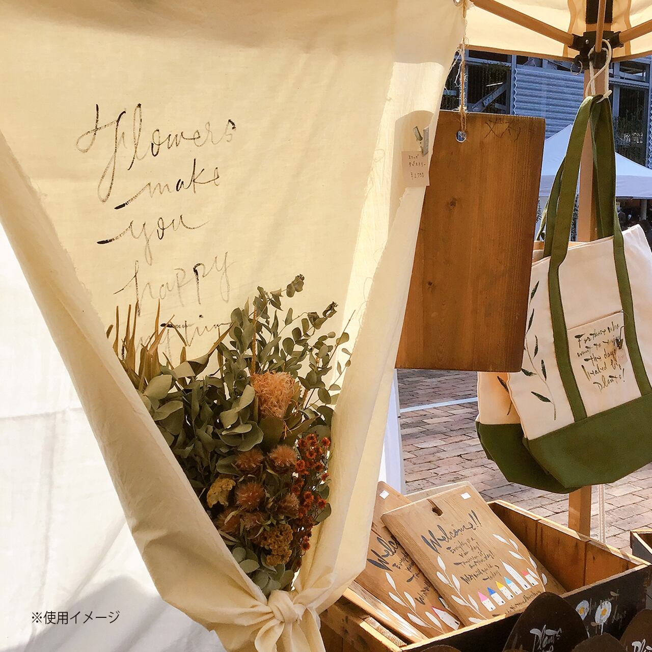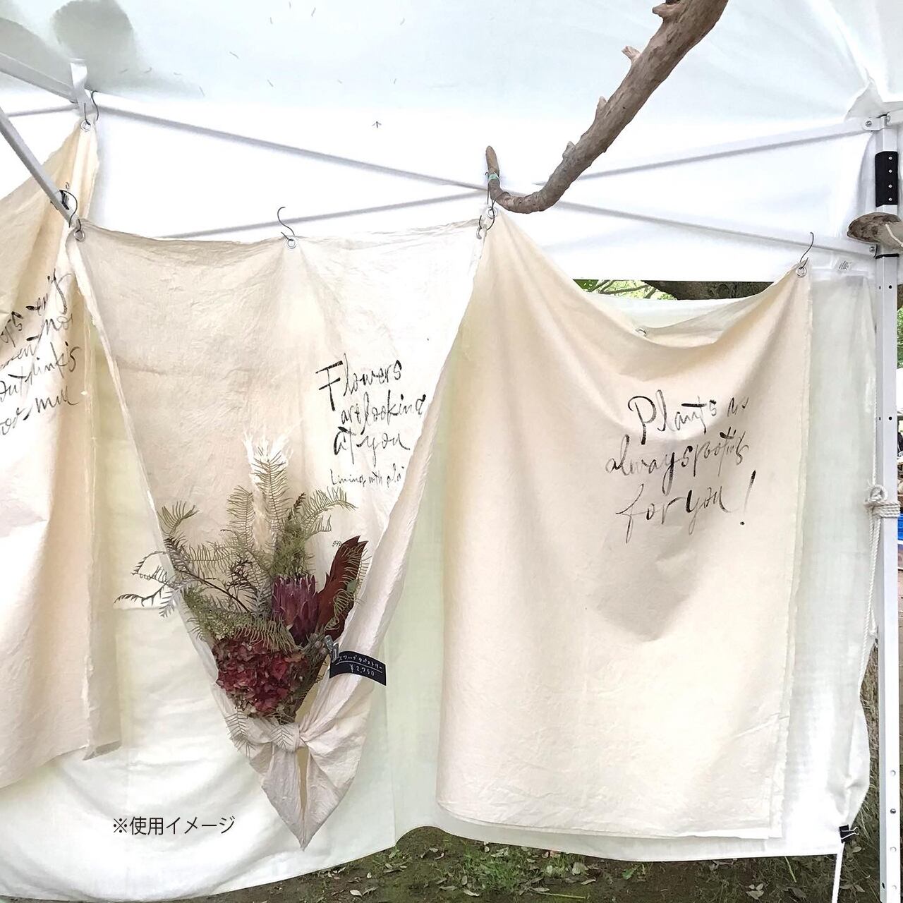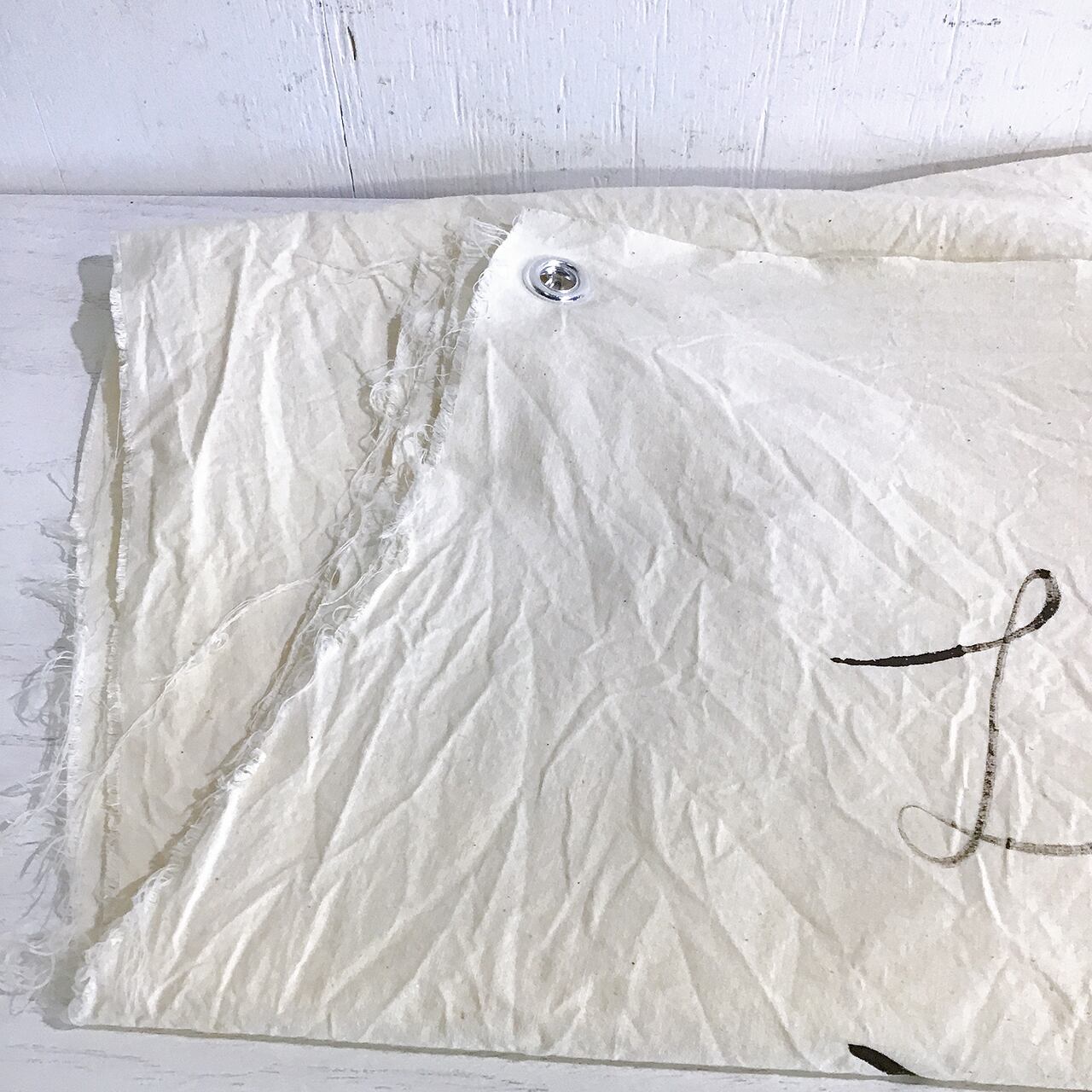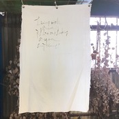 古い晒に手書きで文字を入れたペストリーです♪