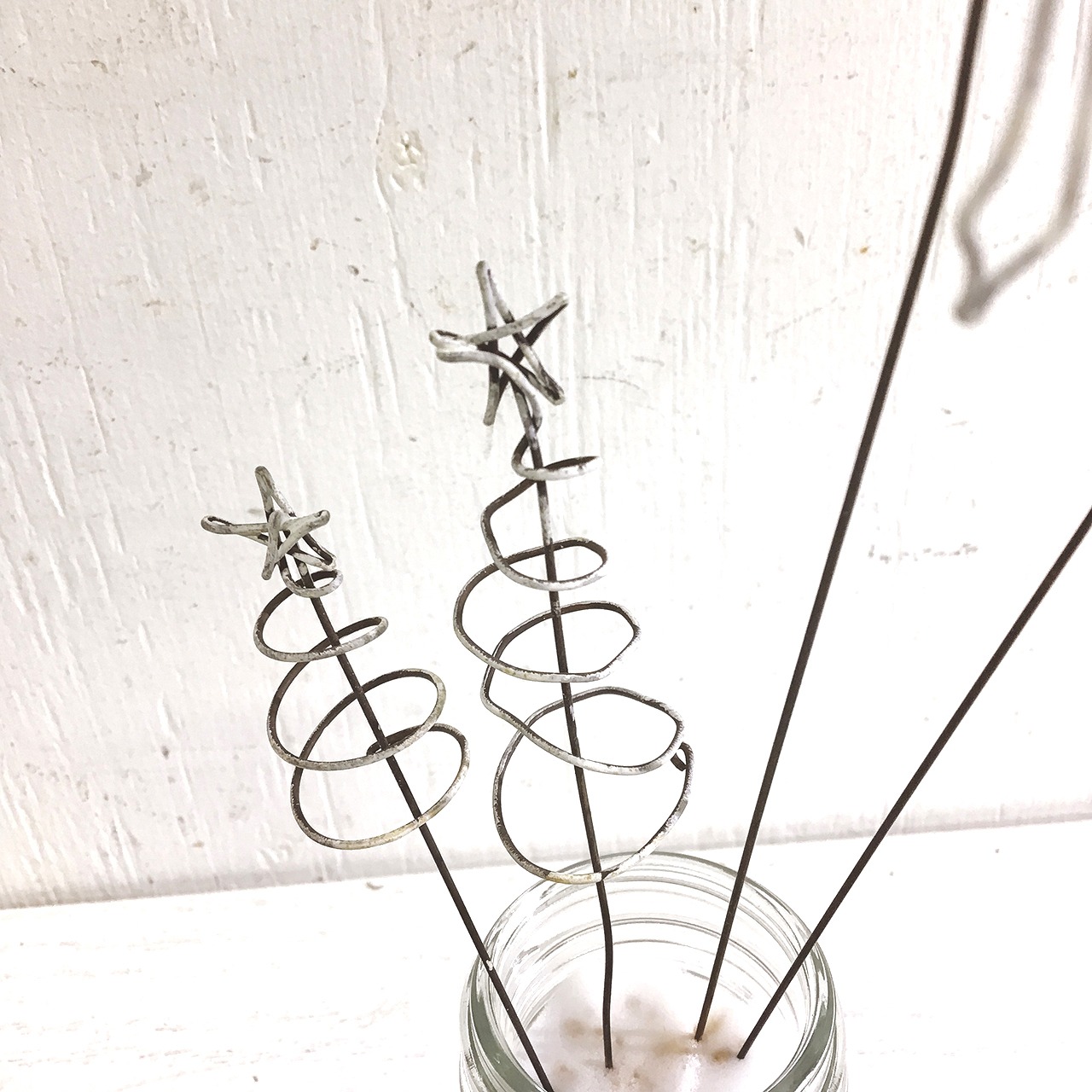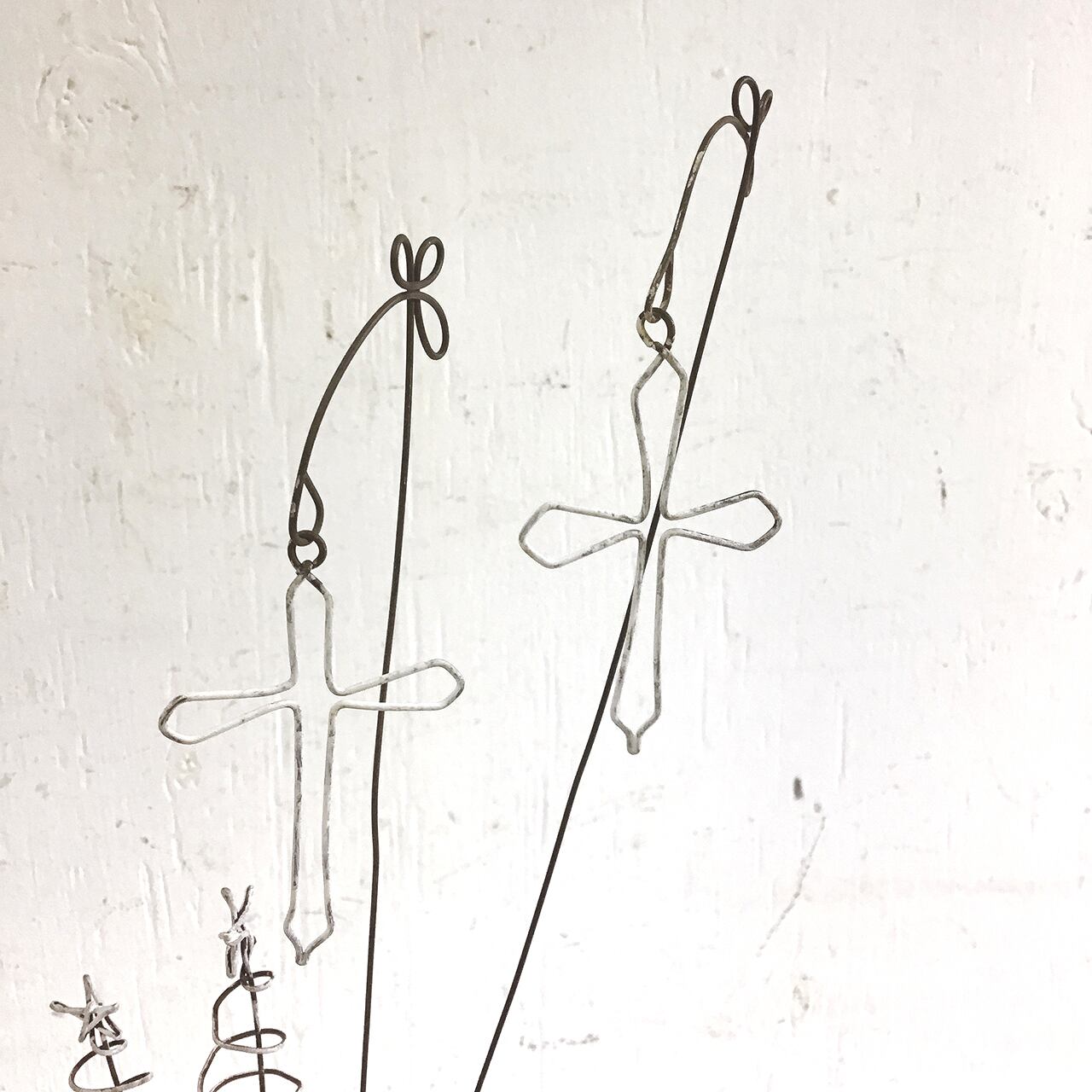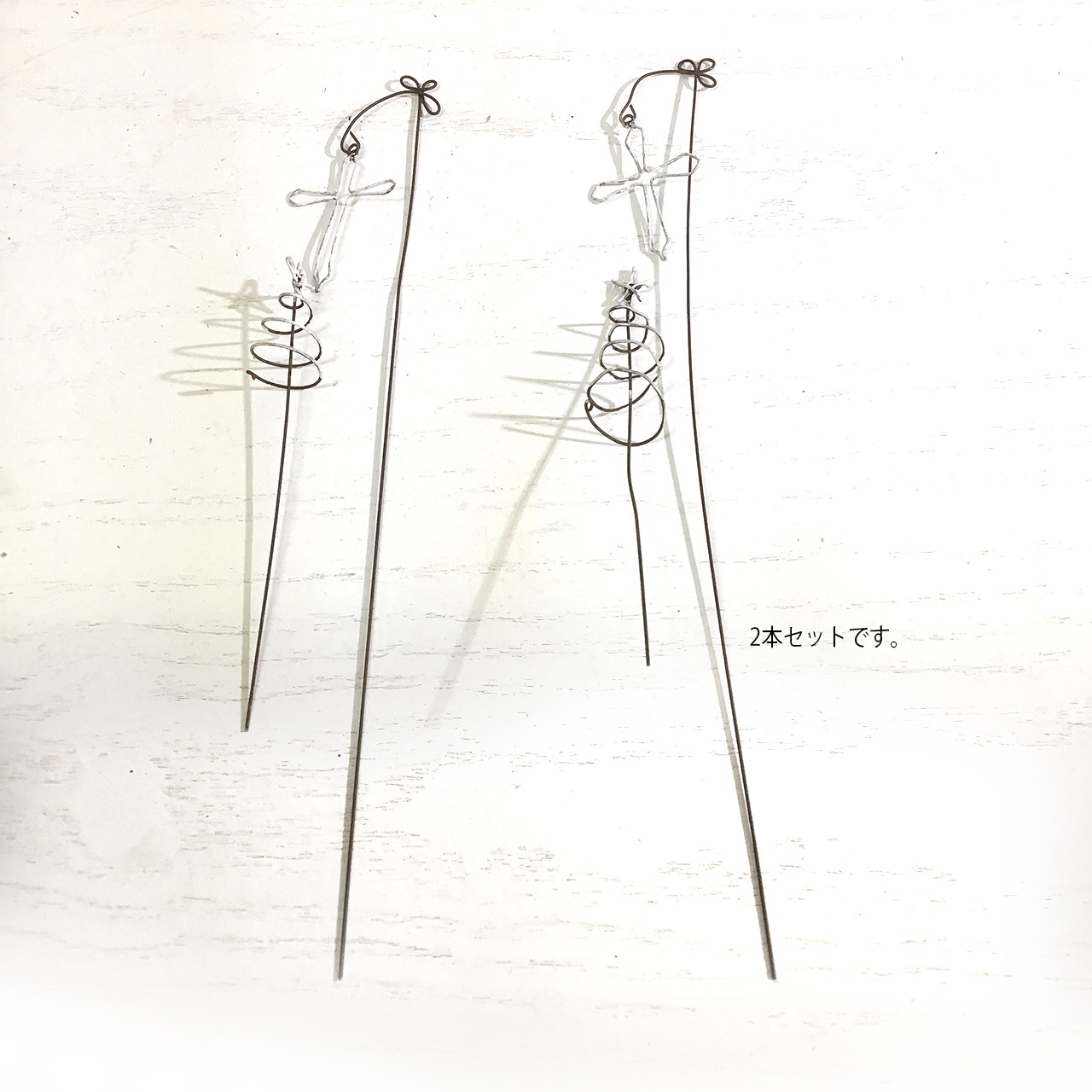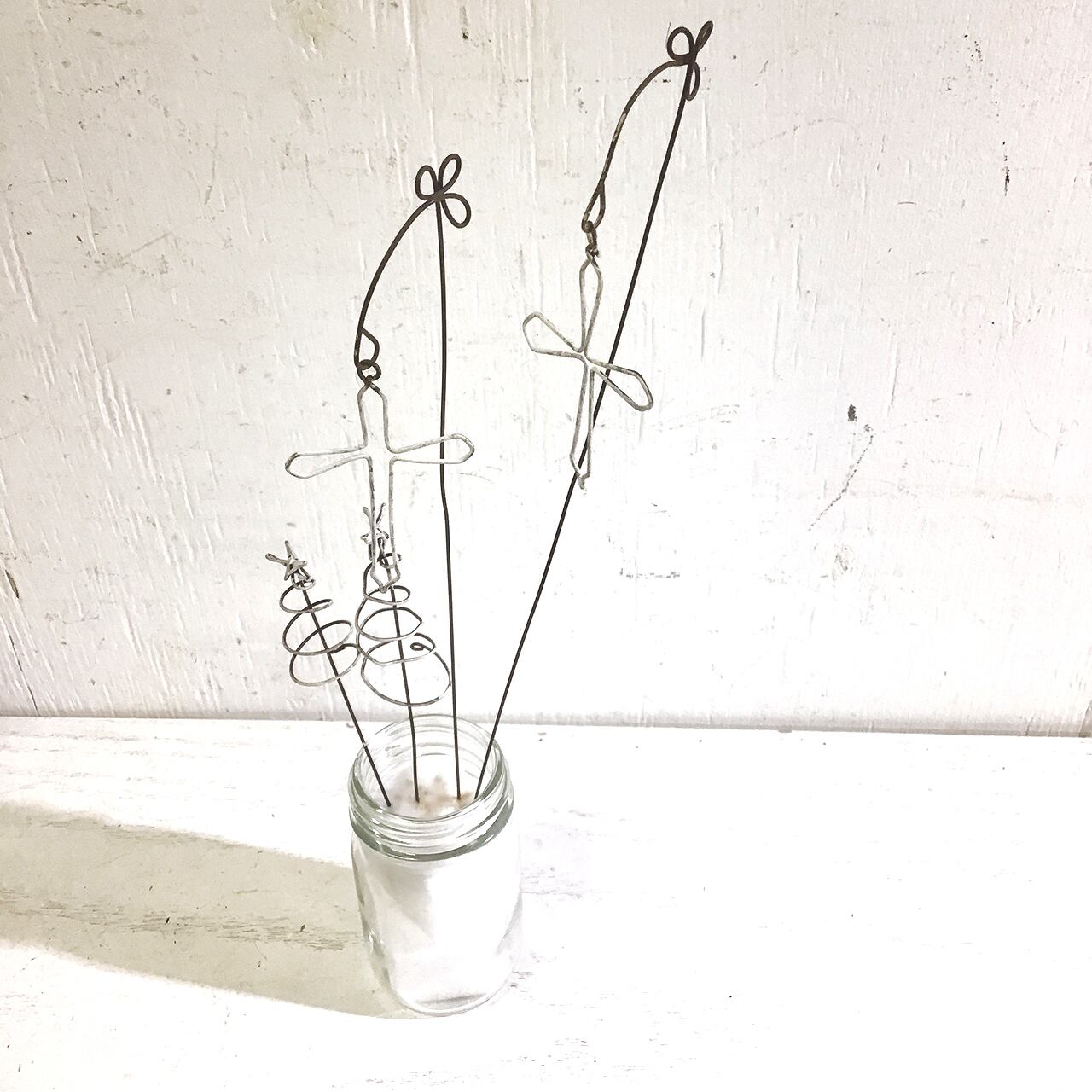 ワイヤーで作ったクロスのピックとツリーのピックを