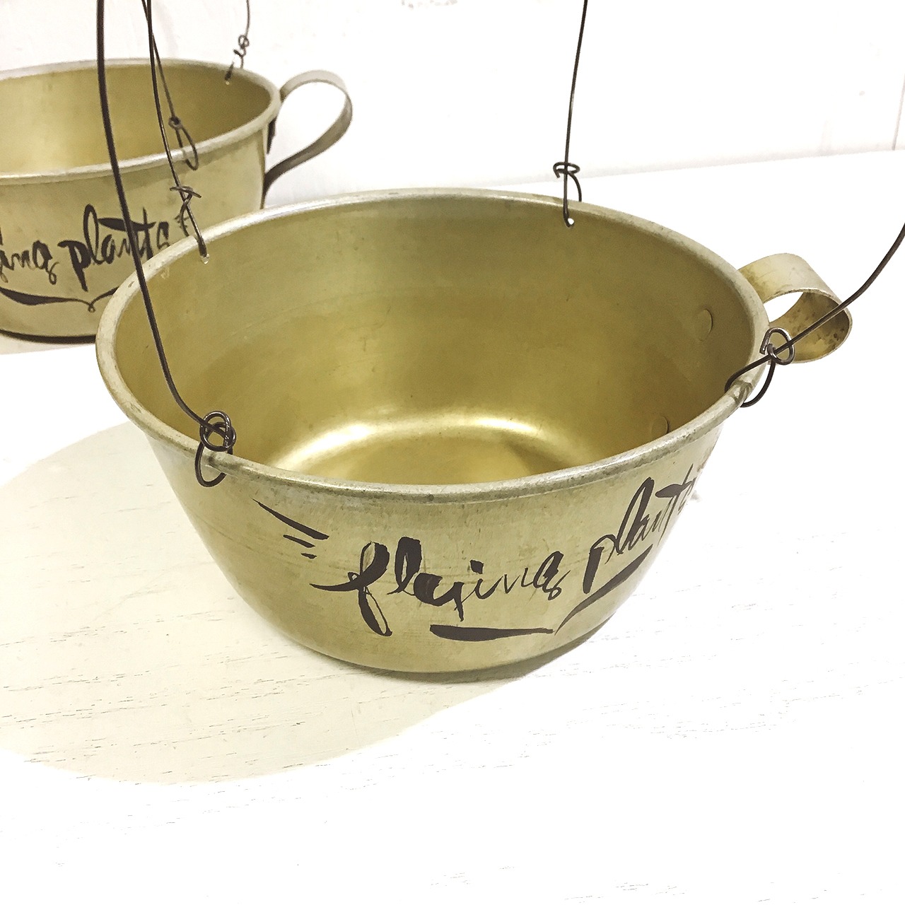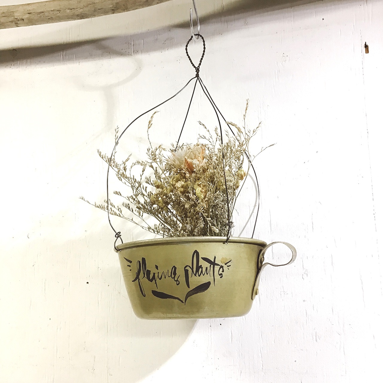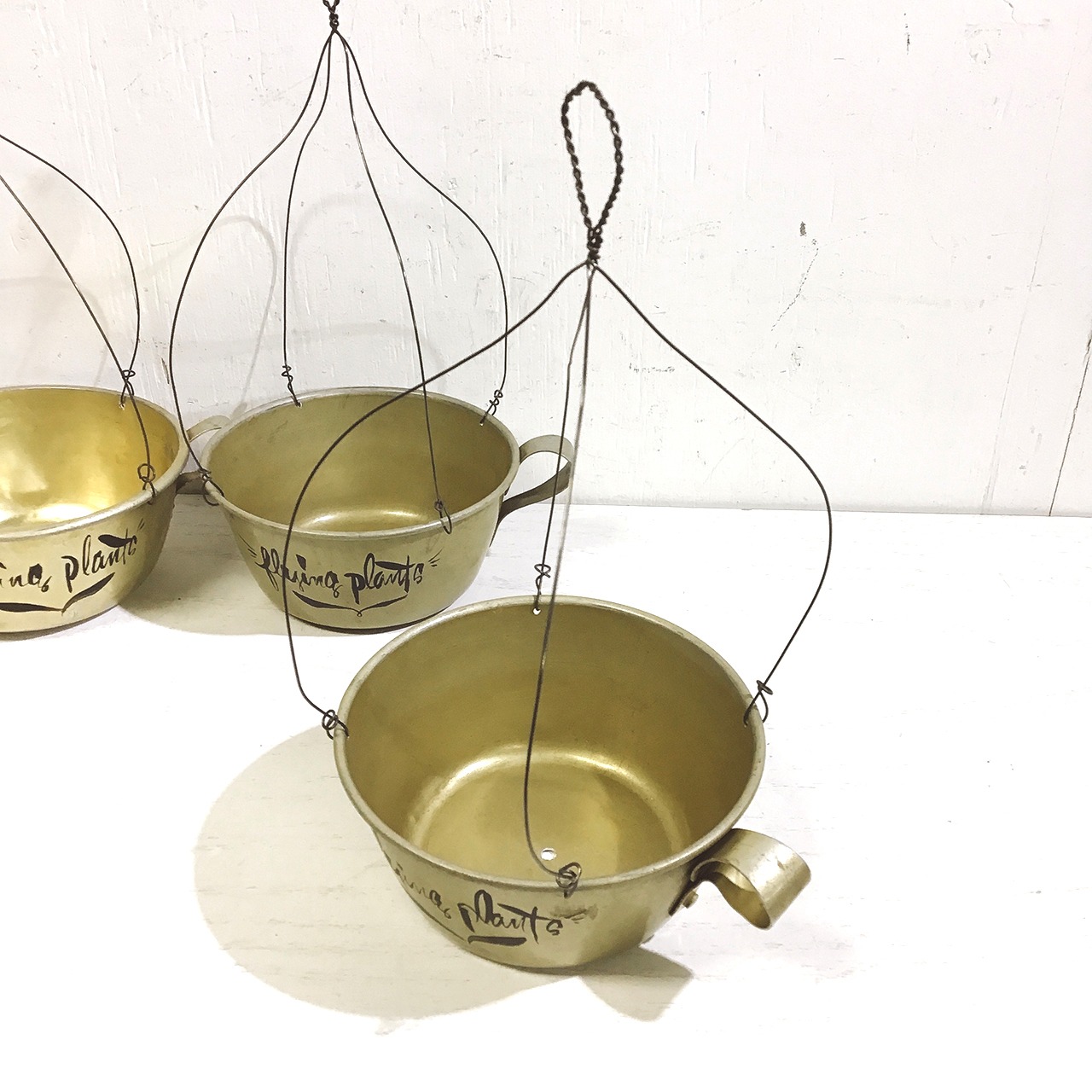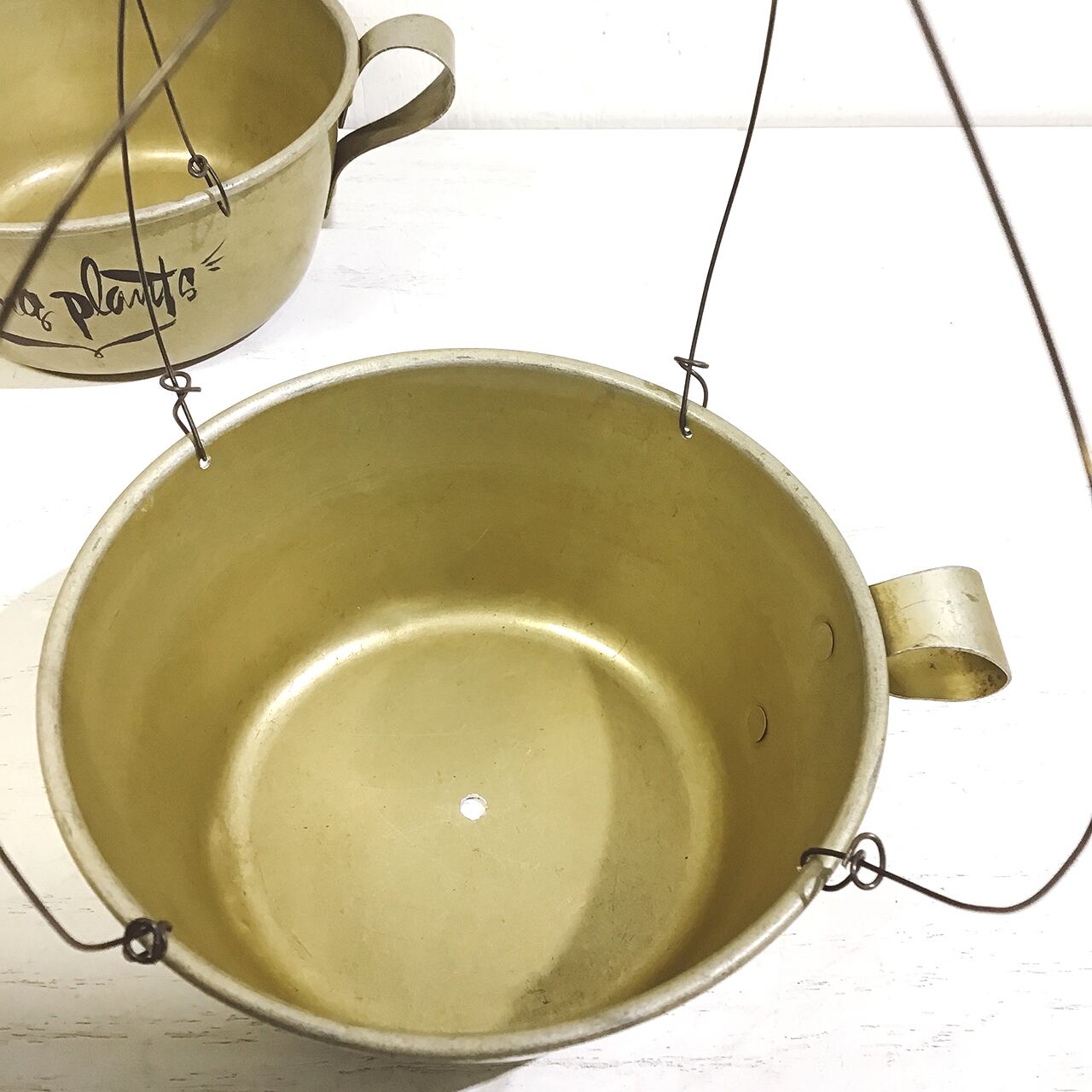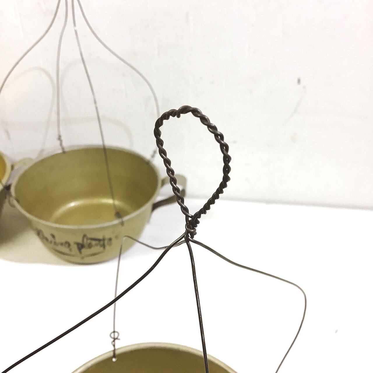 アルマイトのカップにワイヤーを取り付けハンギングプランターに♪