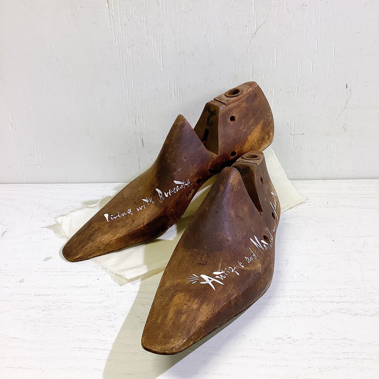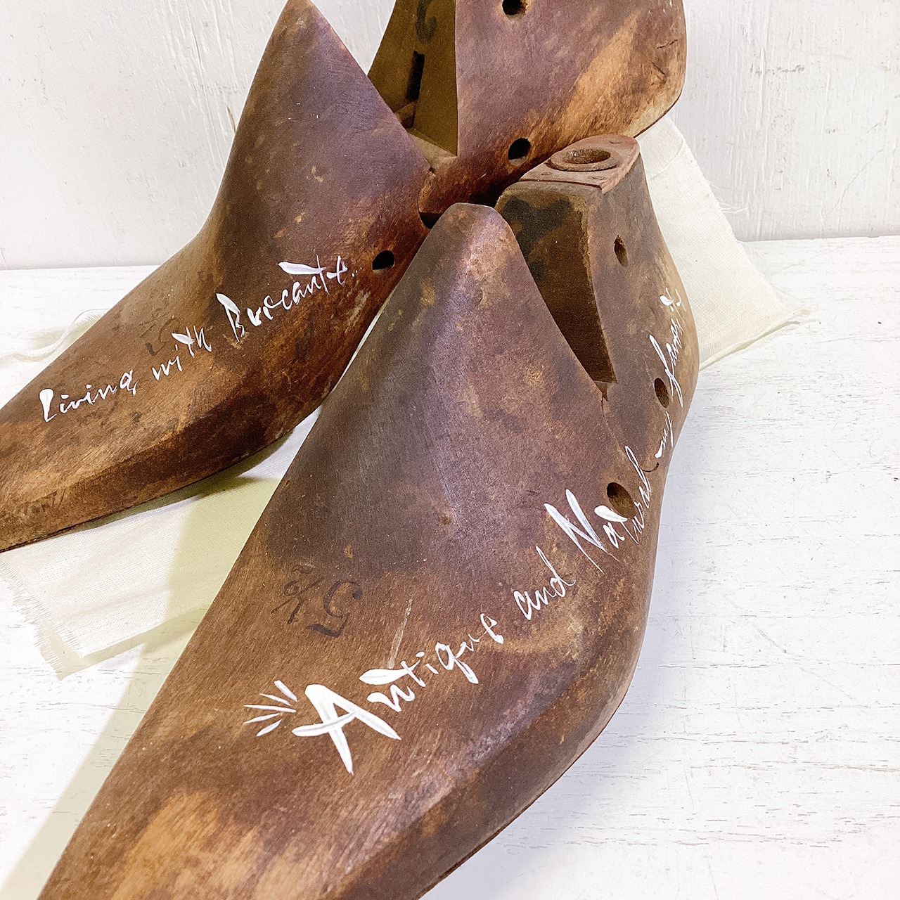 古い木製のシューモールド(靴型)に少し文字を足してアレンジ♪
