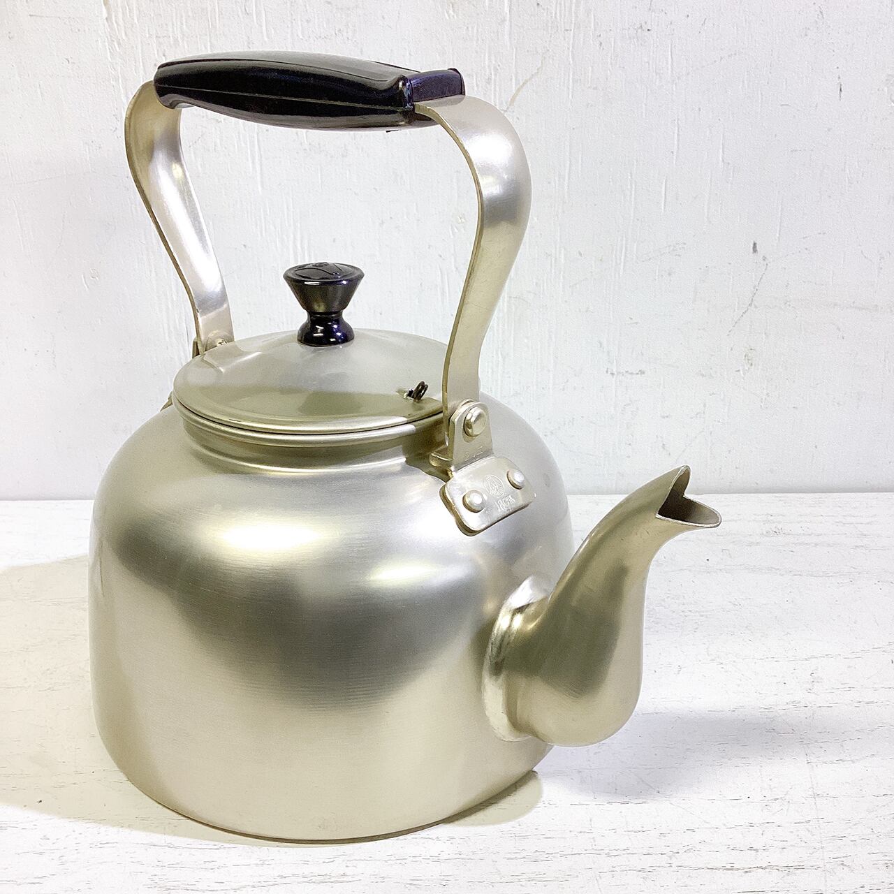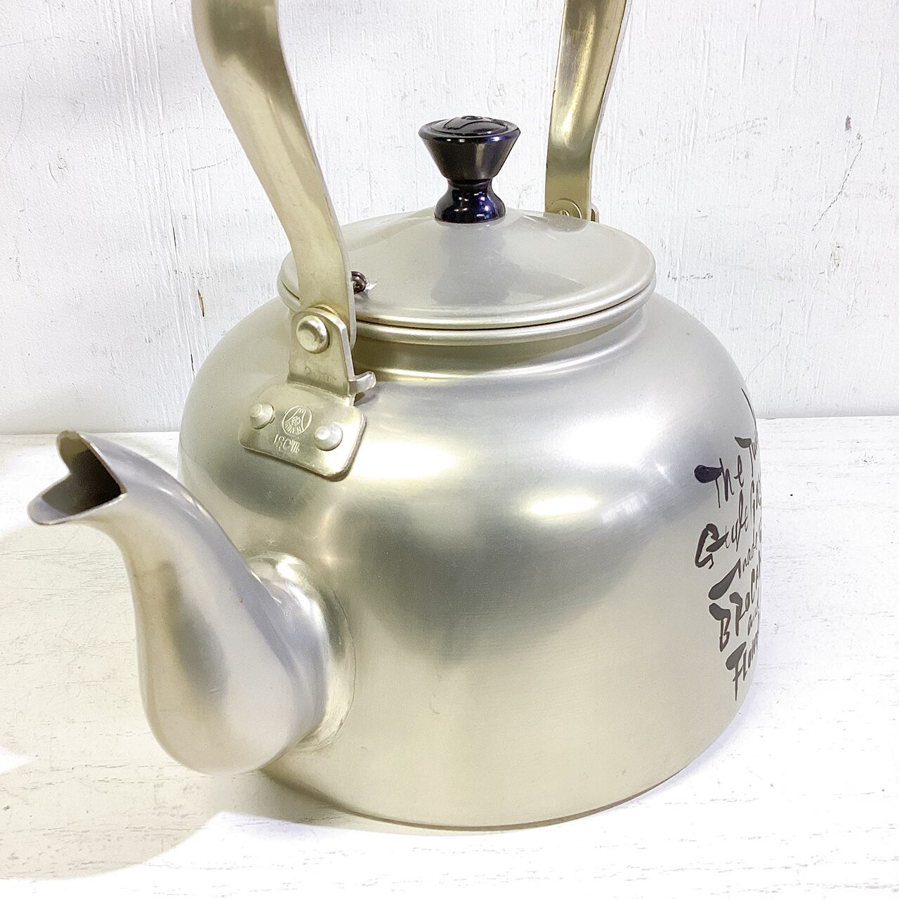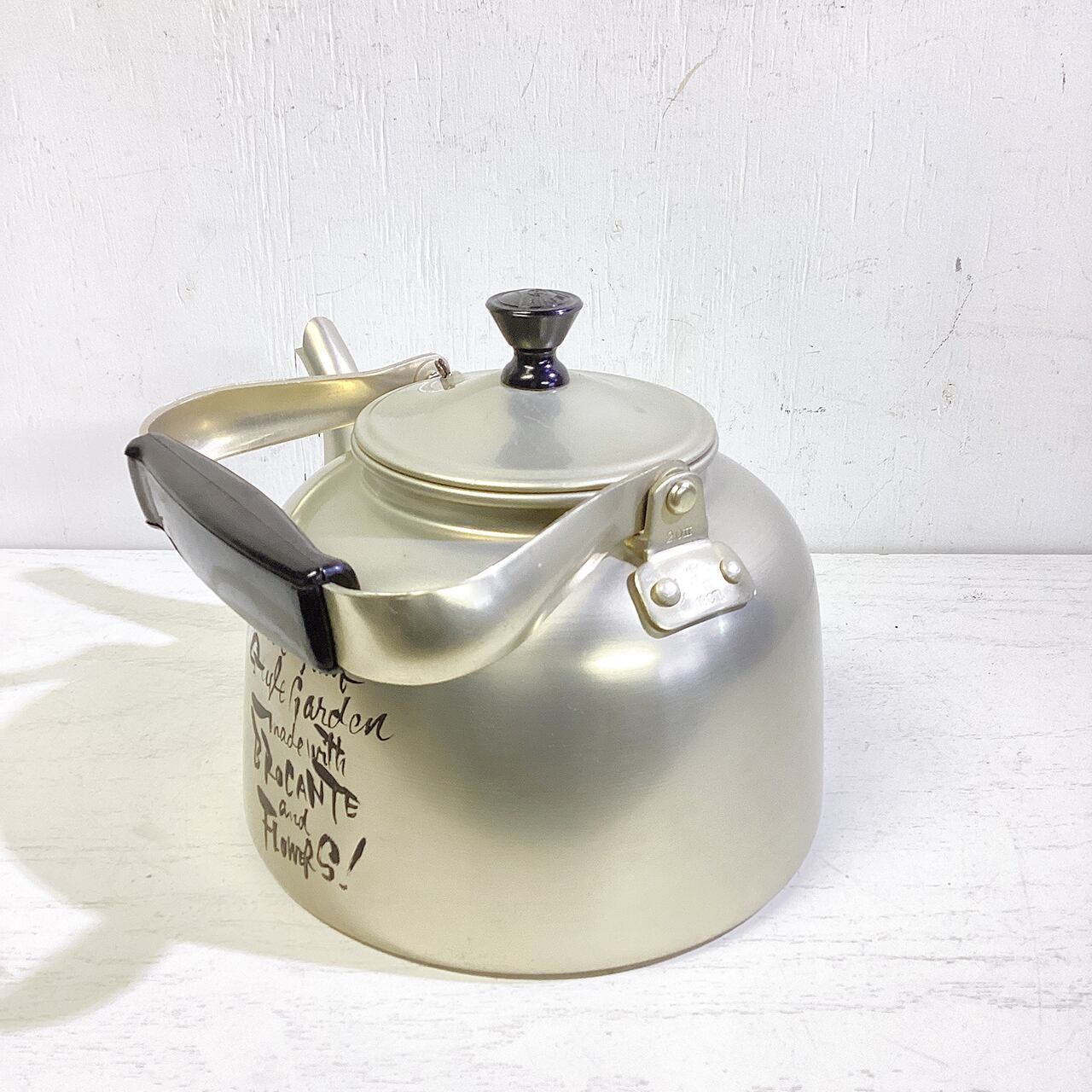 レトロなアルマイトのヤカンに文字を入れたプランターです♪