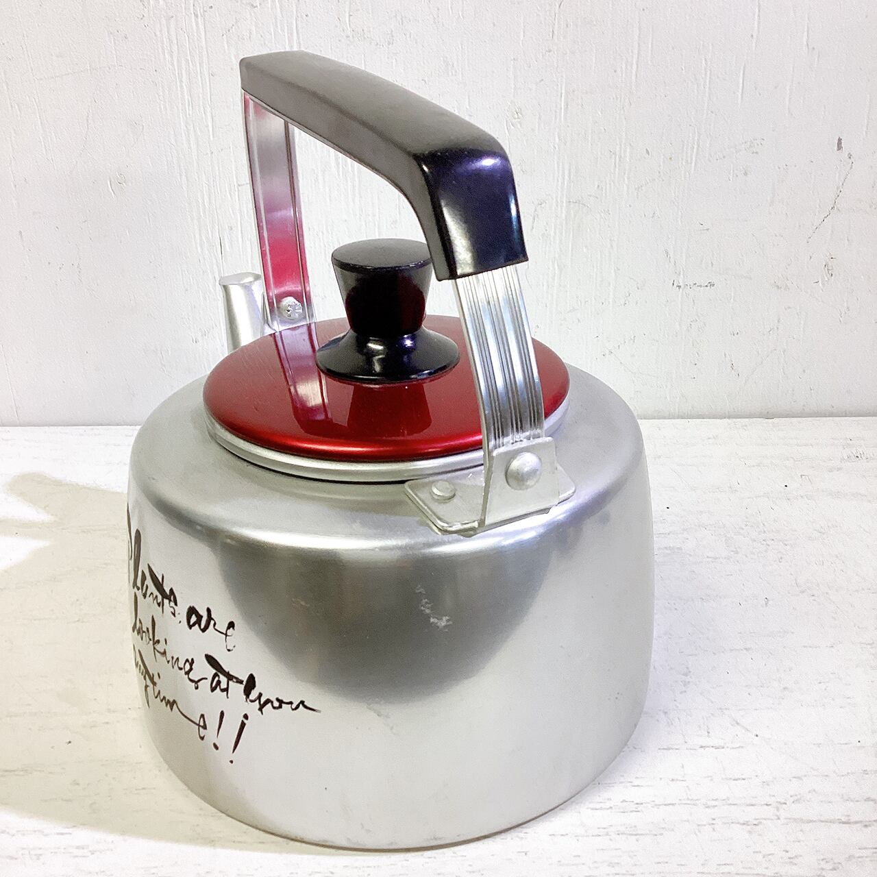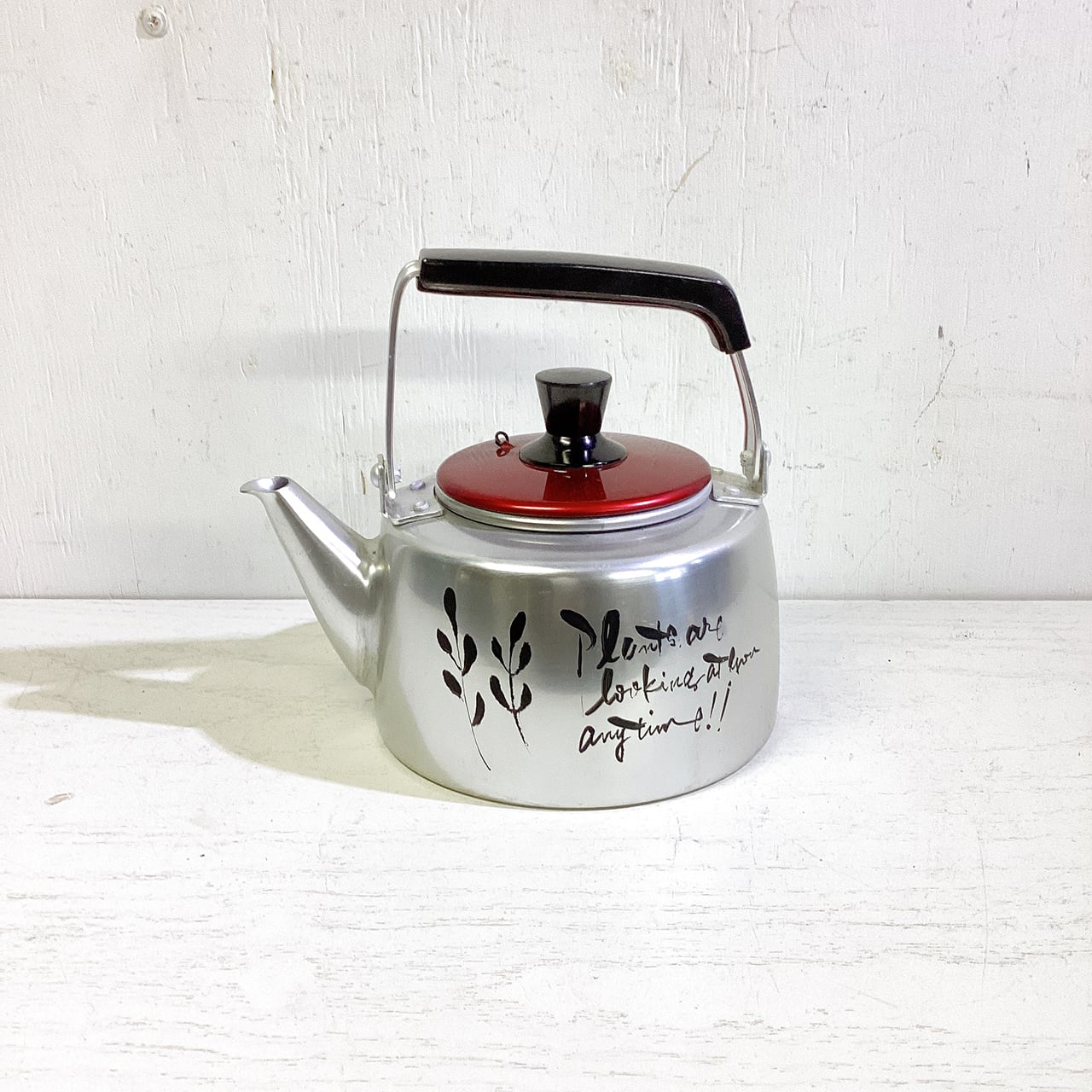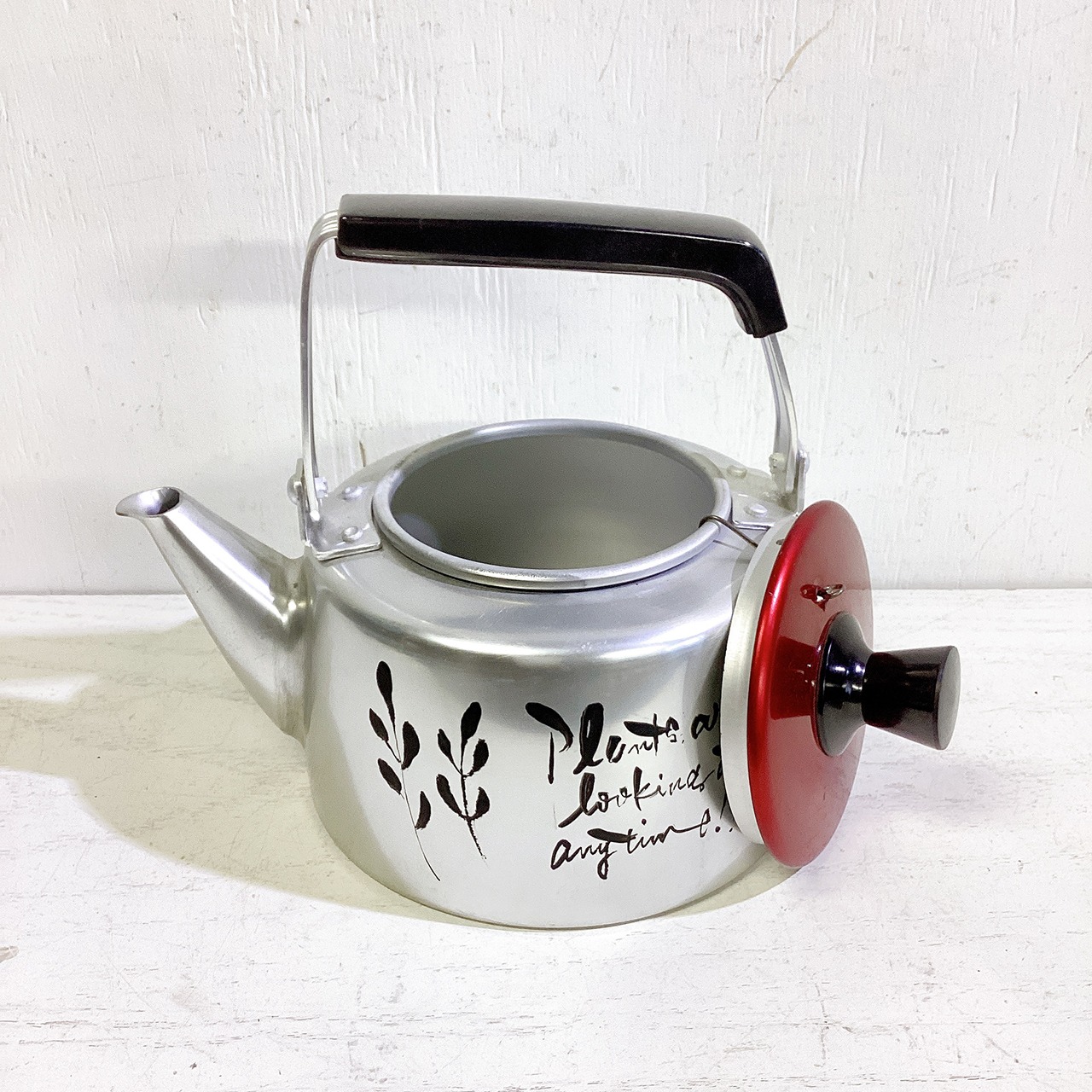 レトロなアルミのヤカンに文字を入れたプランターです♪