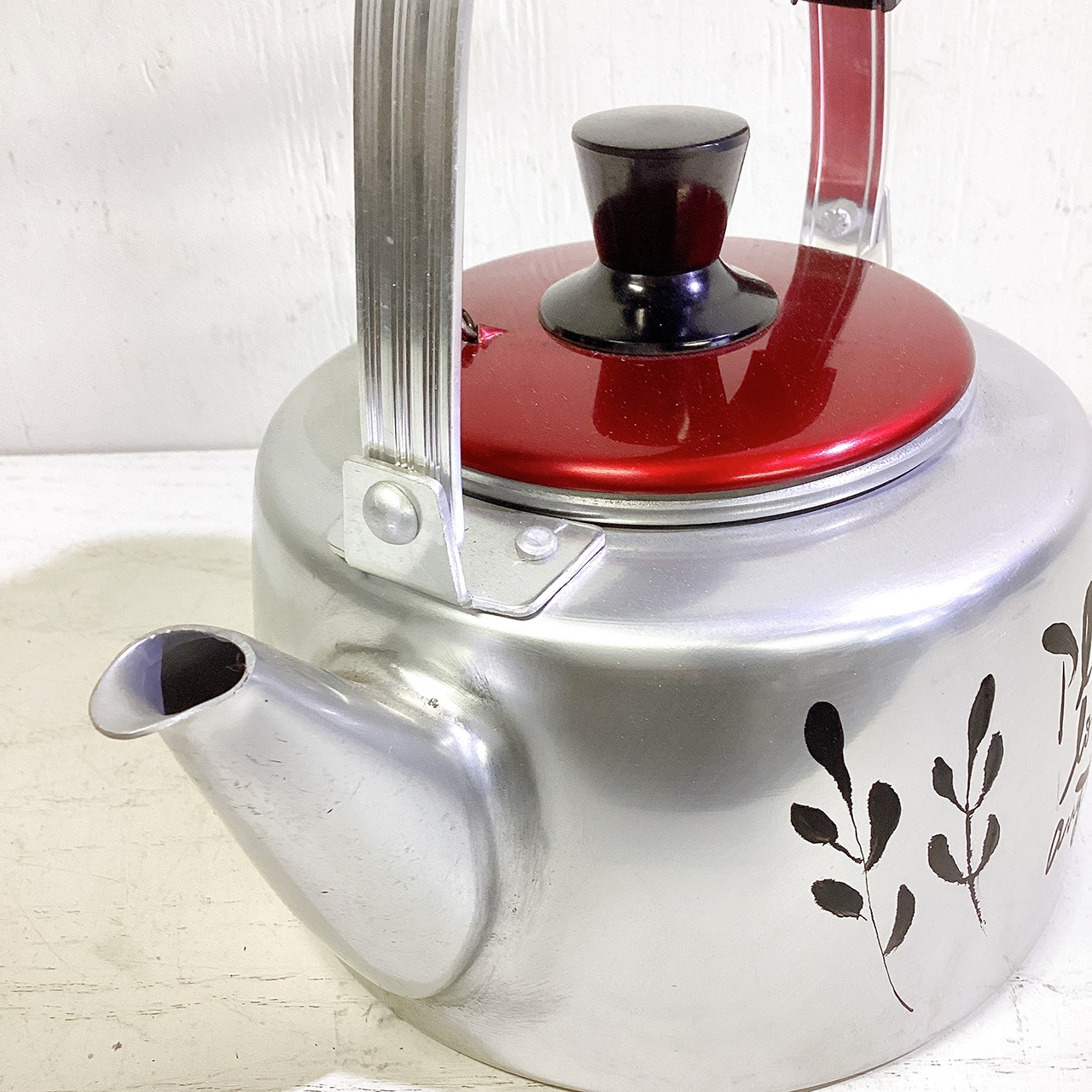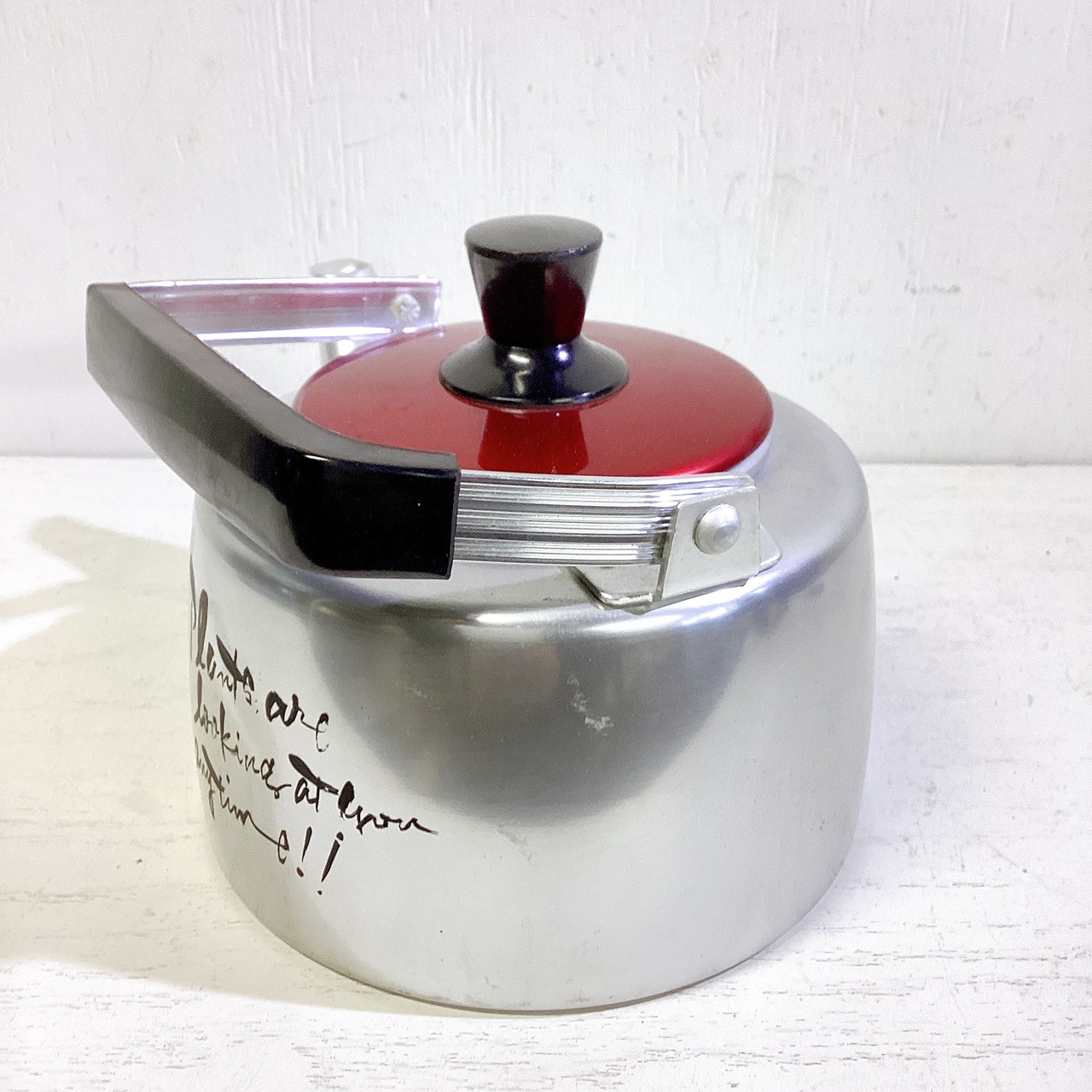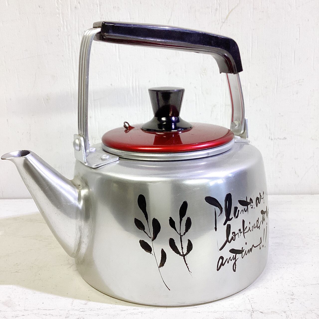 レトロなアルミのヤカンに文字を入れたプランターです♪