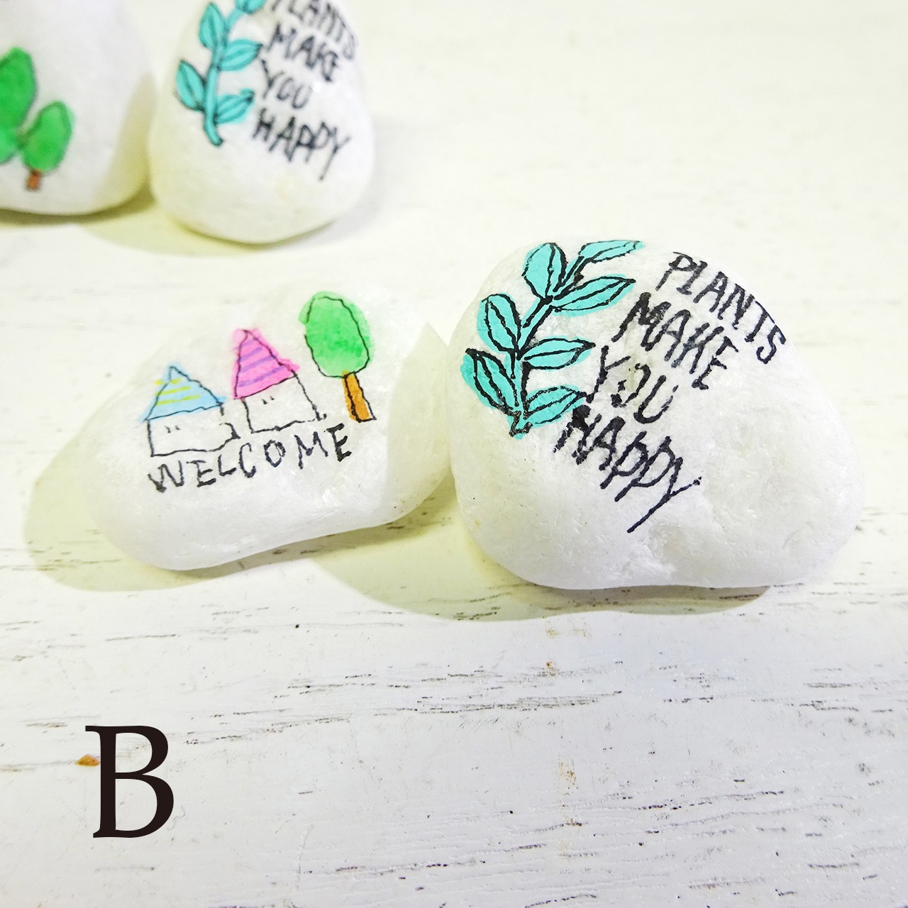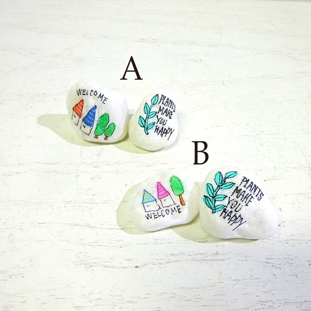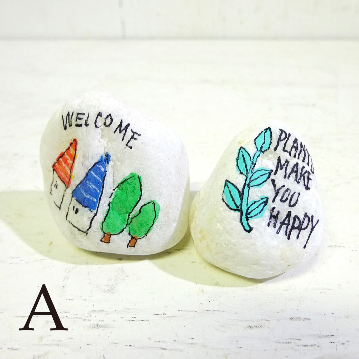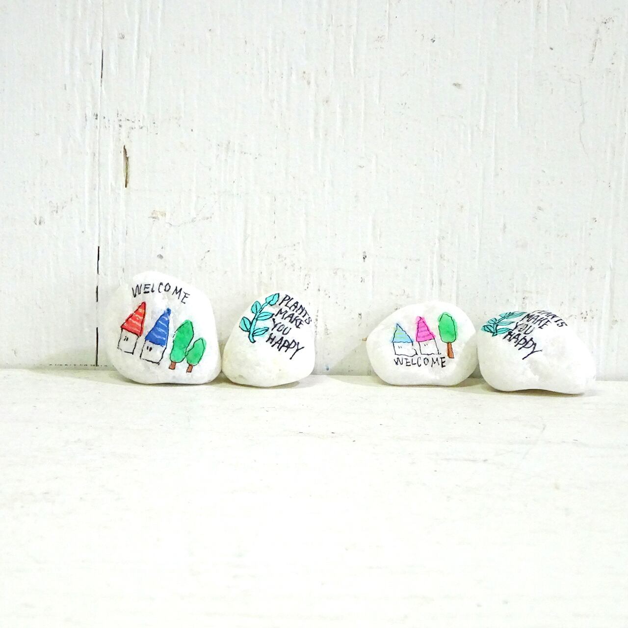 白い「小石」に文字やイラストを描いたものを2個セットで♪
