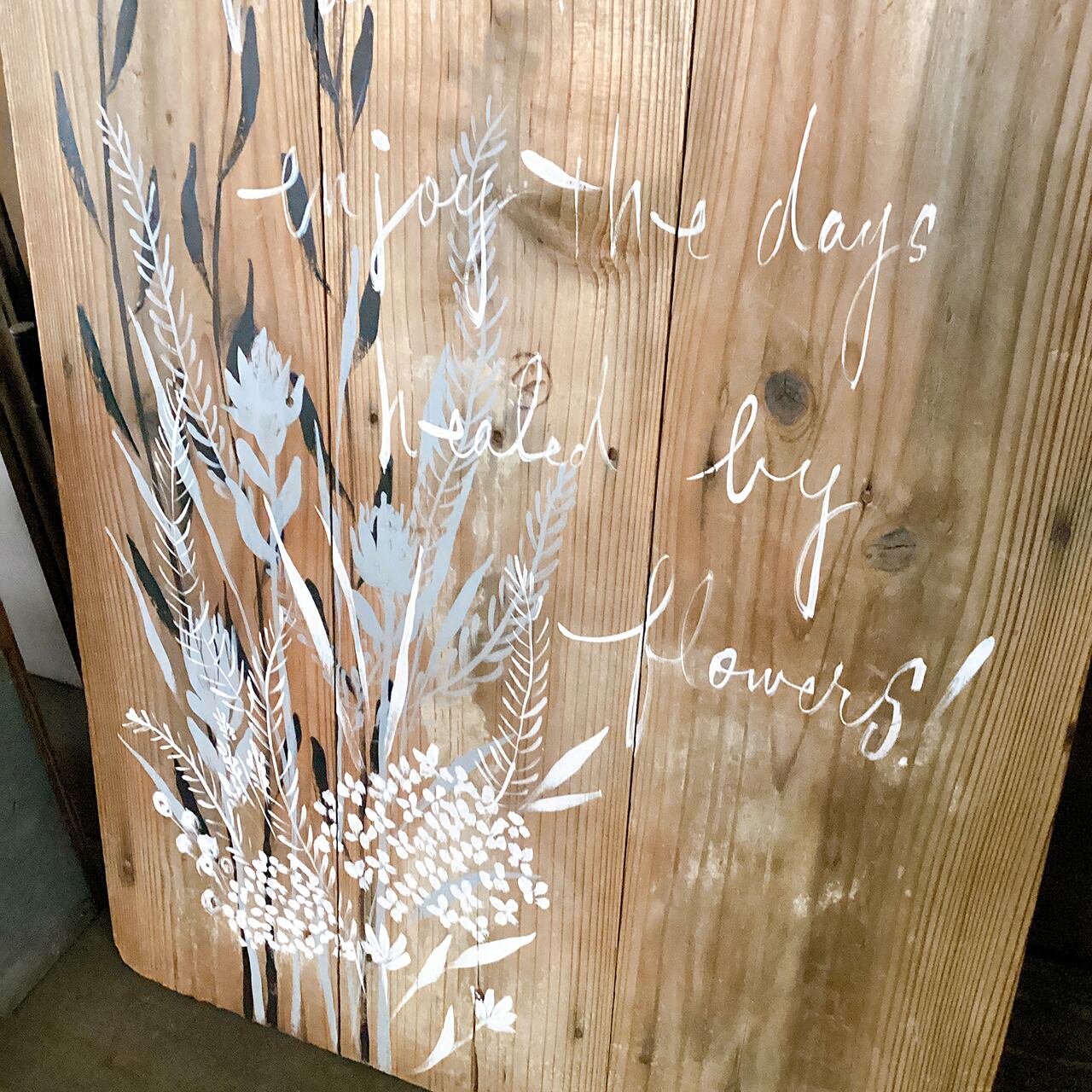 木製の台(作陶台)にペイントしたイラストパネルです♪