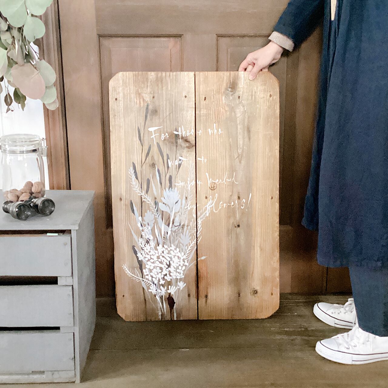 木製の台(作陶台)にペイントしたイラストパネルです♪