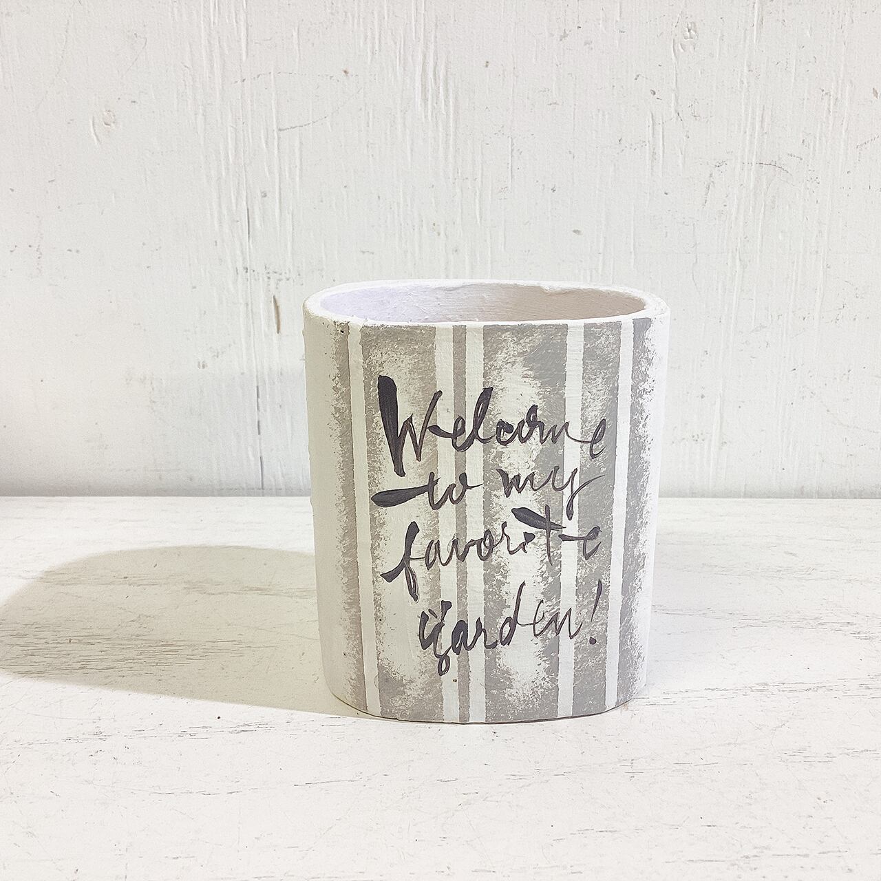 デッドストックの四角鉢をストライプ柄にペイント♪