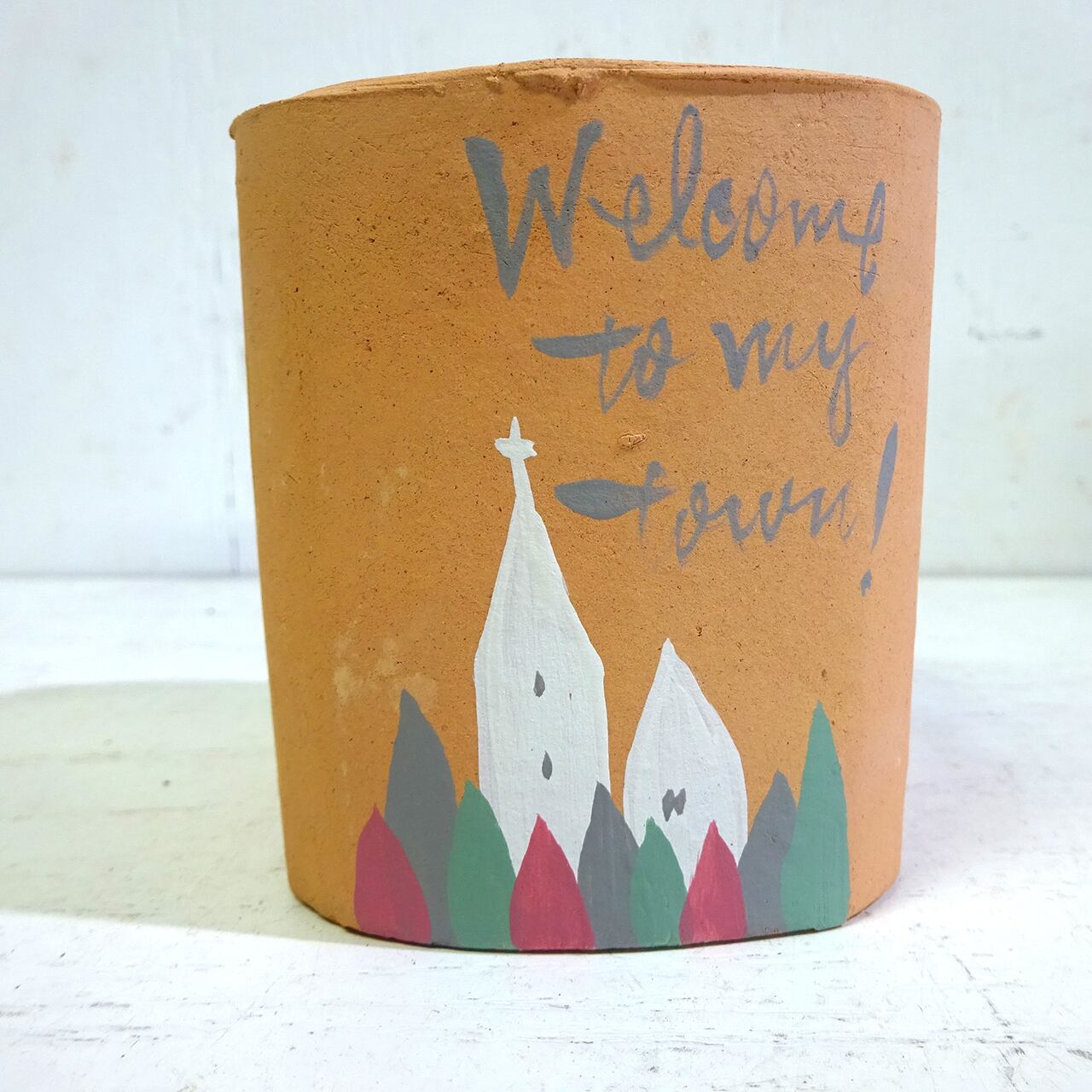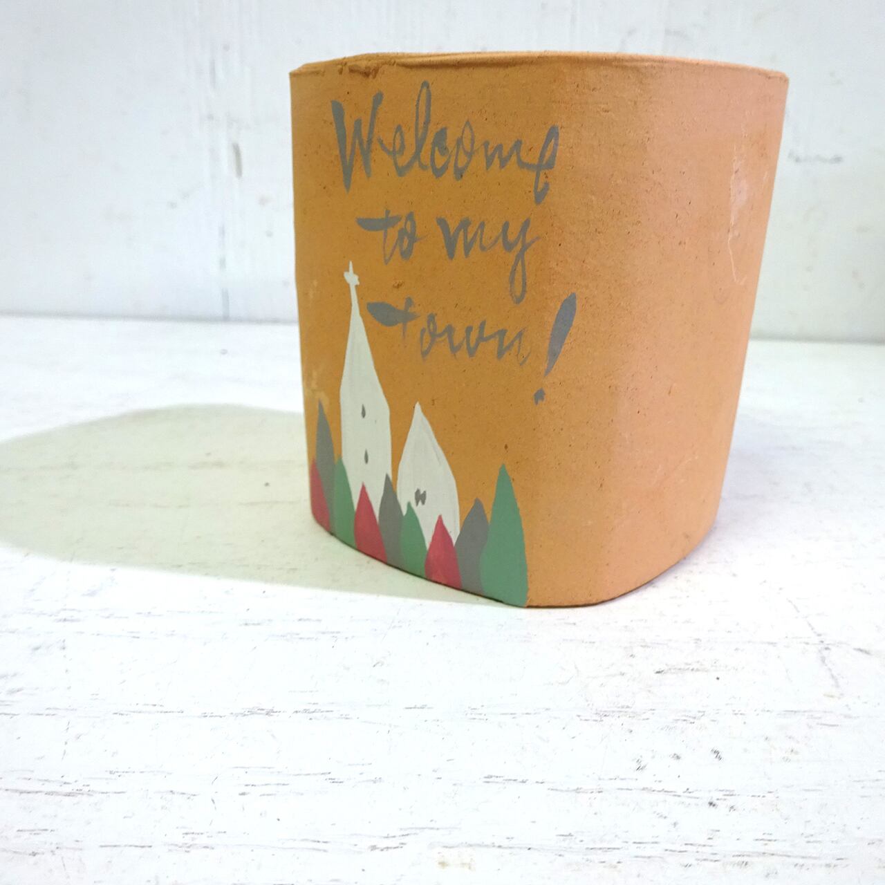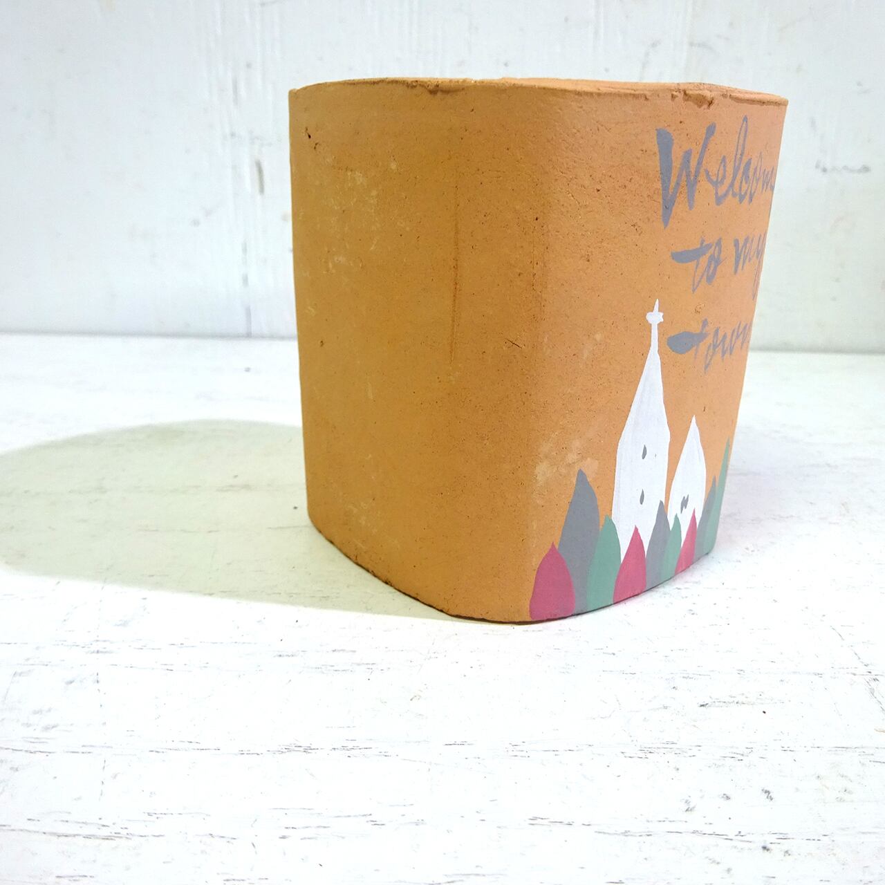 デッドストックの四角鉢の素焼き部分を活かしたデザインのイラストを♪