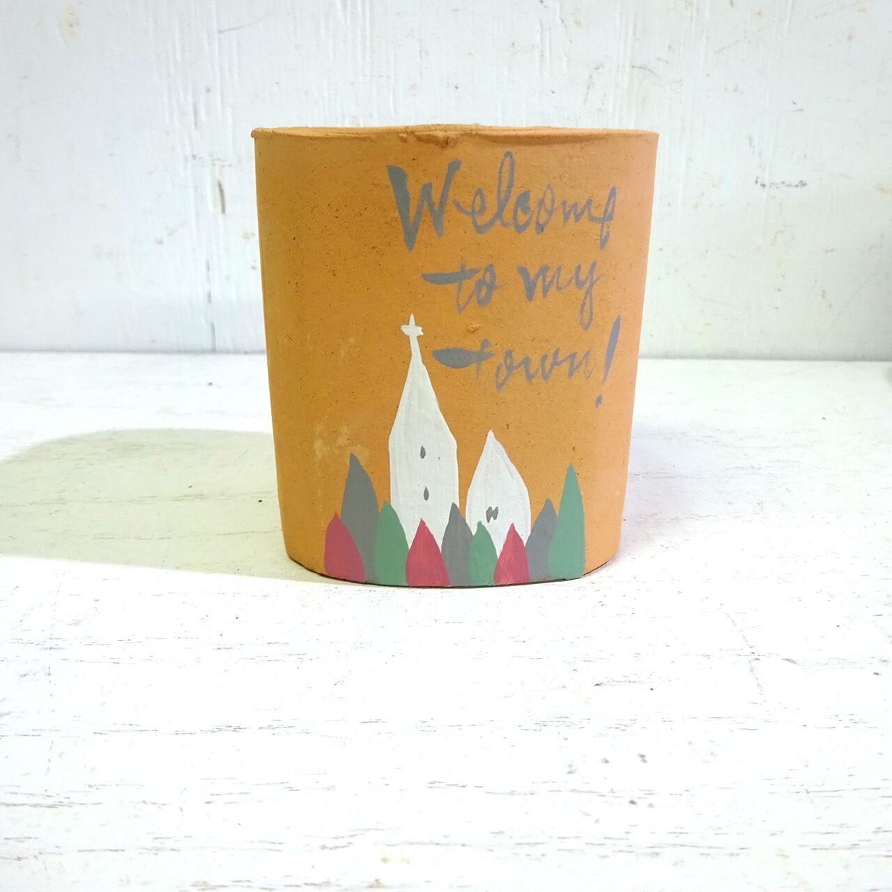 【リメイク鉢】四角2.5号 教会の森イラスト
