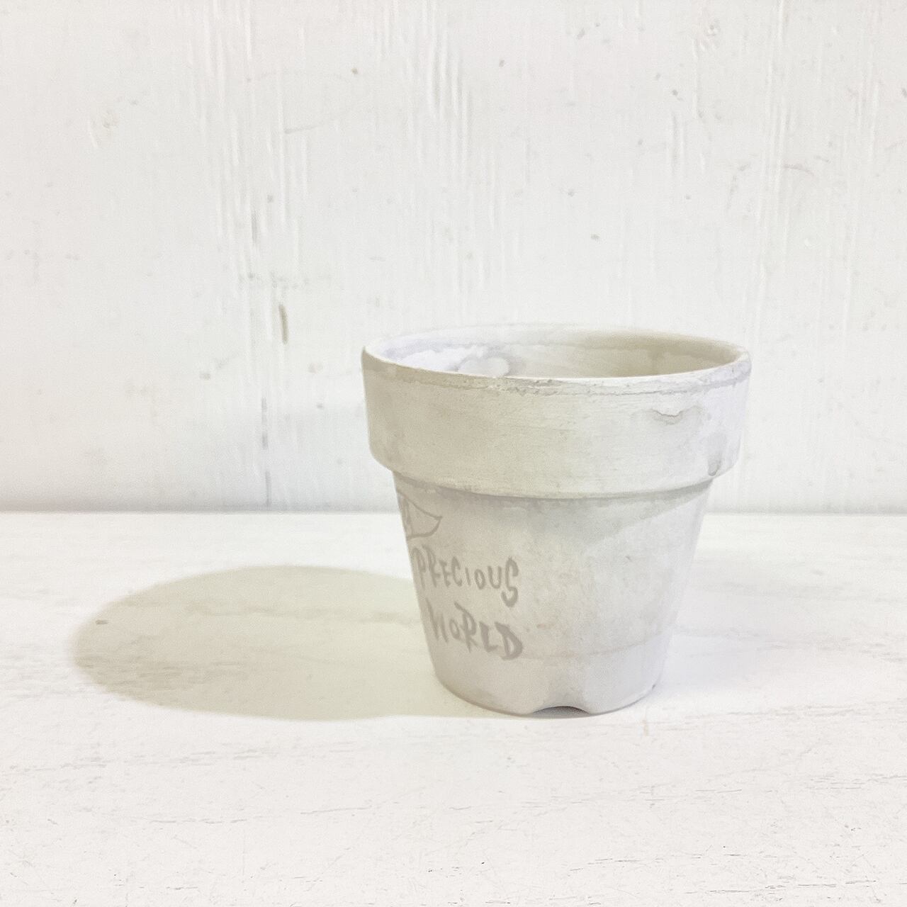 【リメイク鉢】2.5号丸鉢 アンティーク風ペイント WH