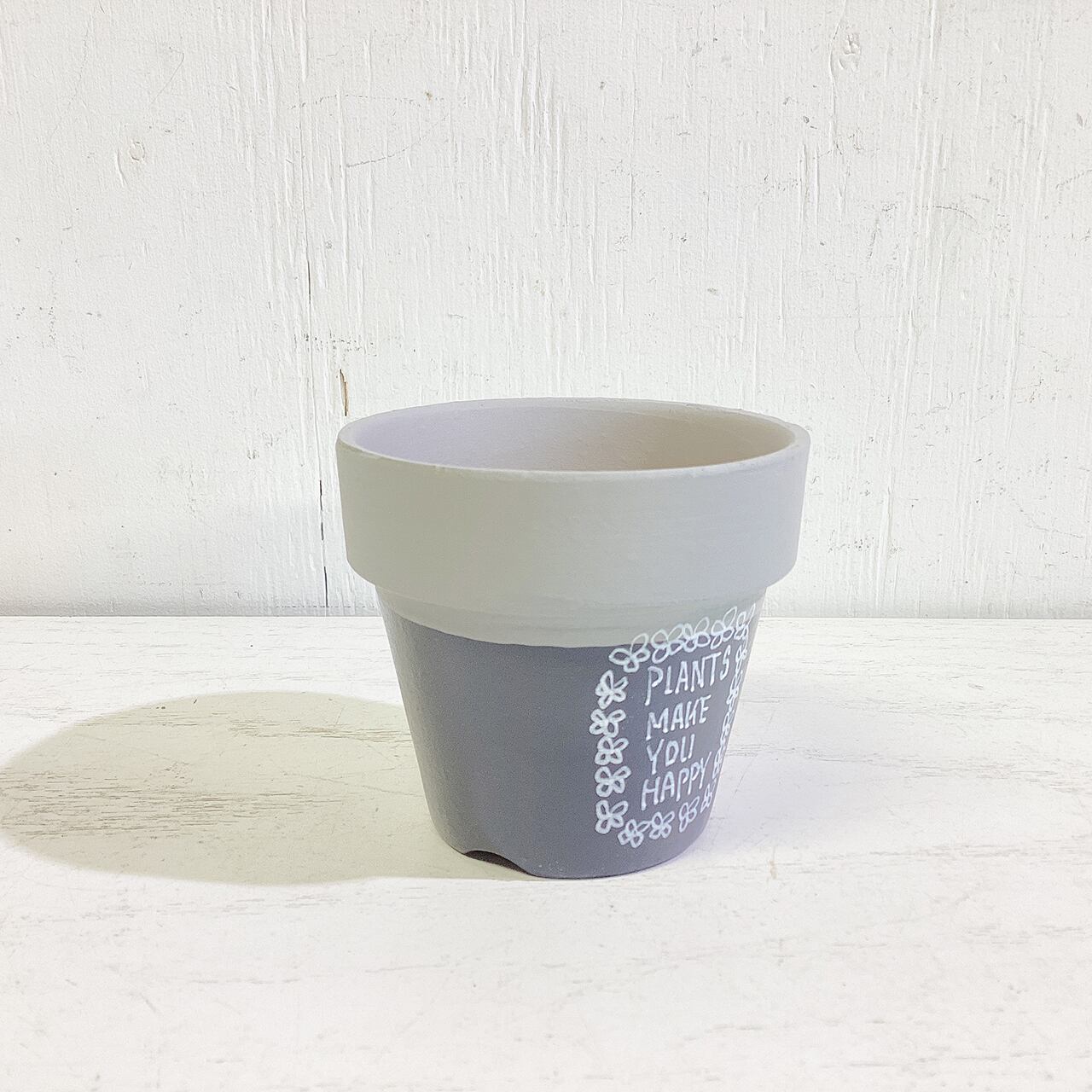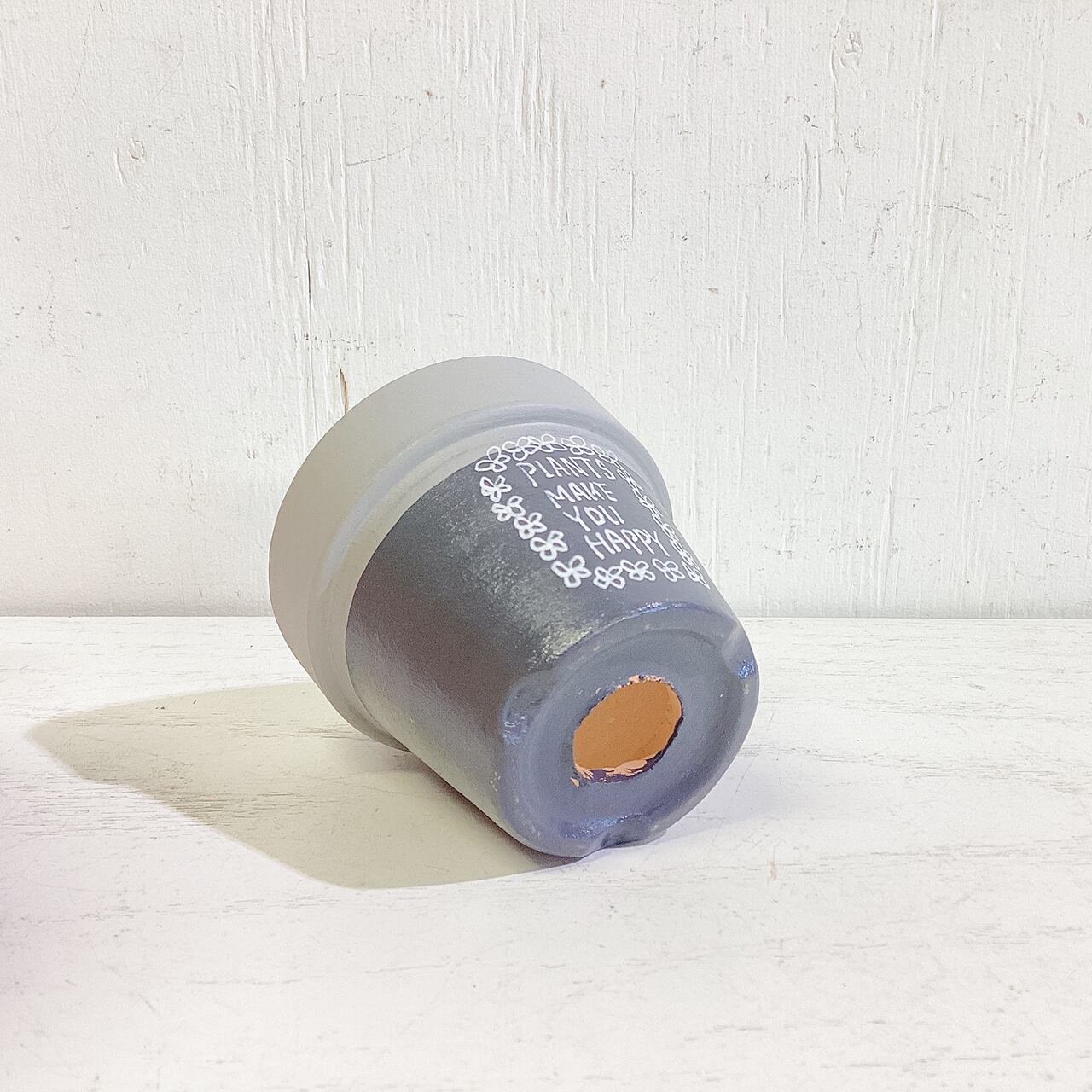 【リメイク鉢】2.5号丸鉢 白花ペイント