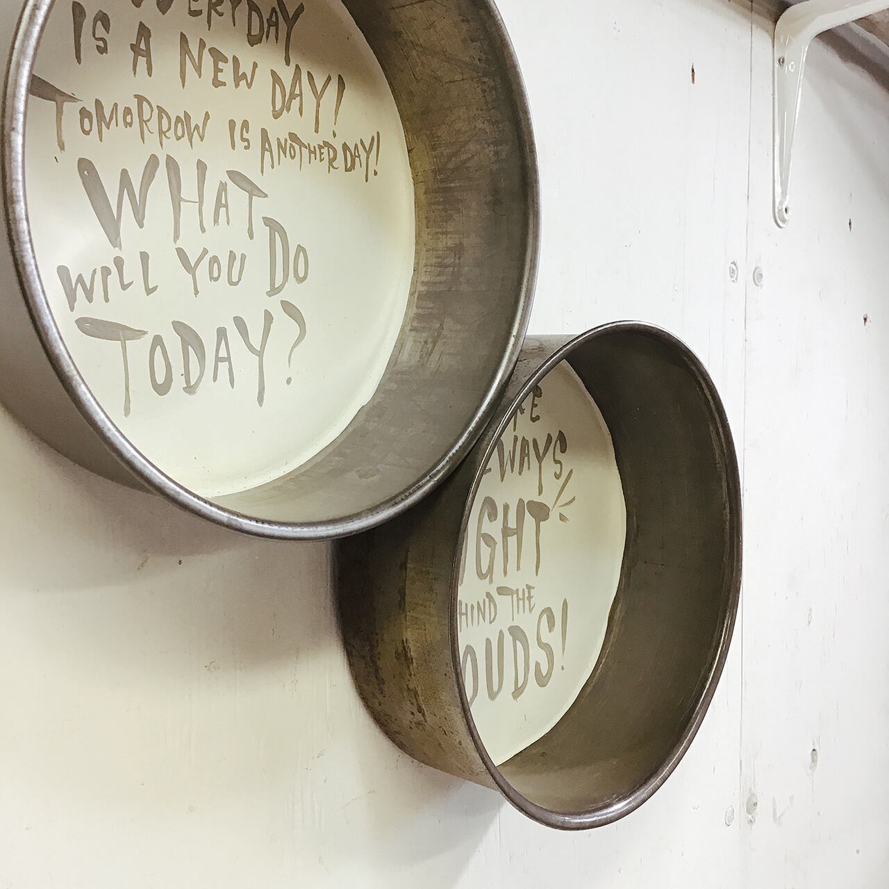 ケーキの型に文字を入れたカッコ可愛いガーデンサインです♪