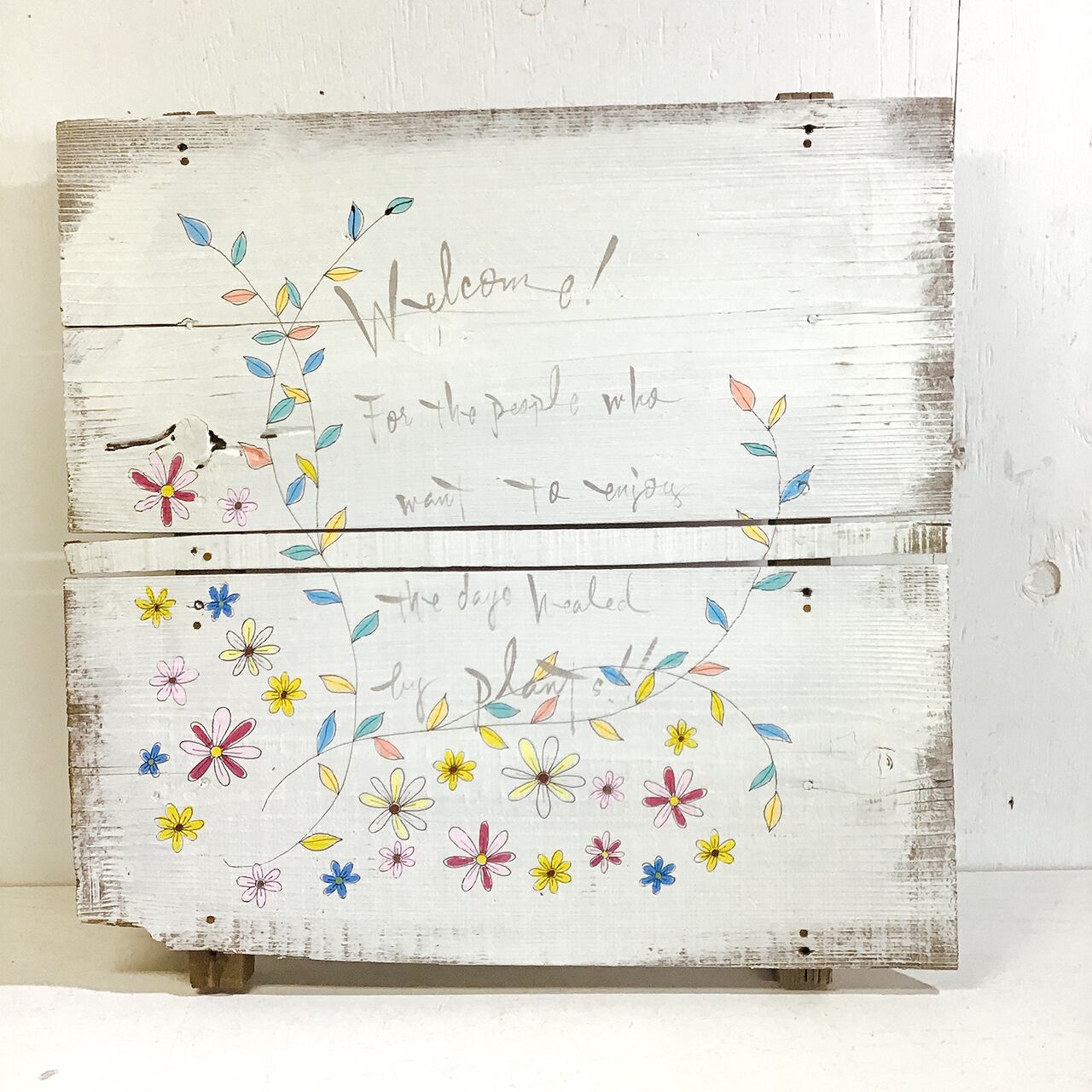 木製の台(作陶台)にペイントしたイラストパネルです♪