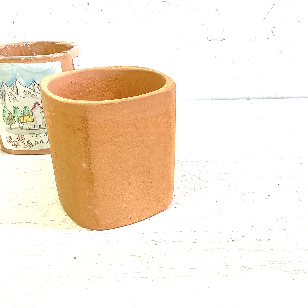 デッドストックの四角鉢に水彩風の風景を♪