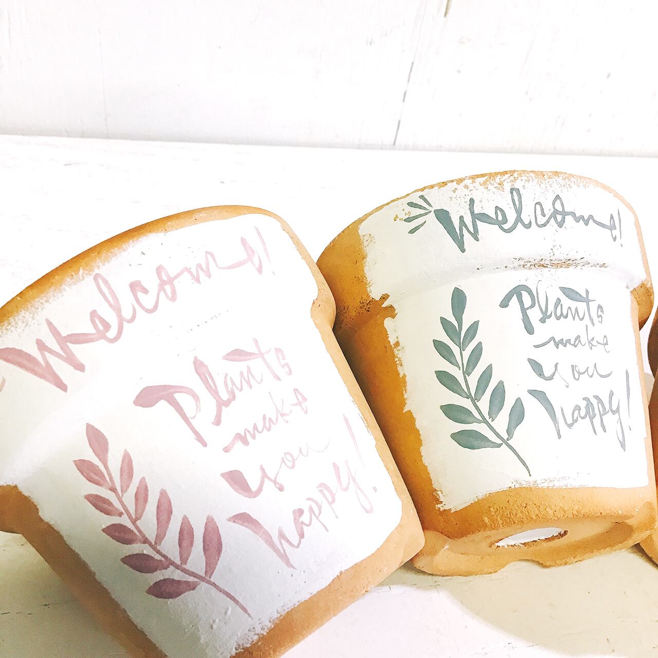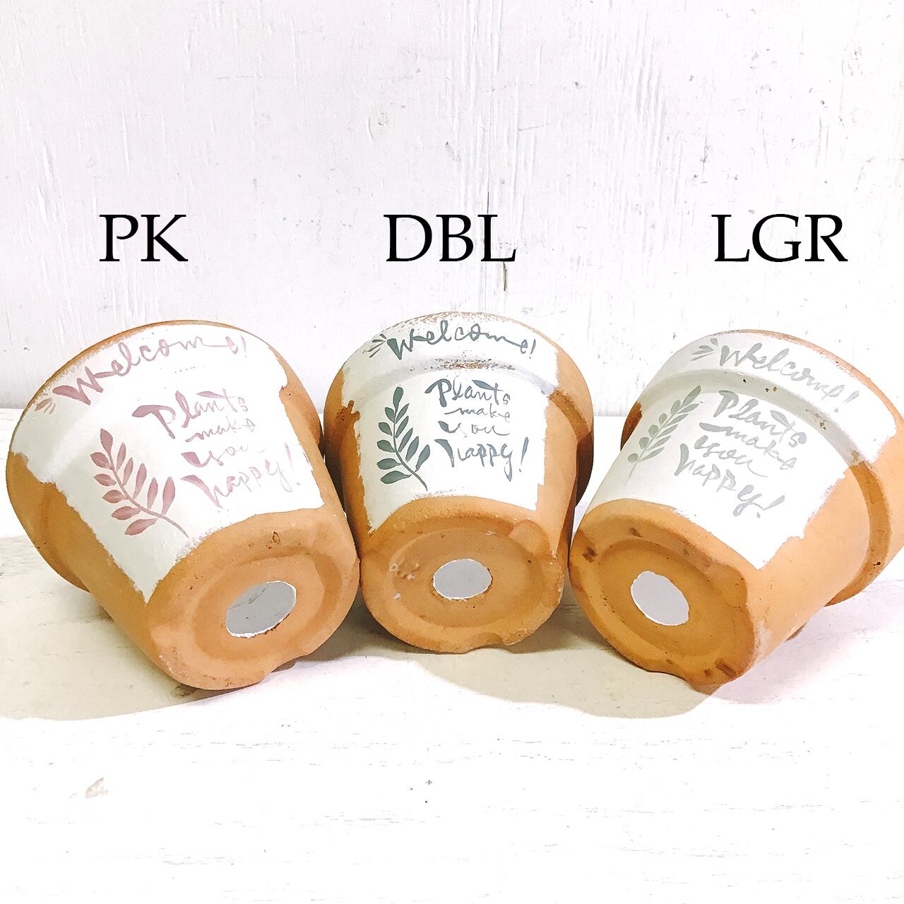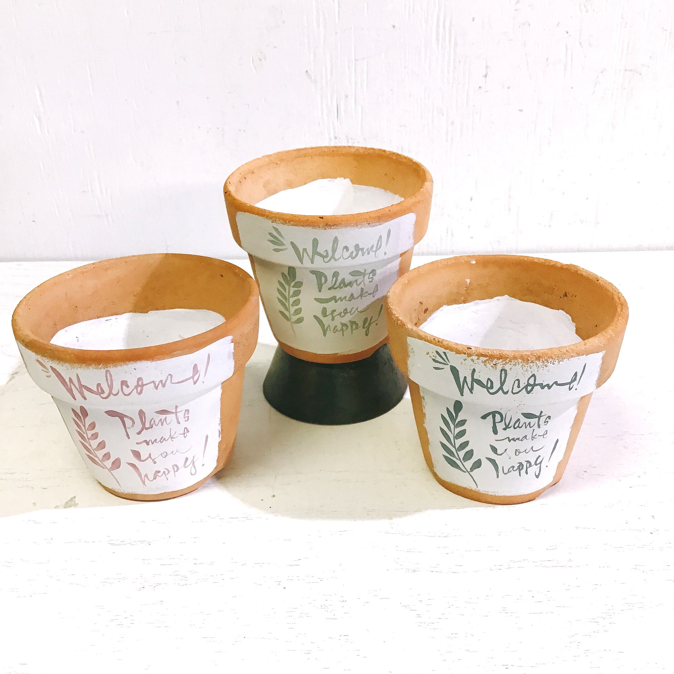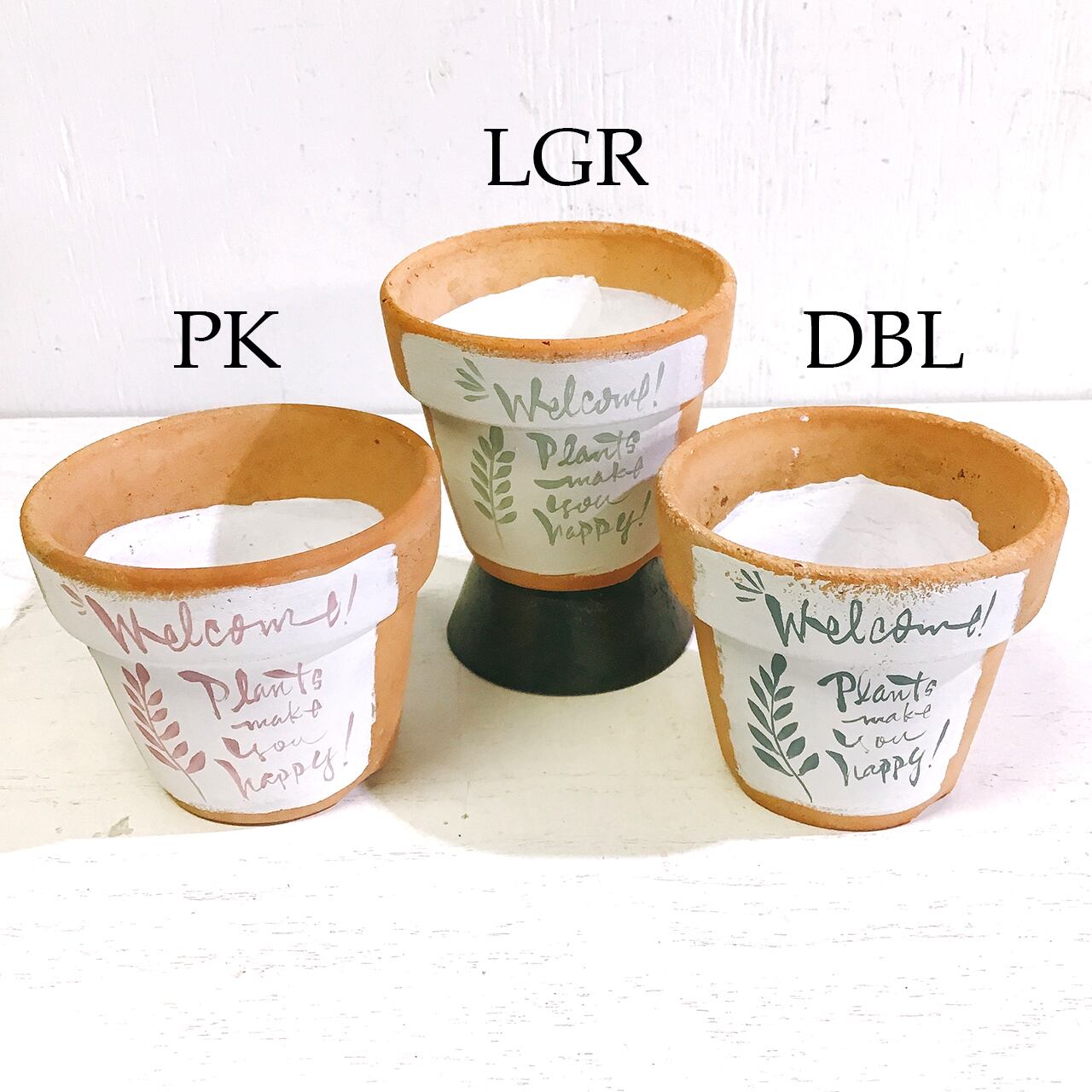 【リメイク鉢】USED2.5号丸鉢 アースカラーのリーフと文字