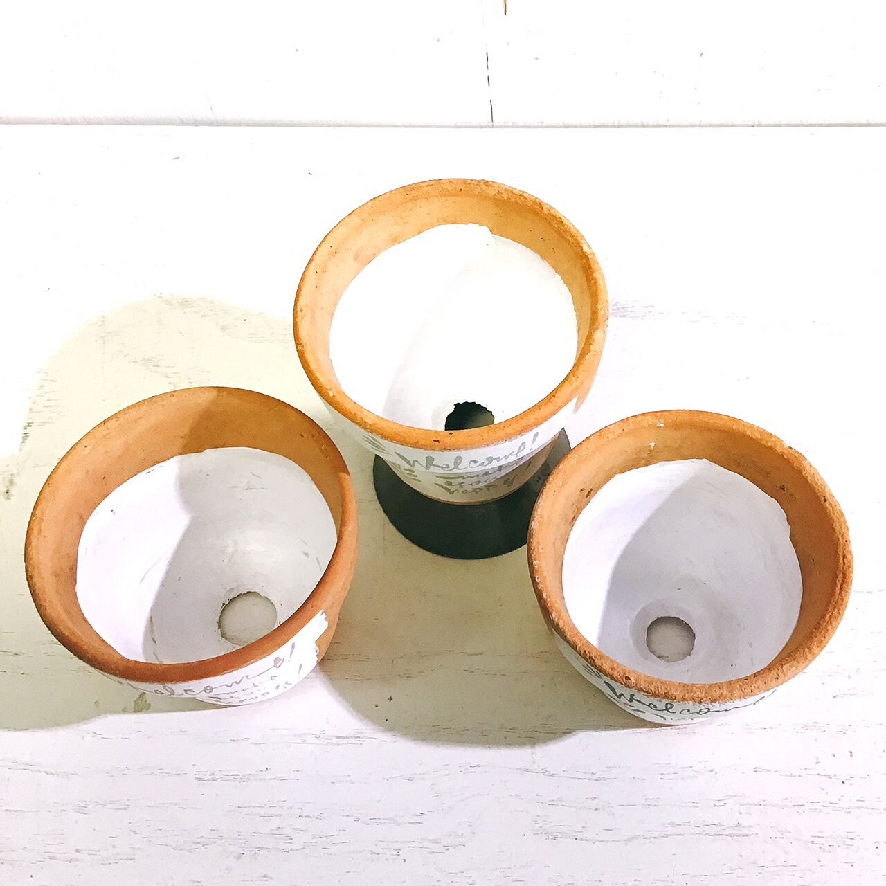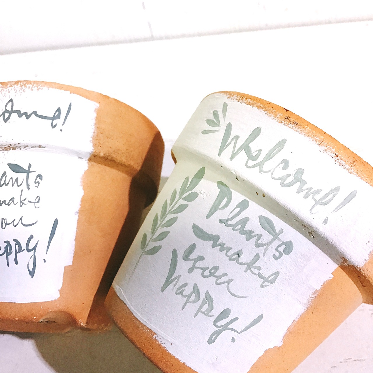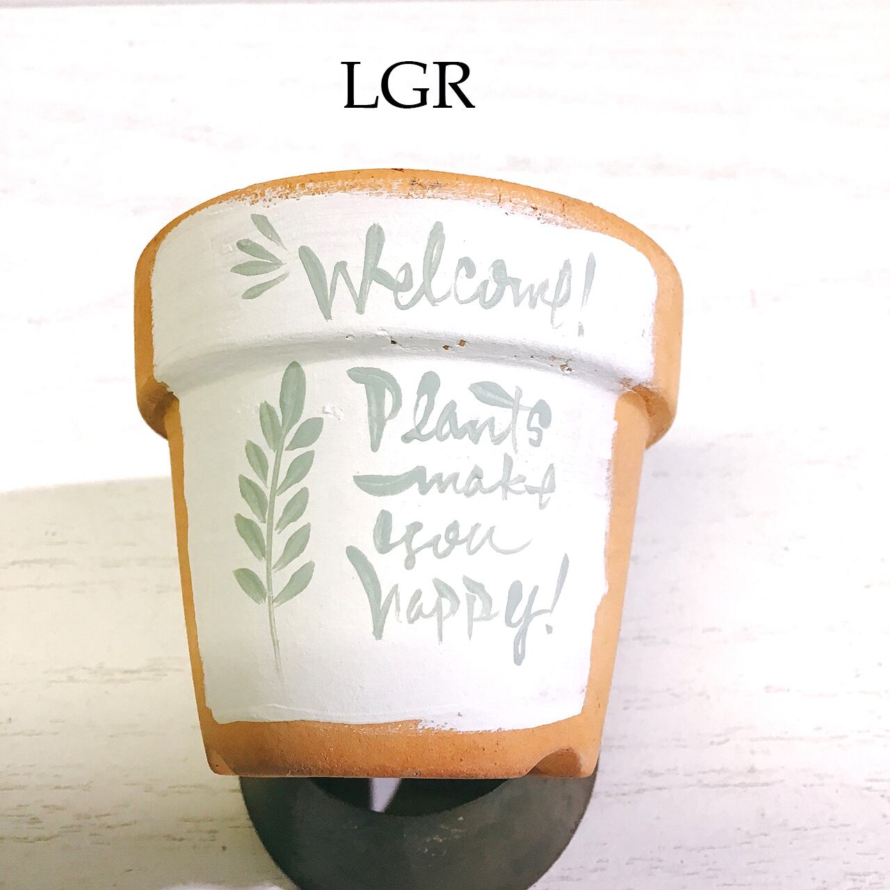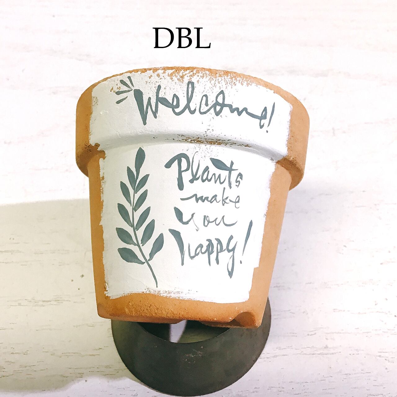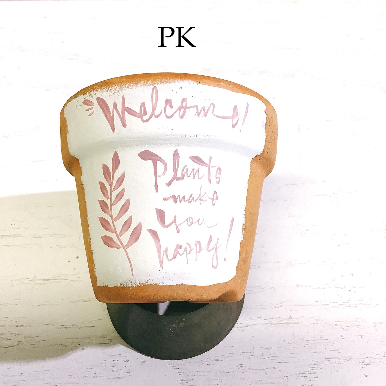 【リメイク鉢】USED2.5号丸鉢 アースカラーのリーフと文字