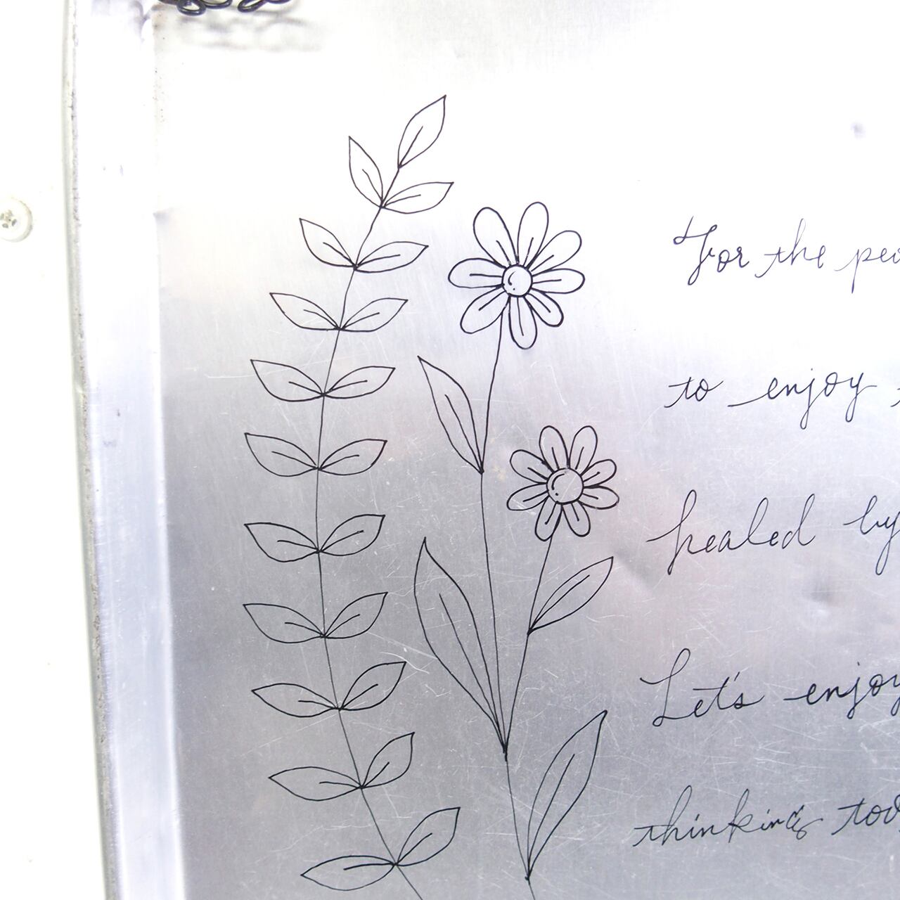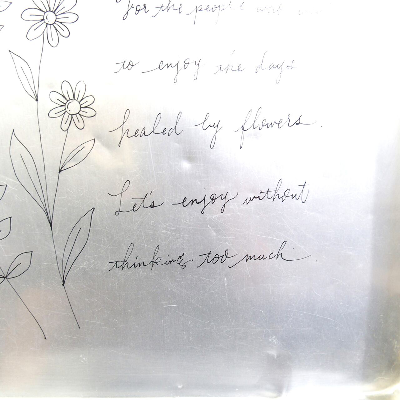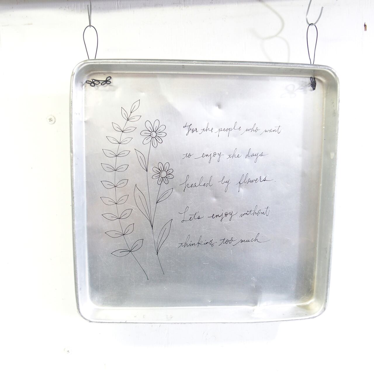 アルミのトレーにイラストと文字を入れたアレンジ作品です♪
